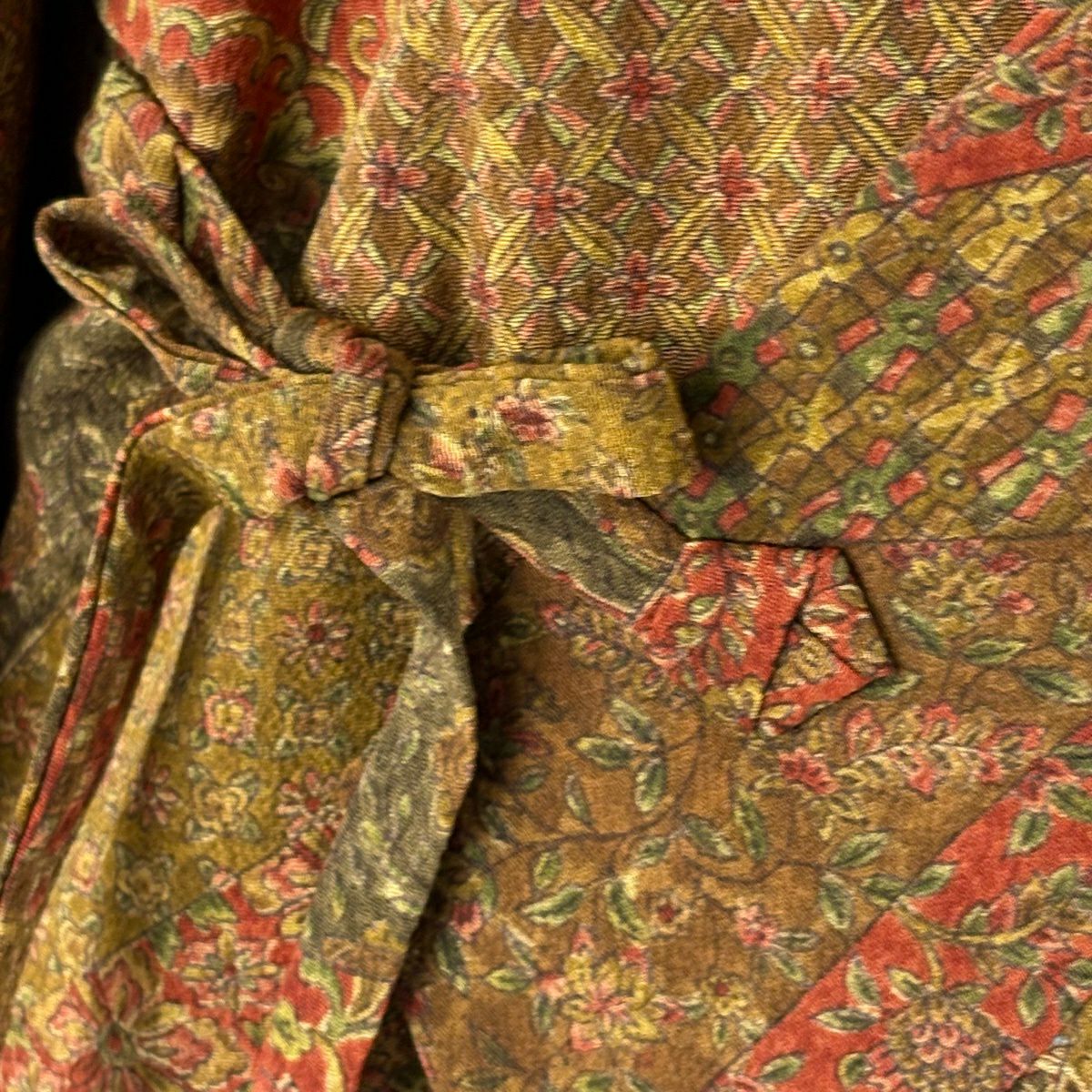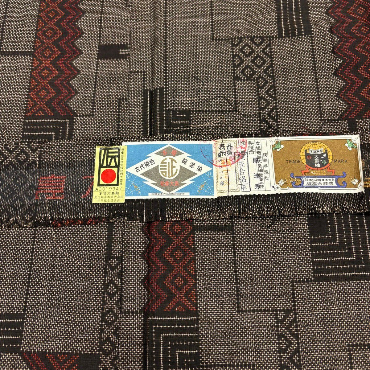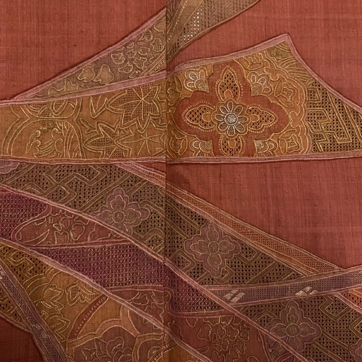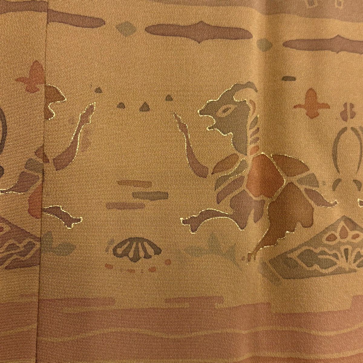 【在庫一掃】 【美品】 道中着 身丈87.5cm 裄丈65.5cm M 和装コート 幾何学 陶彩染 薄小豆 正絹 秀品