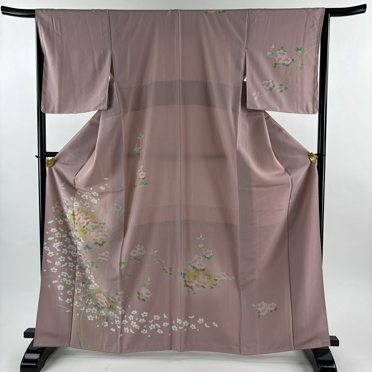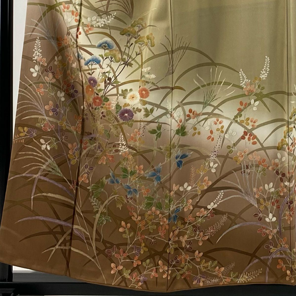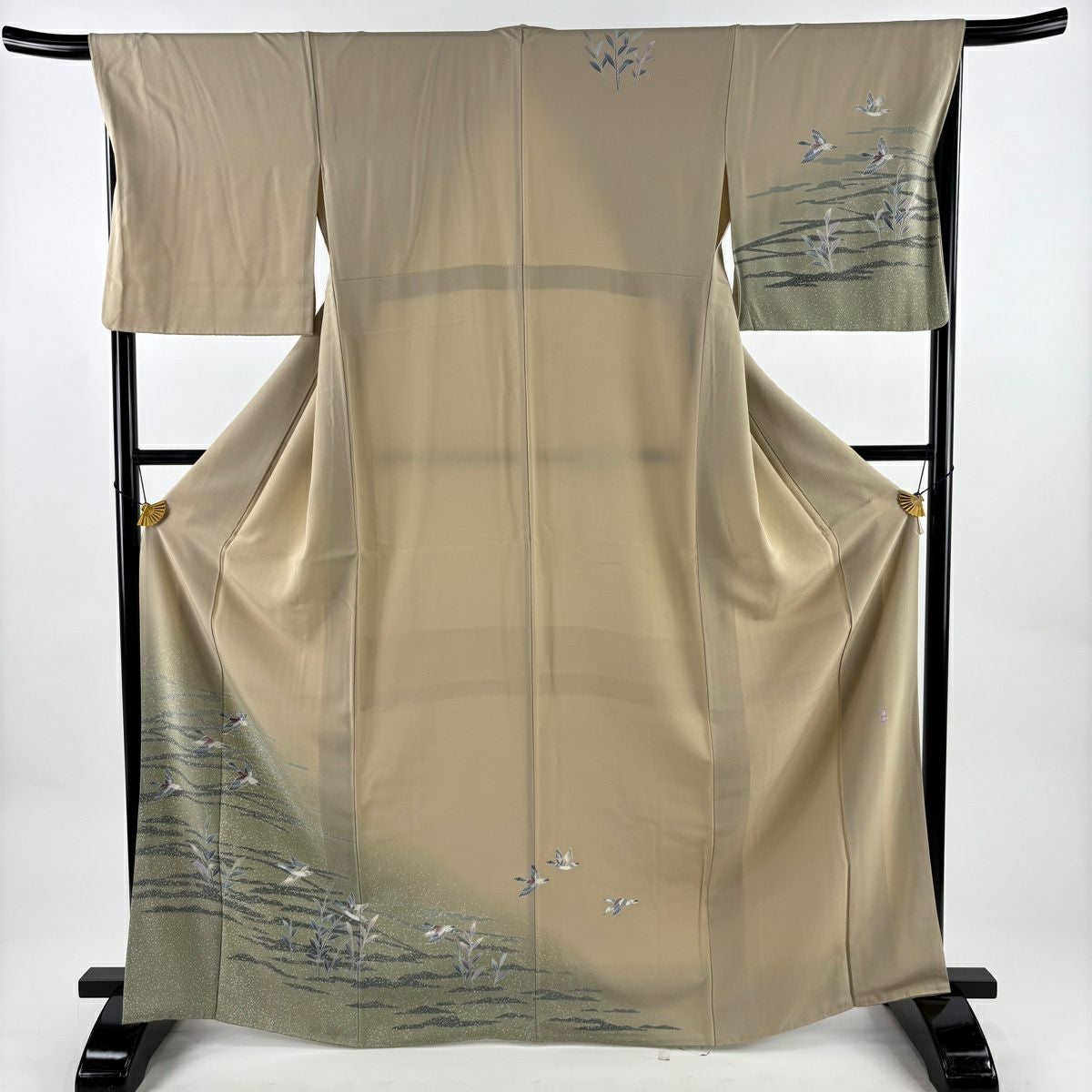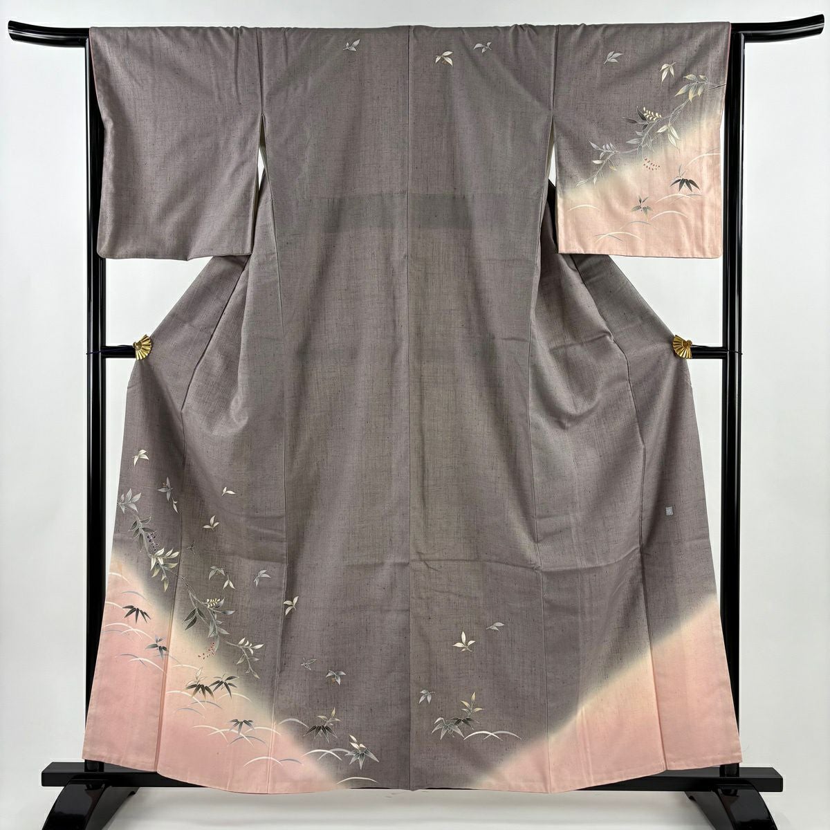 【在庫一掃】 訪問着 身丈156cm 裄丈64cm M 袷 落款あり 秋草文 薄 ぼかし 金彩 薄茶色 正絹 秀品