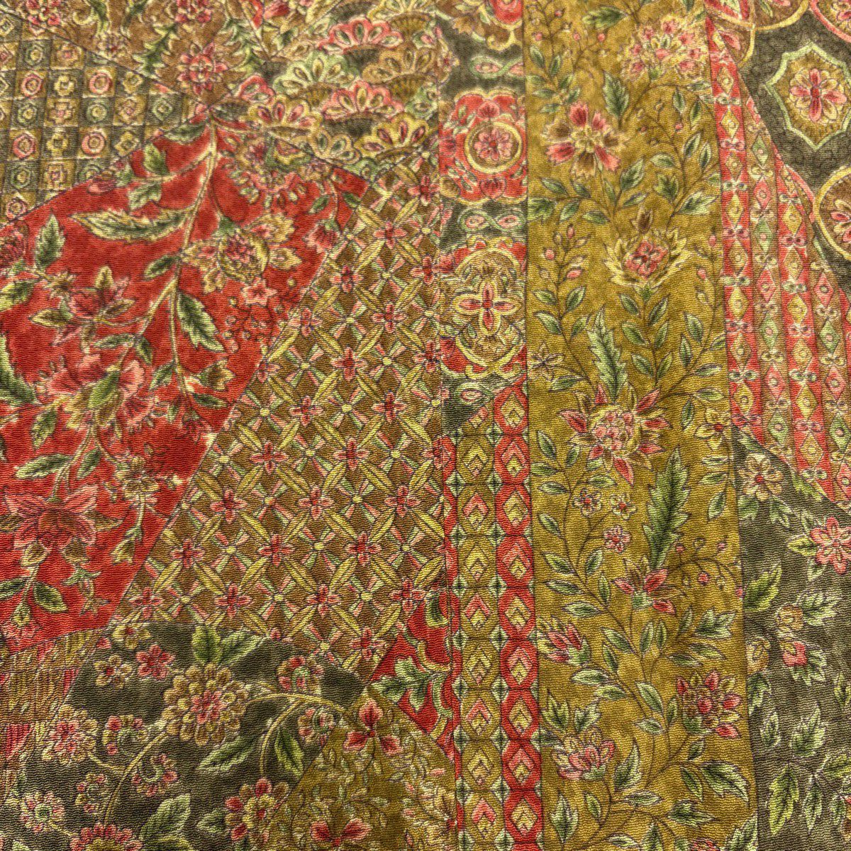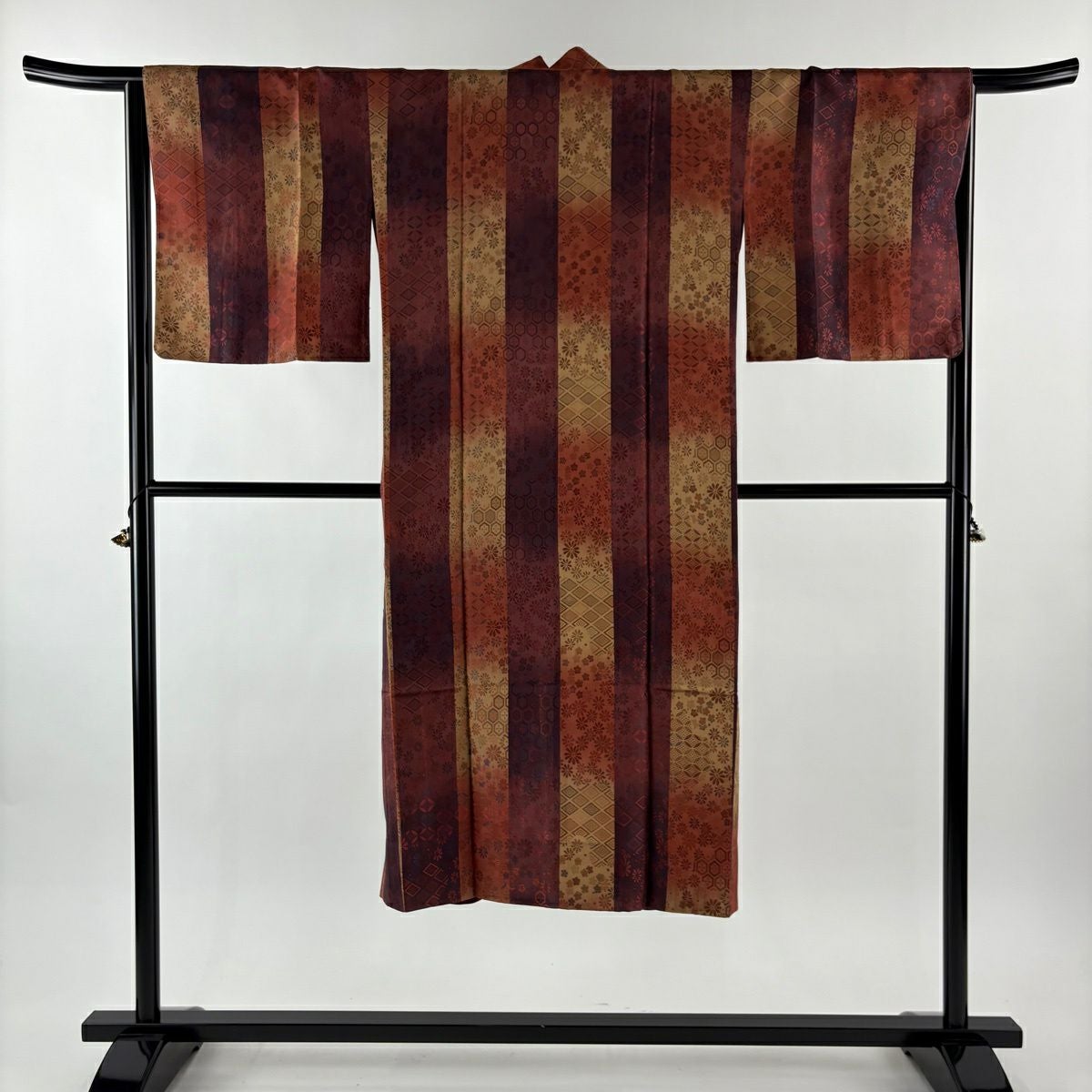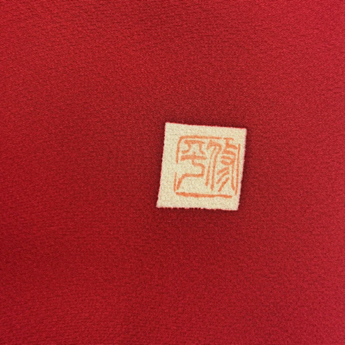 【在庫一掃】 【美品】 小紋 身丈159cm 裄丈65.5cm M 袷 紬地 幾何学模様 ぼかし 茜色 正絹 秀品