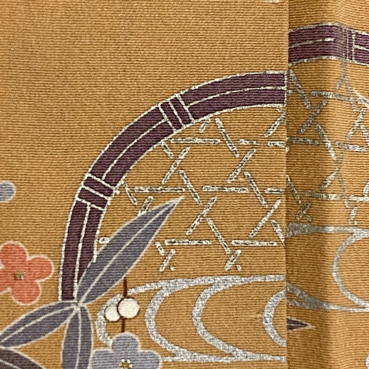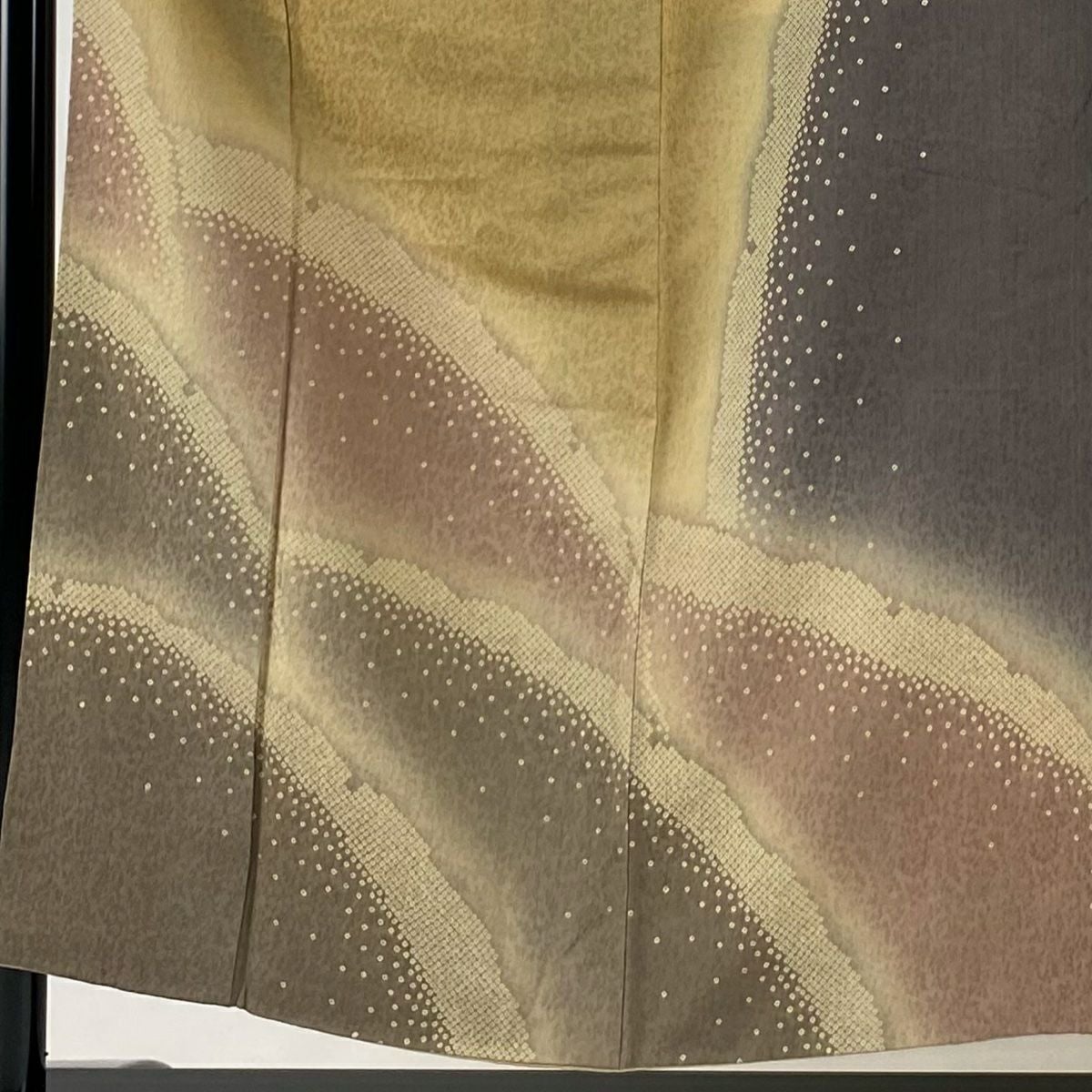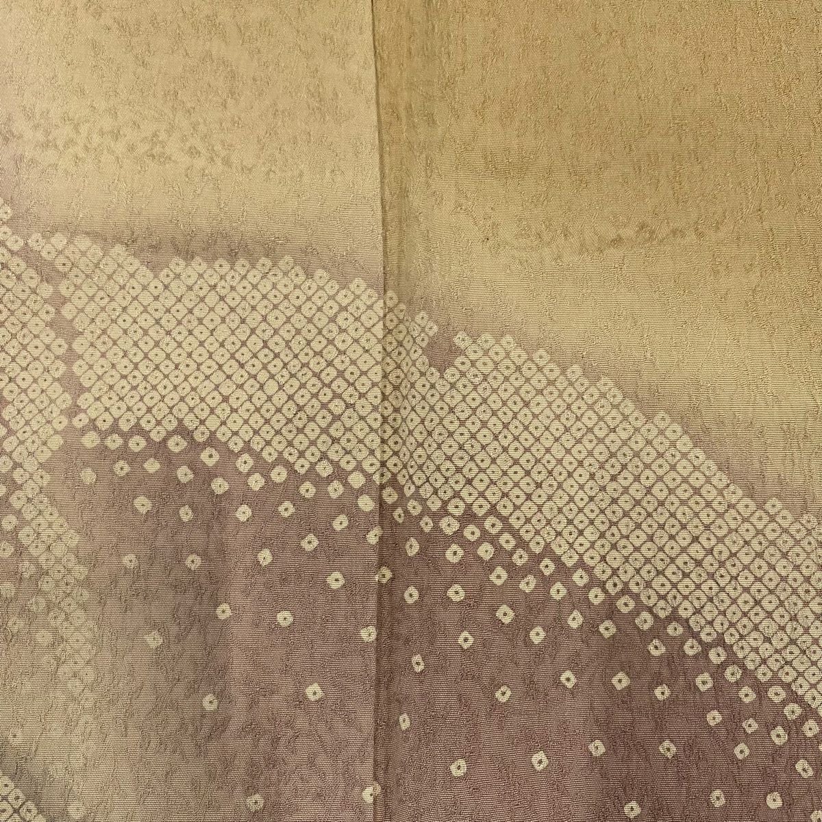 【在庫一掃】 訪問着 身丈156cm 裄丈63cm S 袷 落款あり 鼓 波 金彩 ぼかし からし色 正絹 秀品