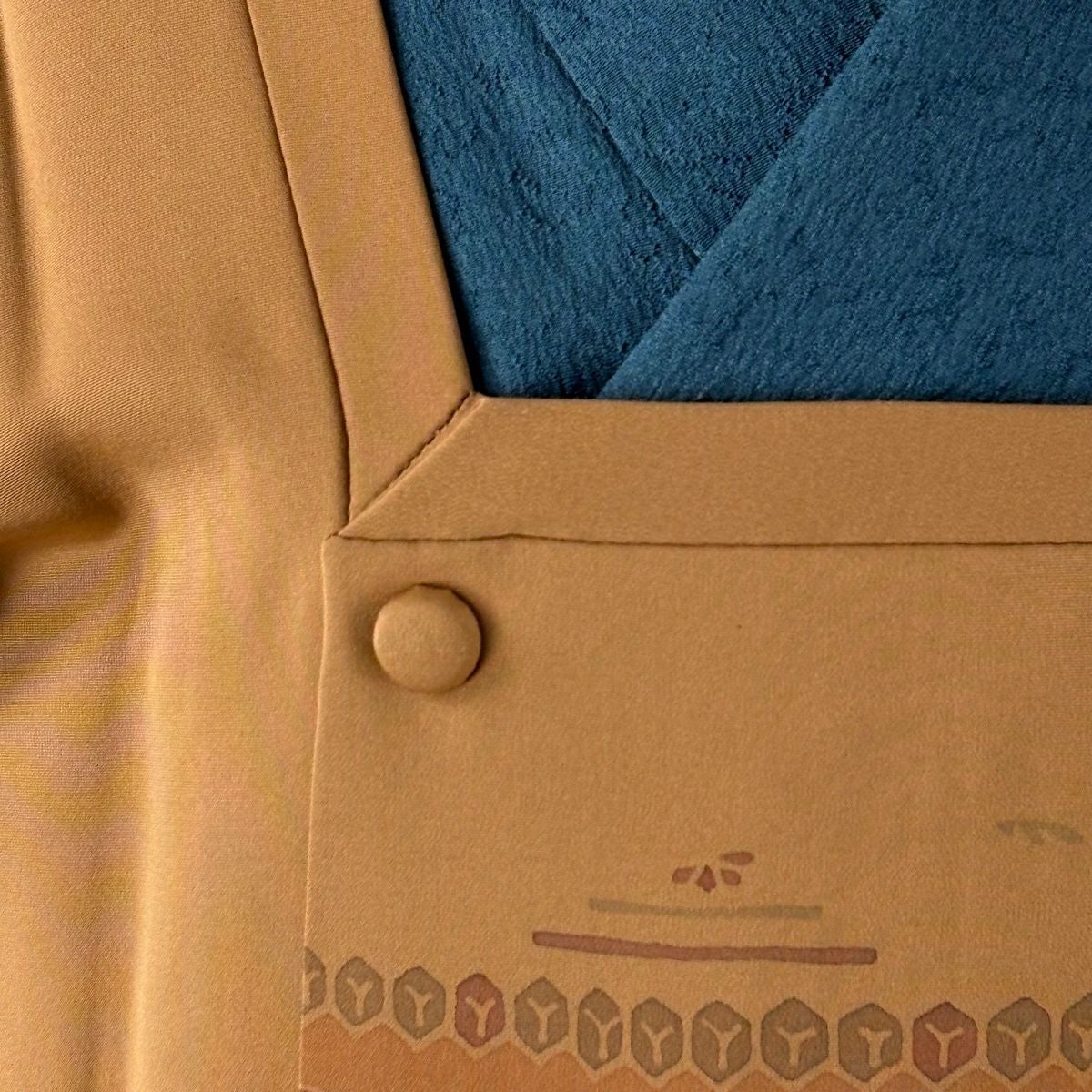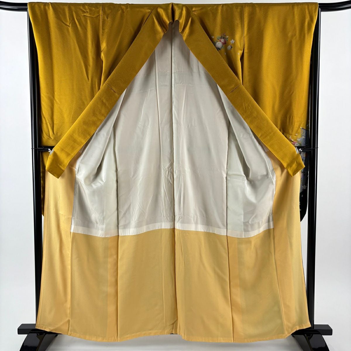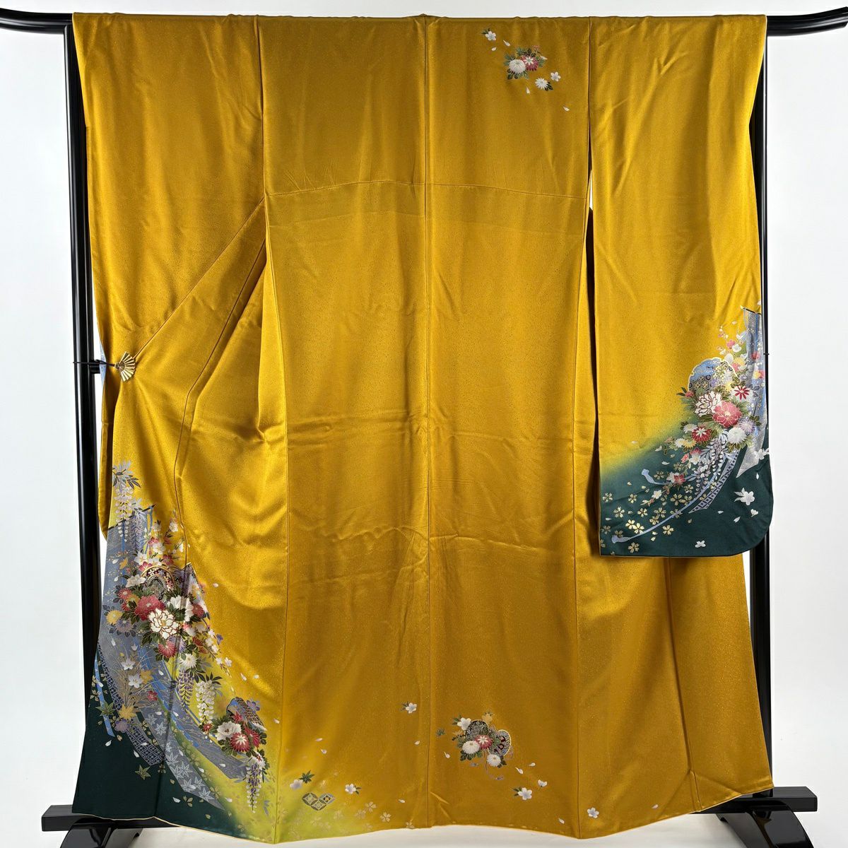【在庫一掃】 訪問着 身丈156cm 裄丈63cm S 袷 落款あり 鼓 波 金彩 ぼかし からし色 正絹 秀品
