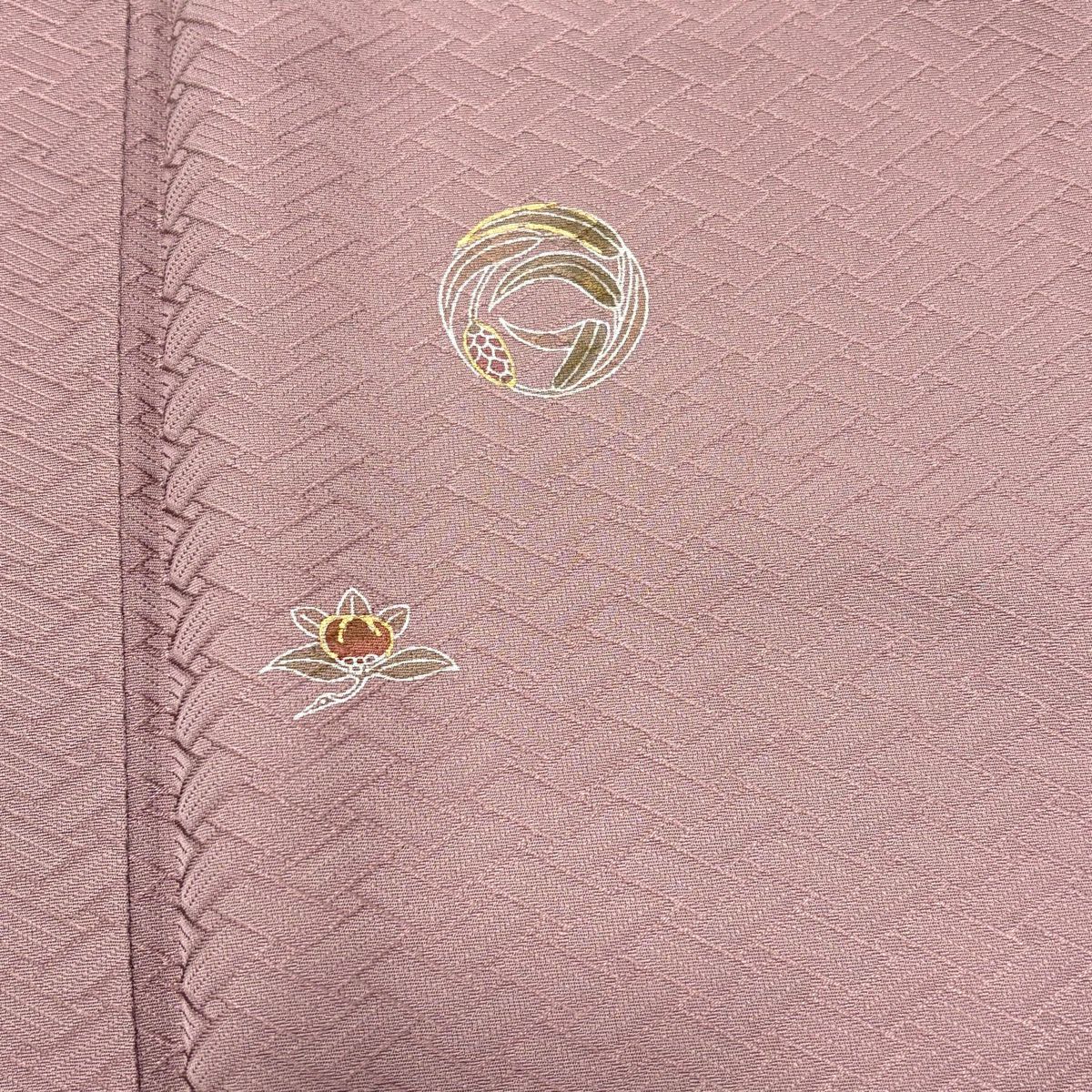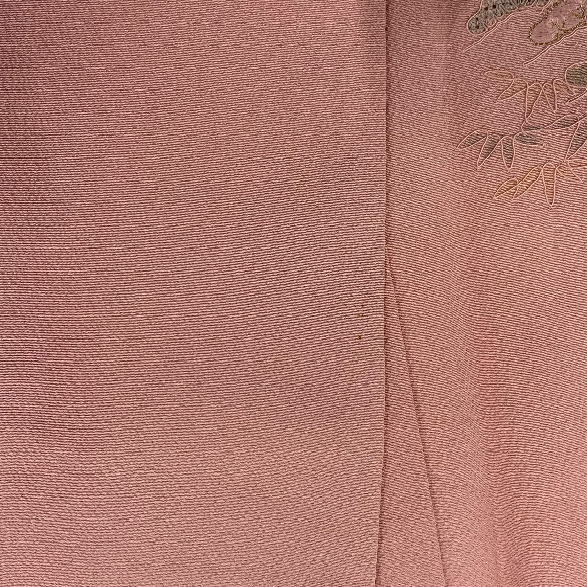 【在庫一掃】 訪問着 身丈161cm 裄丈65.5cm M 袷 紬地 椿 鳥 金彩 ぼかし ピンク 正絹 秀品