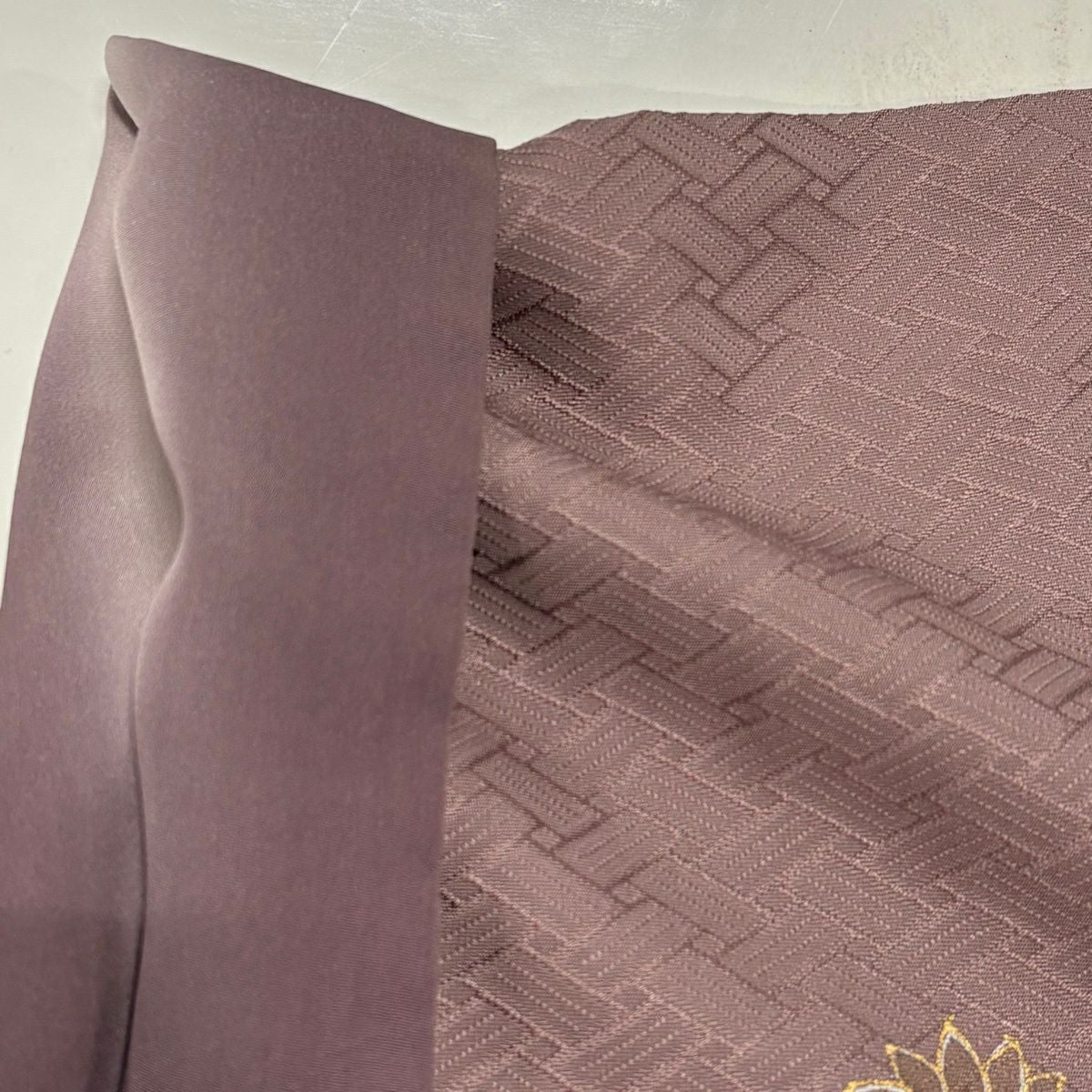【在庫一掃】 色留袖 身丈161.5cm 裄丈66cm M 袷 万寿菊 地紋 金糸 金彩 灰紫 正絹 秀品 一つ紋