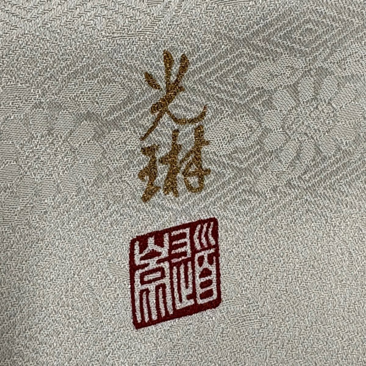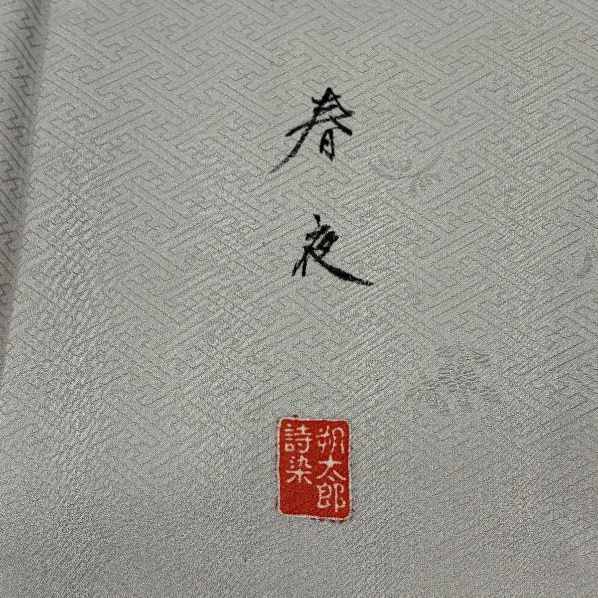 【美品】 付下げ 身丈159cm 裄丈62cm S 薄物 川村久太郎 落款あり 格子 幾何学 クリーム 正絹 秀品
