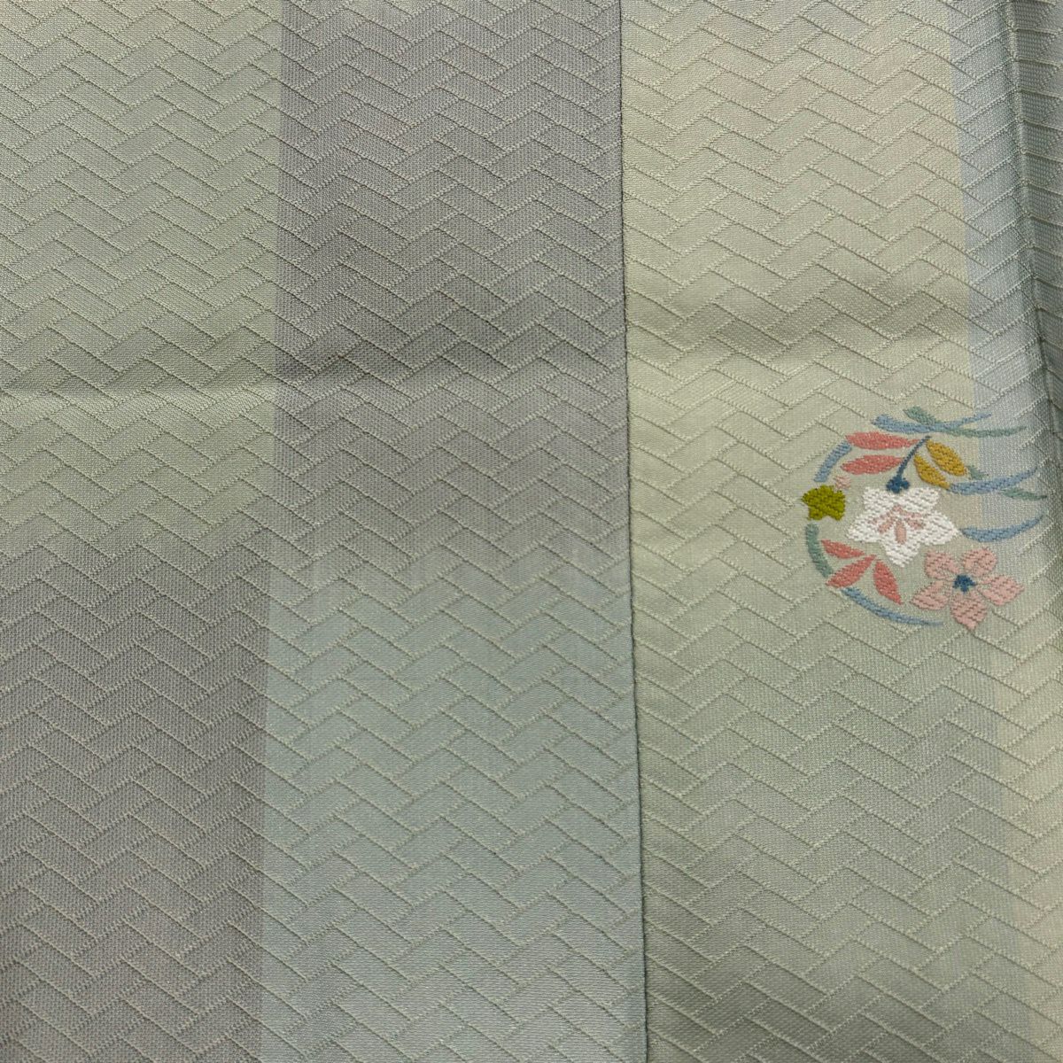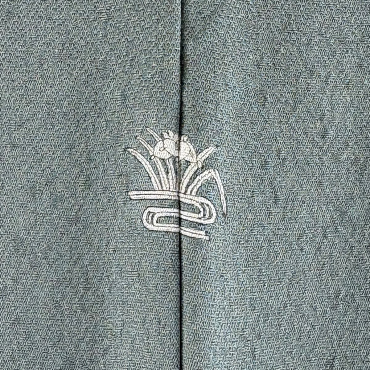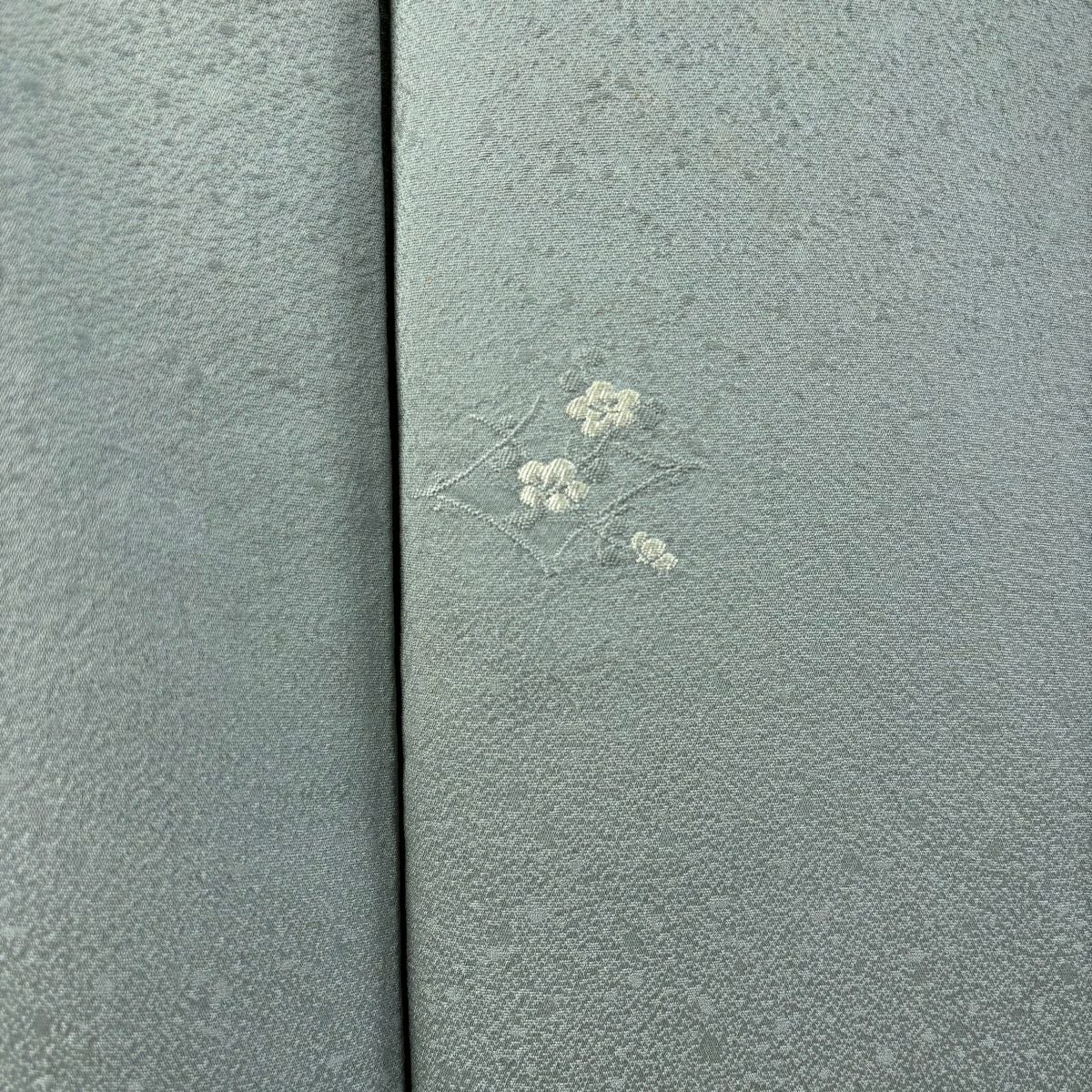 【在庫一掃】 付下げ 身丈154.5cm 裄丈62cm S 袷 草花 波 刺繍 金銀彩 灰緑 正絹 秀品 一つ紋