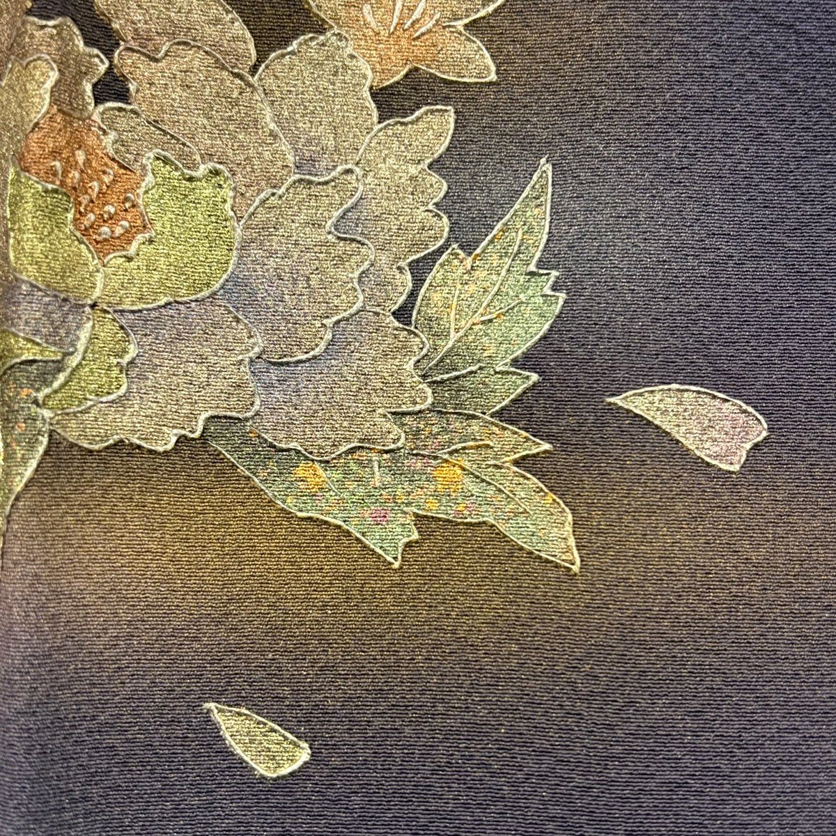 【美品】 訪問着 身丈160cm 裄丈66.5cm M 袷 袋帯セット 草花 花唐草 刺繍 金糸 墨色 正絹 秀品