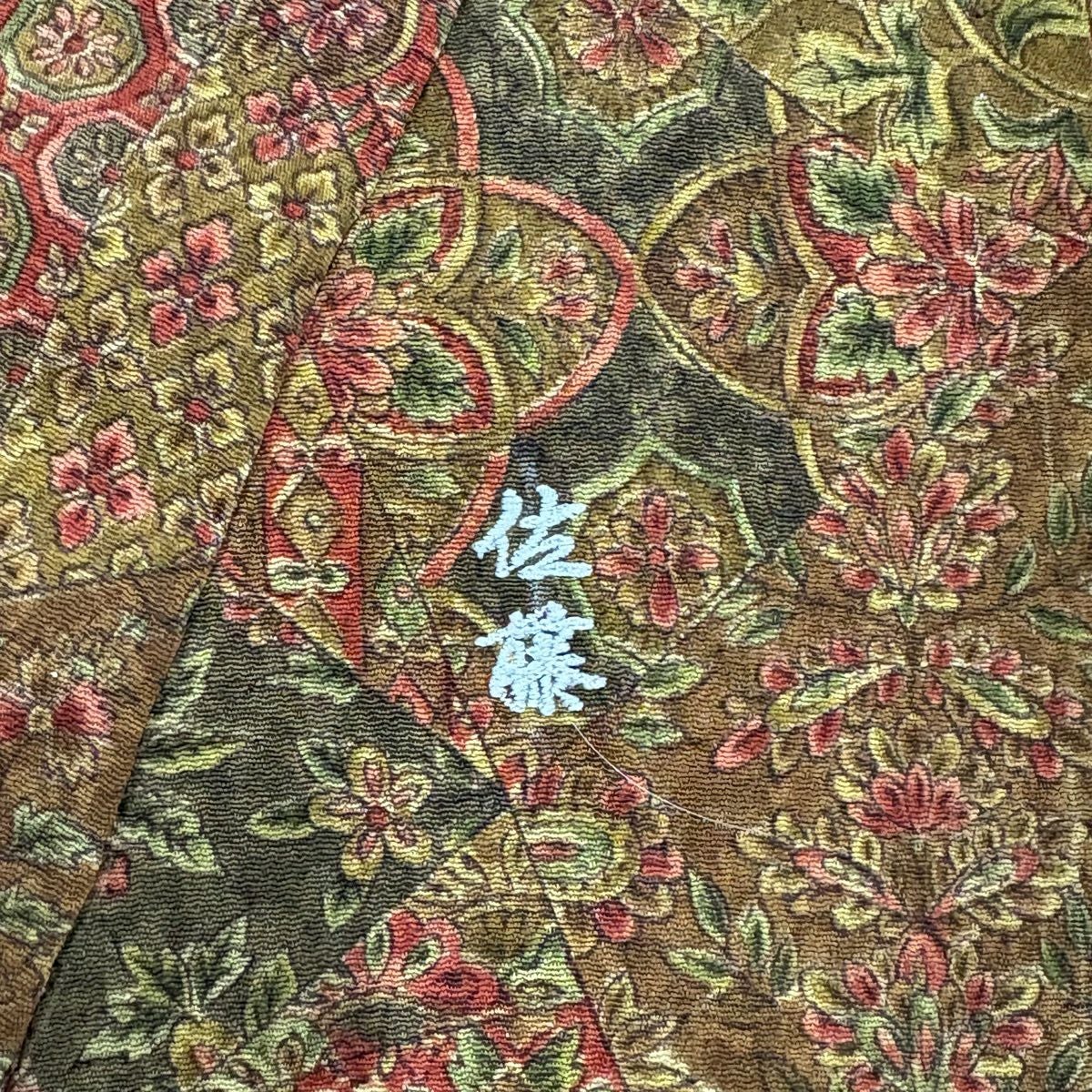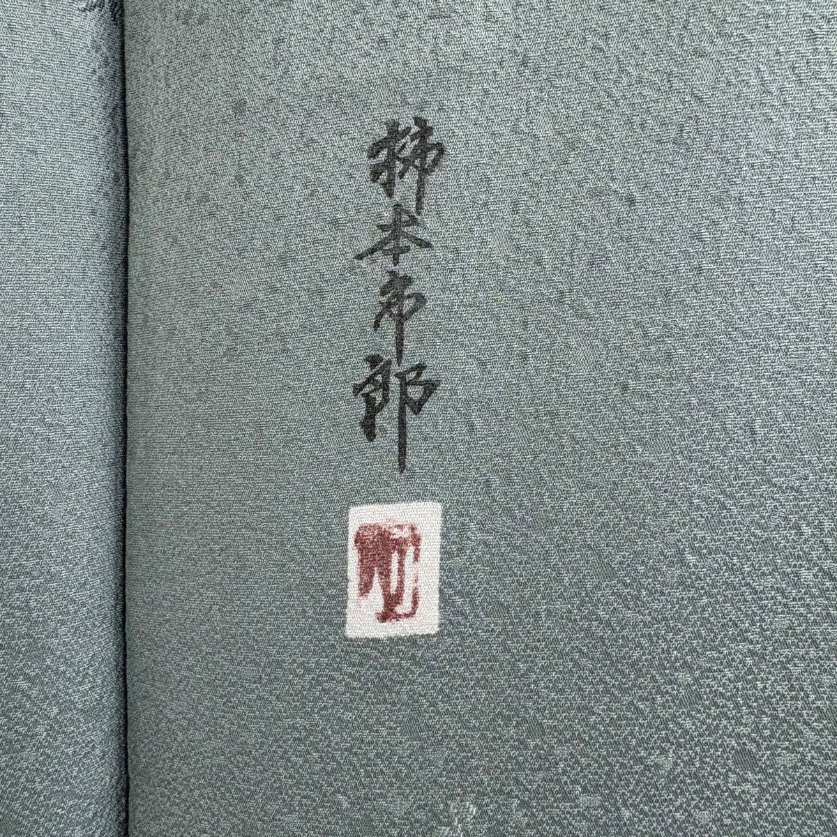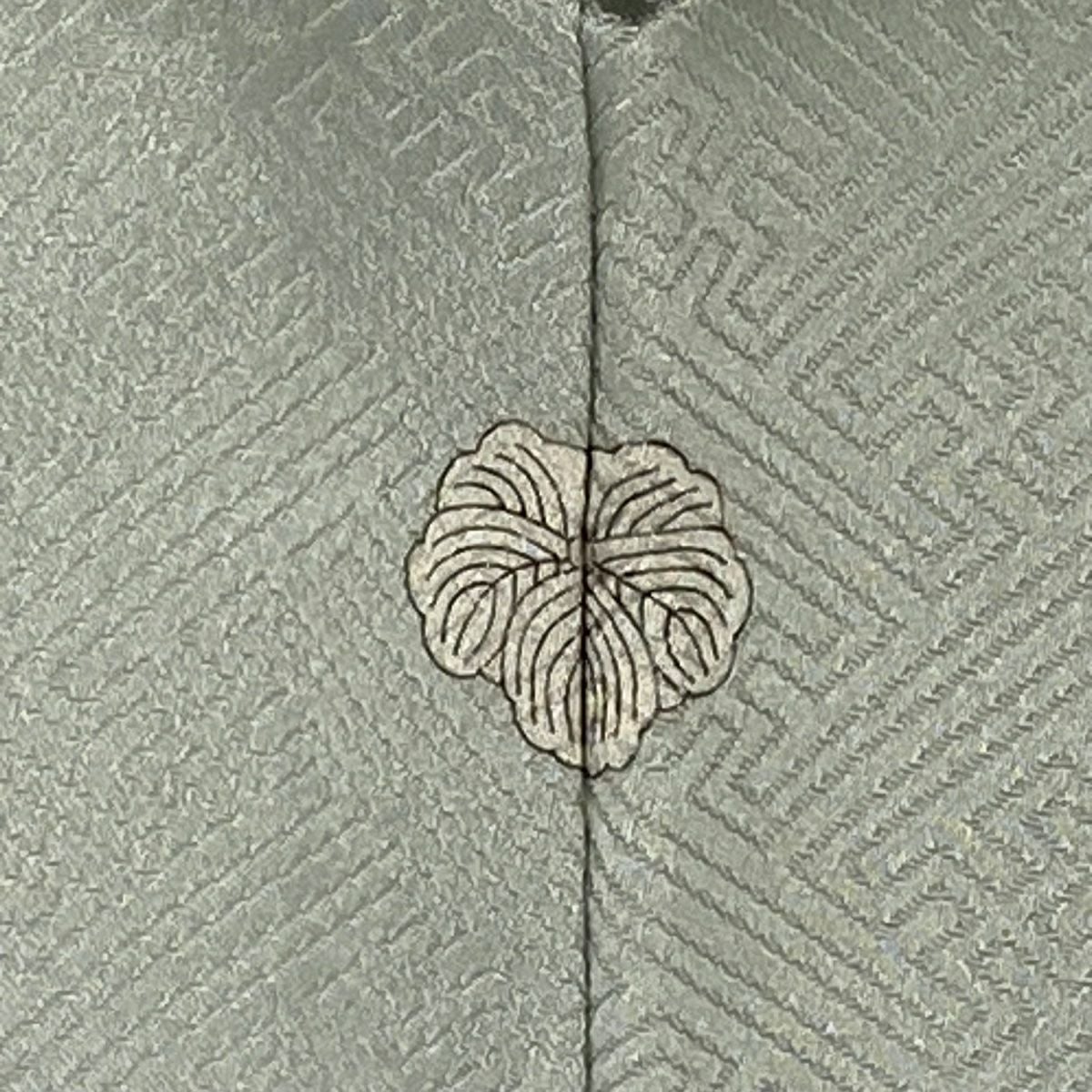 【在庫一掃】 小紋 身丈156cm 裄丈62cm S 袷 柿本市郎 落款あり 草花 枝梅 緑 正絹 秀品 一つ紋