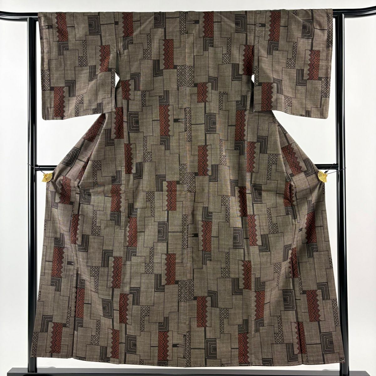【在庫一掃】 【美品】 小紋 身丈155cm 裄丈62.5cm S 袷 幾何学模様 ぼかし 灰茶 正絹 秀品 一つ紋