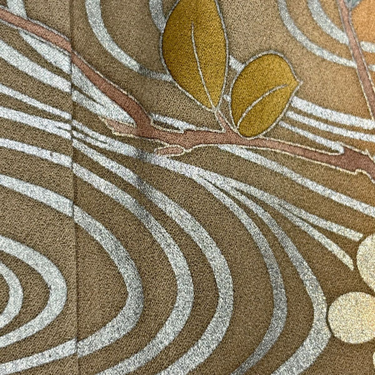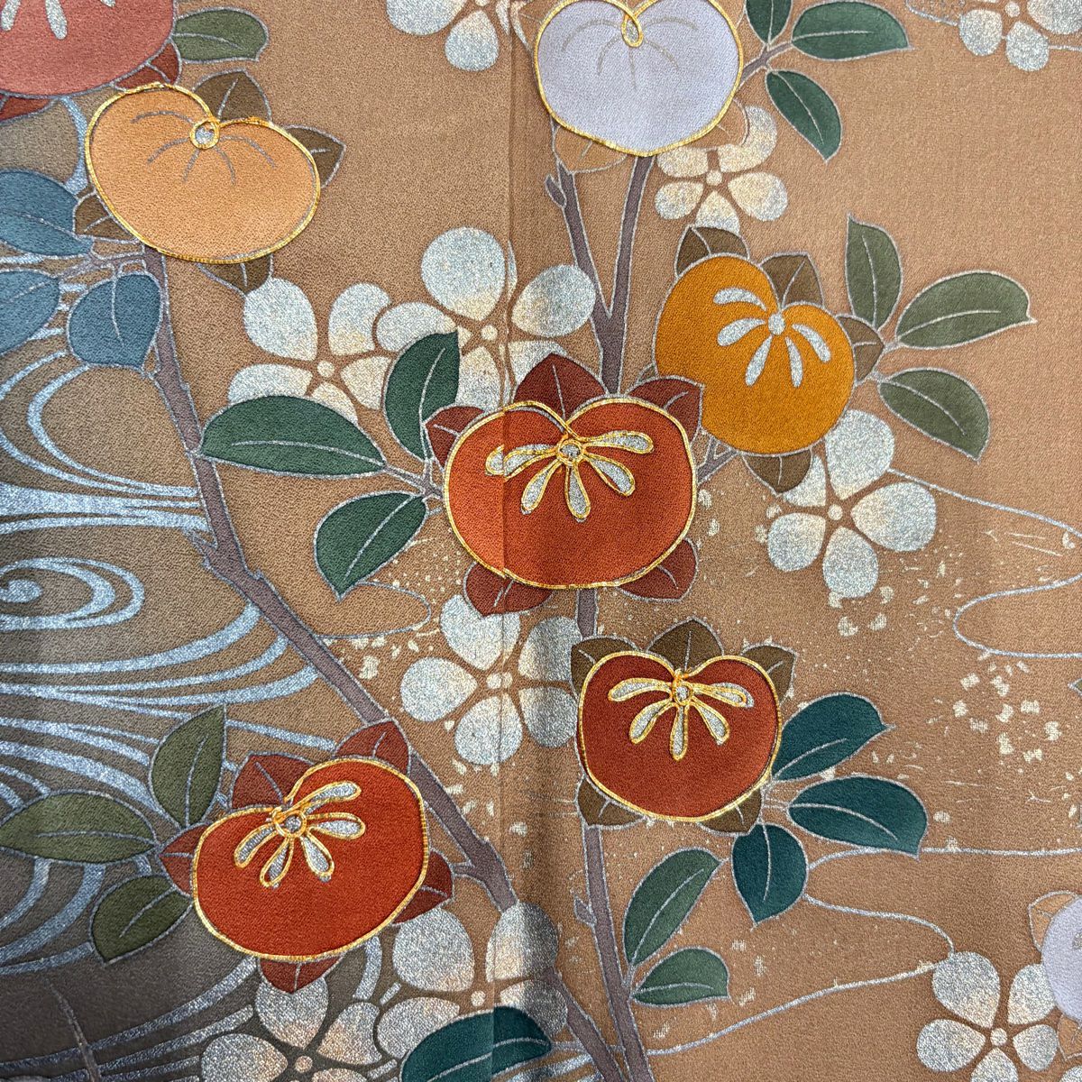 【在庫一掃】 訪問着 身丈159cm 裄丈66cm M 袷 落款あり 橘花 観世水 金糸 金銀彩 茶色 正絹 秀品