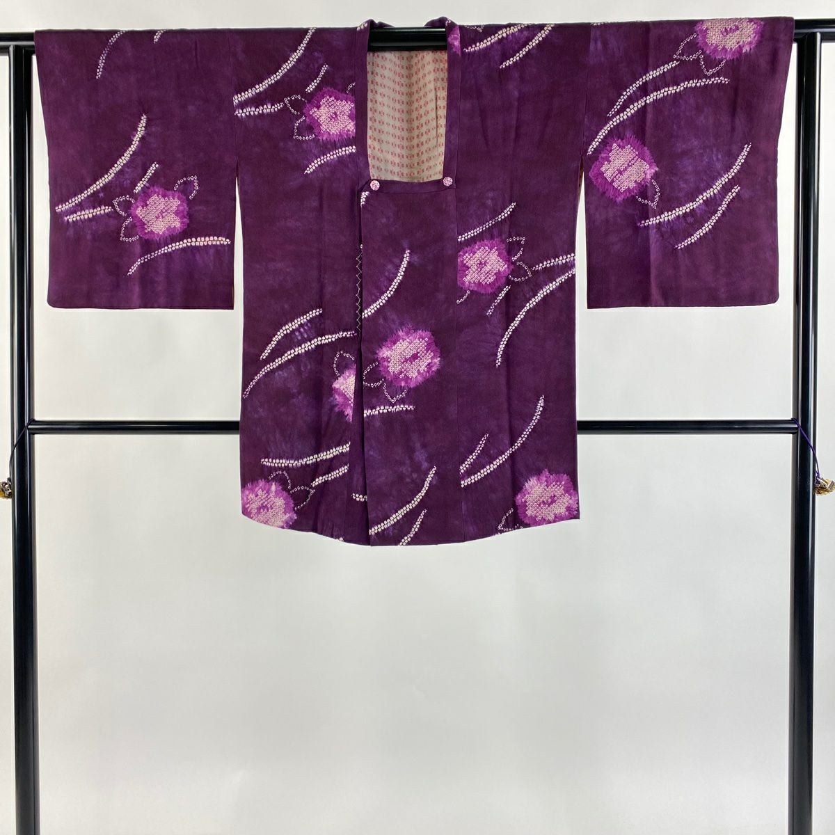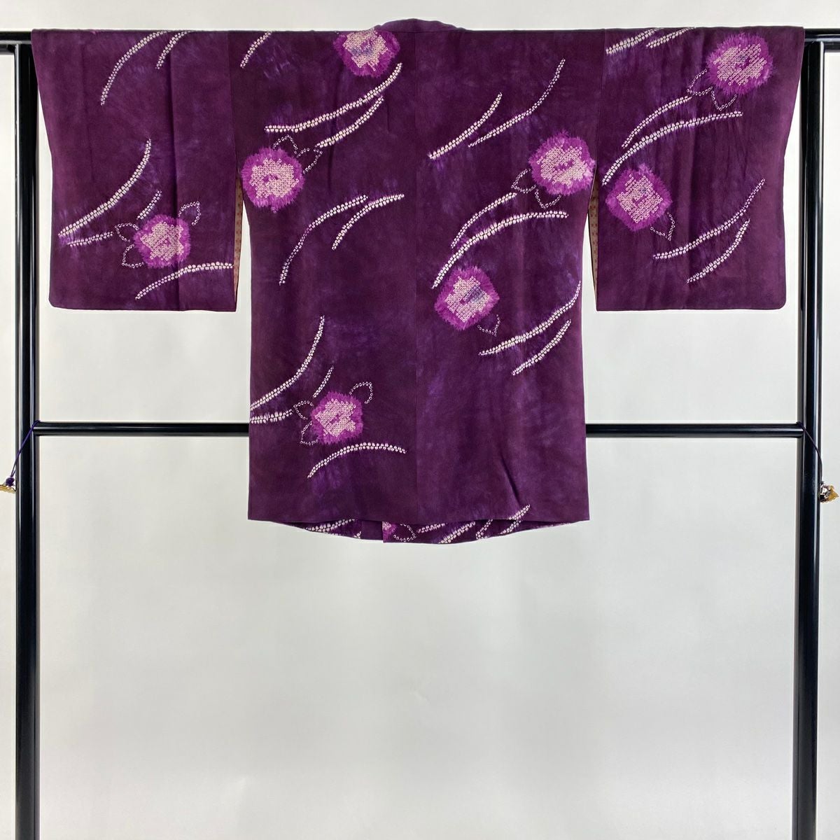 【在庫一掃】 【美品】 道行 身丈82cm 裄丈62.5cm S 和装コート 角衿 草花 芝 絞り 紫 正絹 秀品