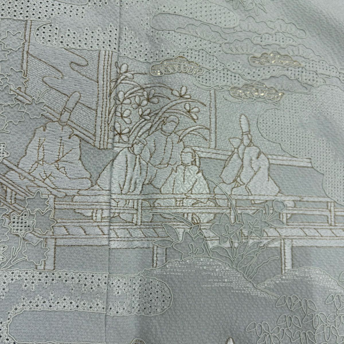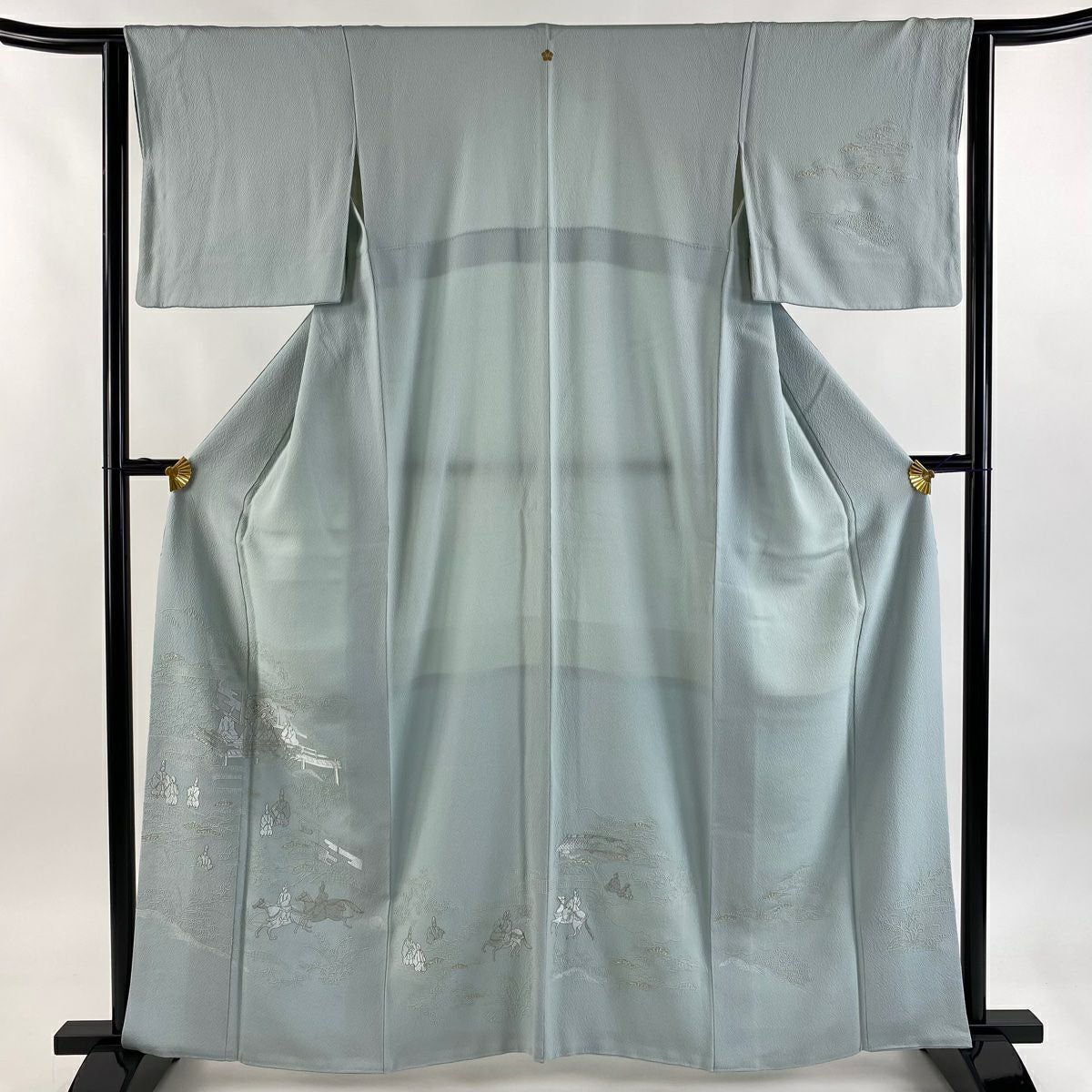 【在庫一掃】 付下げ 身丈162.5cm 裄丈63.5cm S 袷 人物 ヱ霞 刺繍 金糸 水色 正絹 秀品 一つ紋