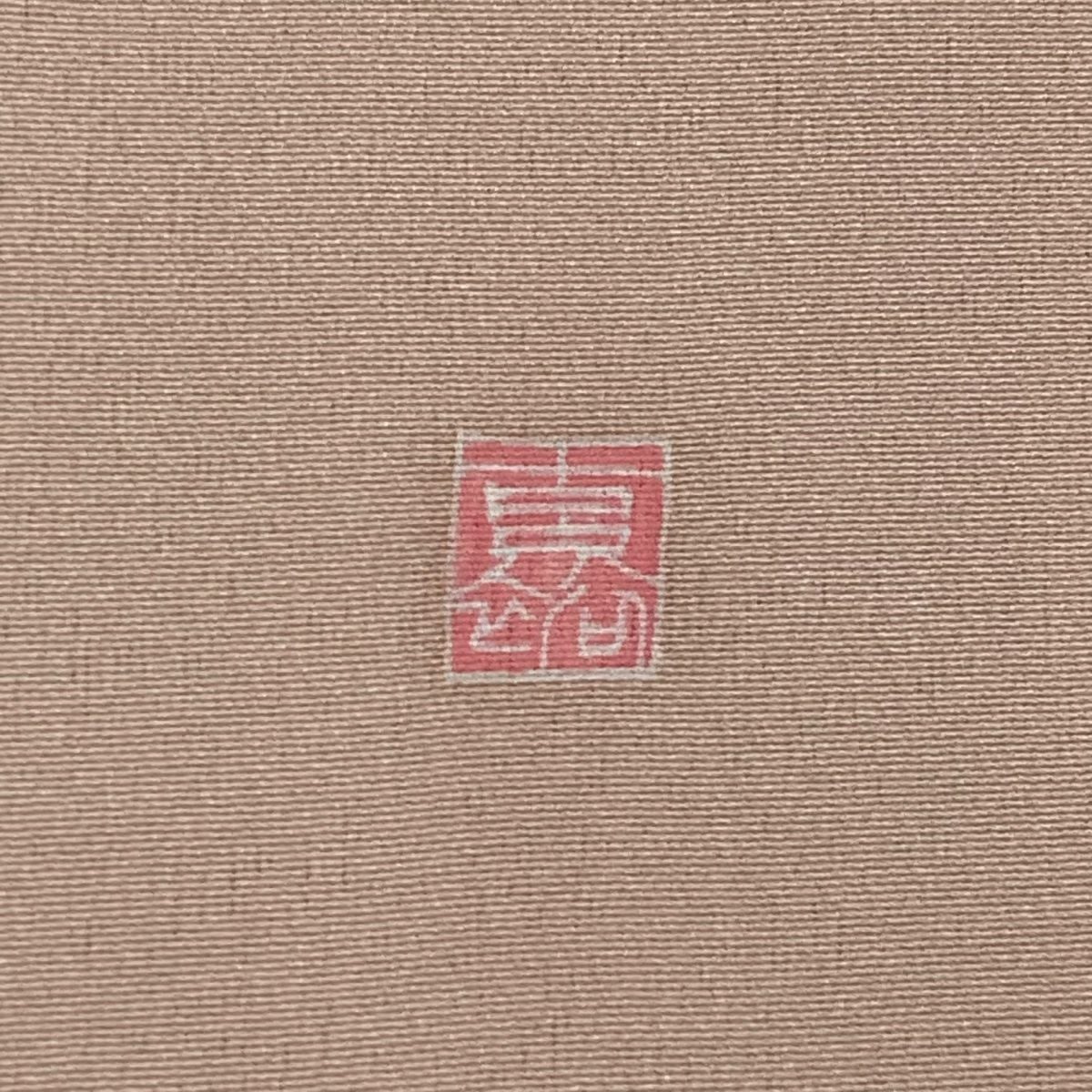 【在庫一掃】 付下げ 身丈159cm 裄丈63.5cm S 袷 紬地 落款あり 文字文 茶色 正絹 秀品 一つ紋