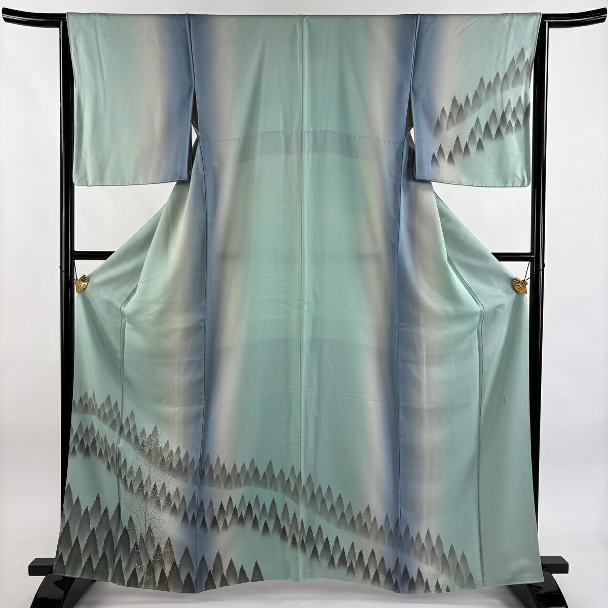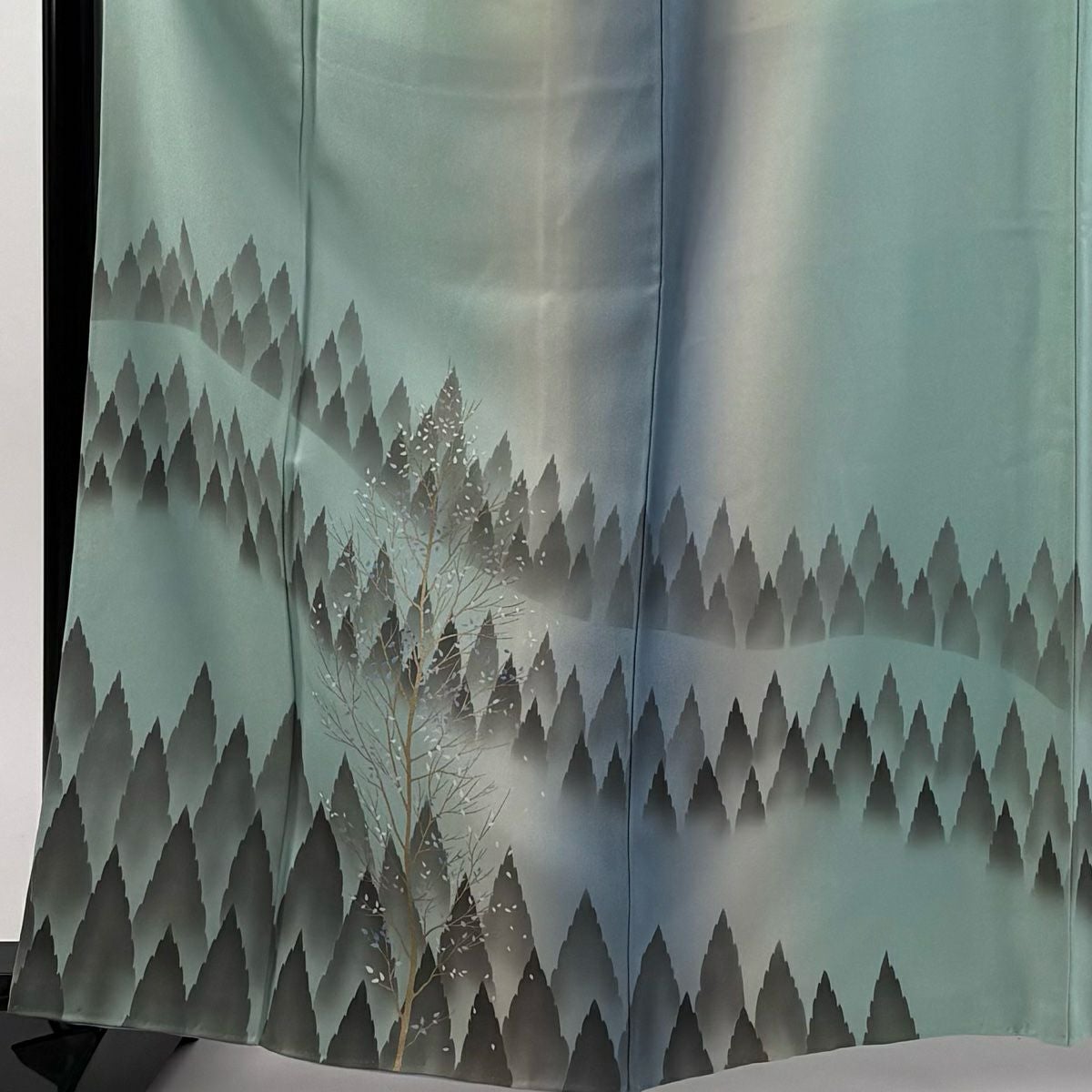 【在庫一掃】 付下げ 身丈163.5cm 裄丈64.5cm M 袷 落款あり 樹木 金彩 染め分け 水色 正絹 秀品