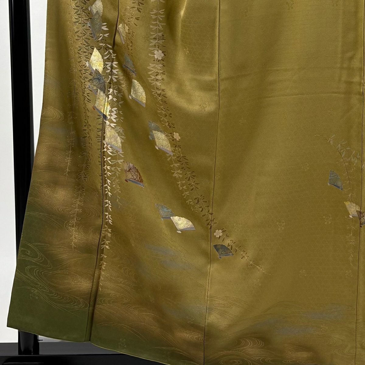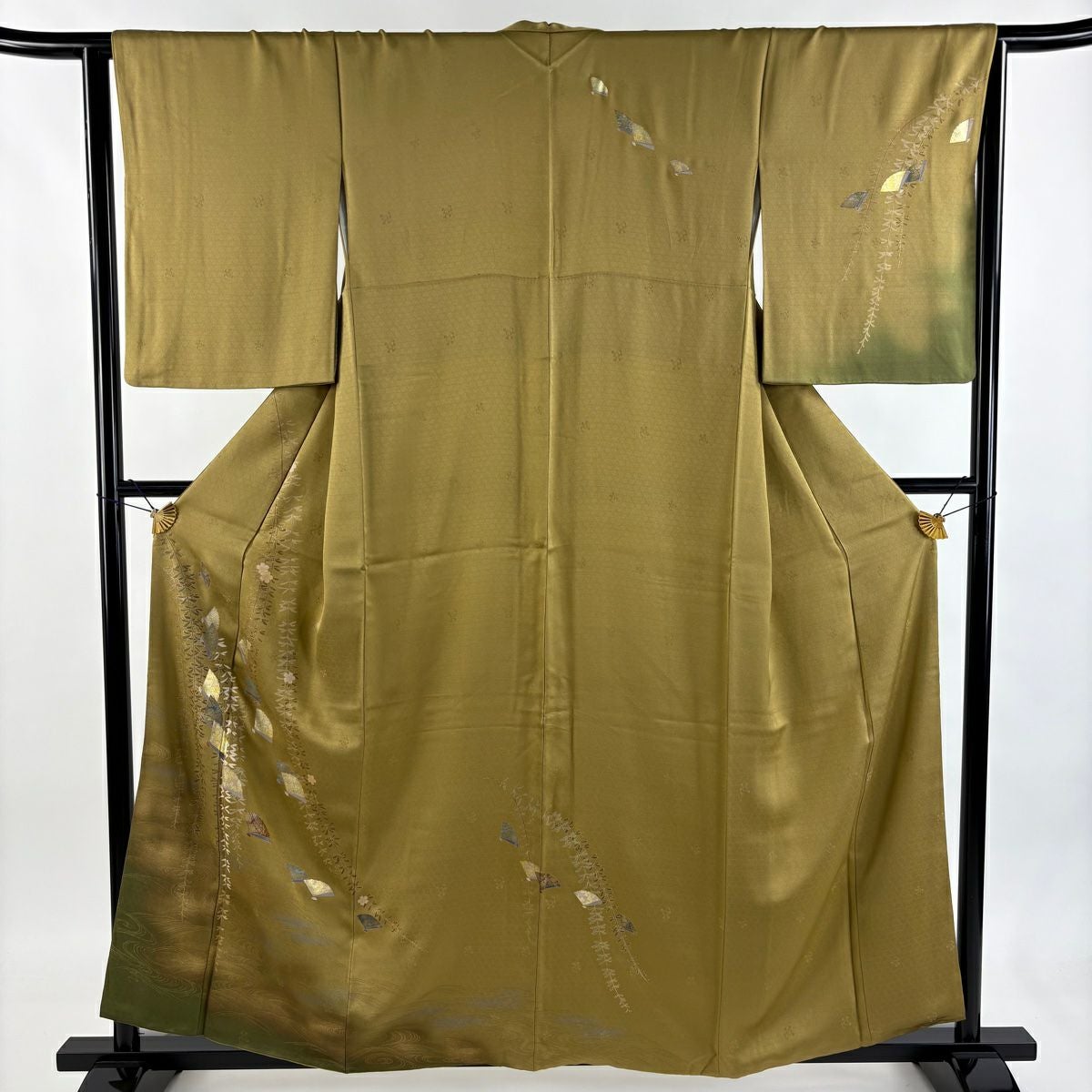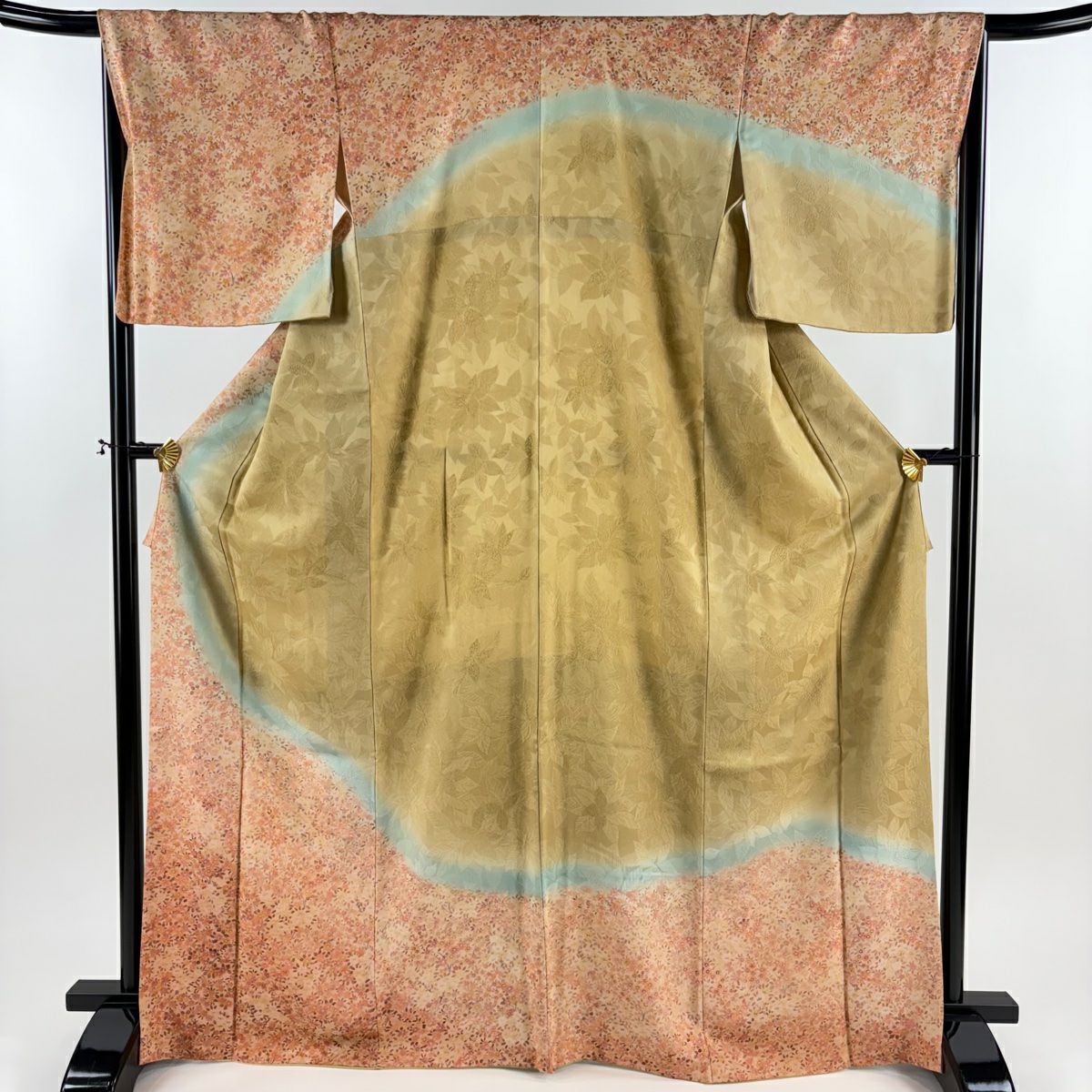 【在庫一掃】 訪問着 身丈158.5cm 裄丈64cm M 袷 やまと 桧扇 波 金彩 ぼかし 黄土色 正絹 秀品