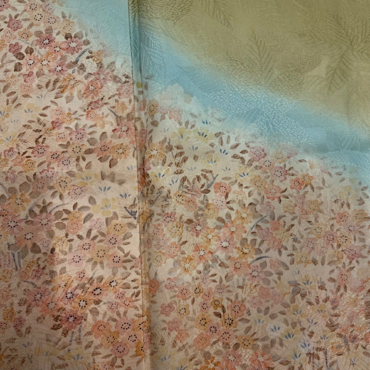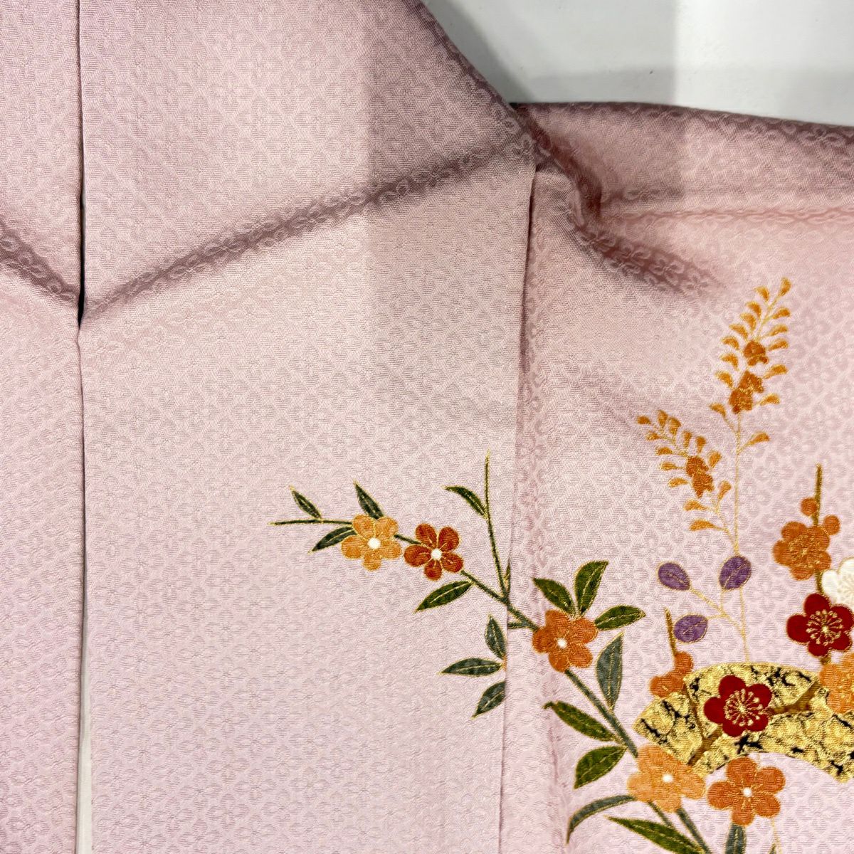 【在庫一掃】 【美品】 付下げ 身丈155cm 裄丈62cm S 袷 草花 地紋 金彩 ぼかし ピンク 正絹 秀品