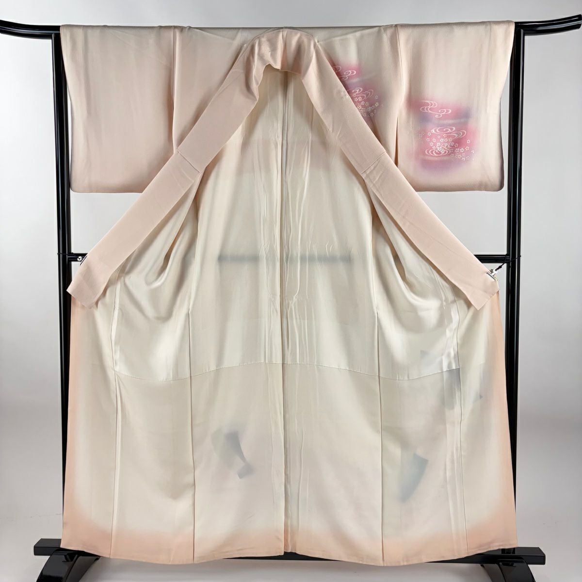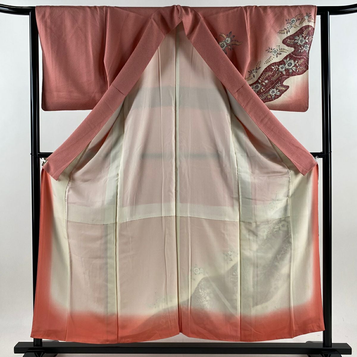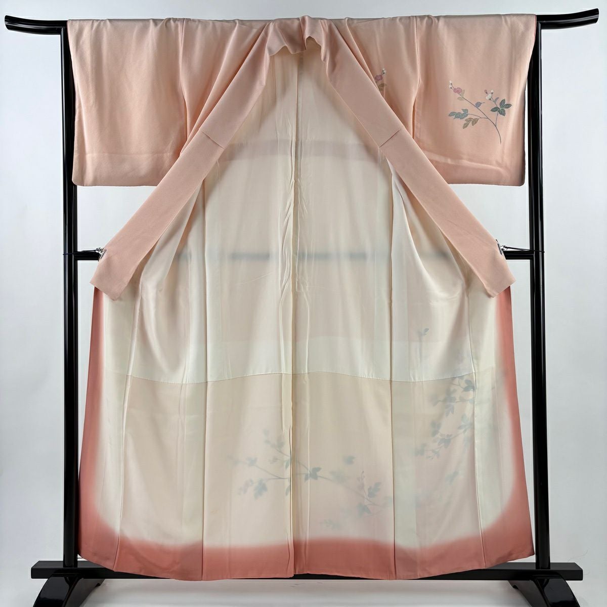 【在庫一掃】 付下げ 身丈156.5cm 裄丈64.5cm M 袷 草花 枝梅 染め分け ぼかし ピンク 正絹 秀品