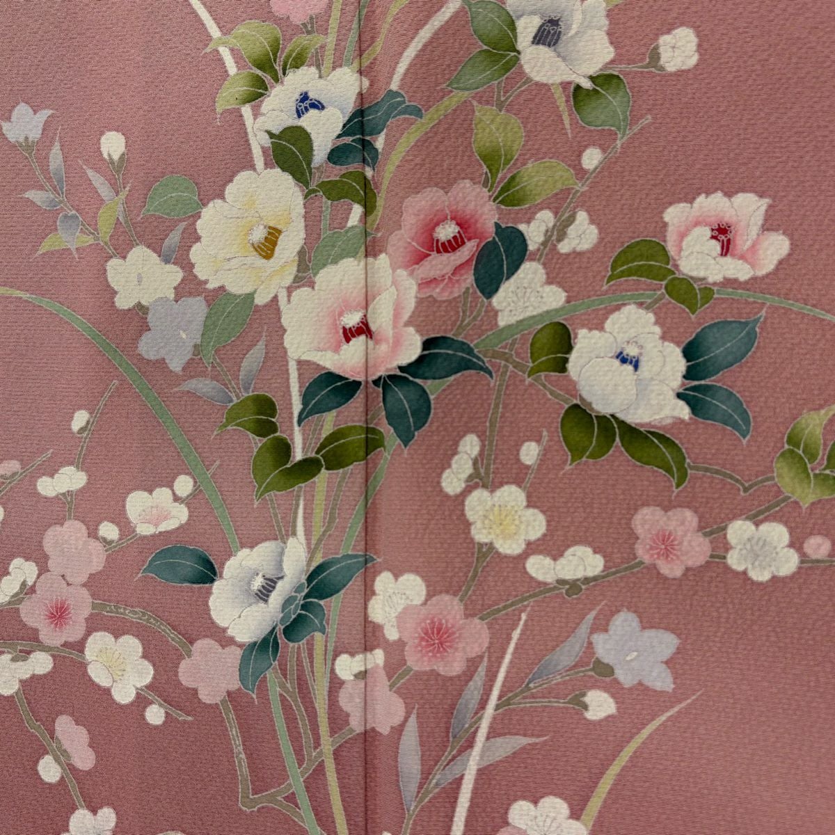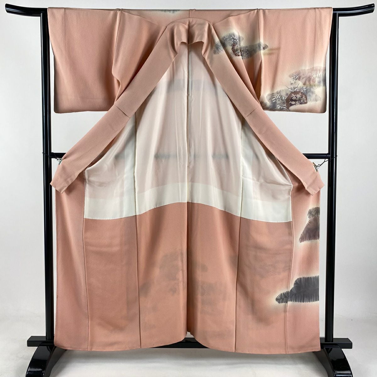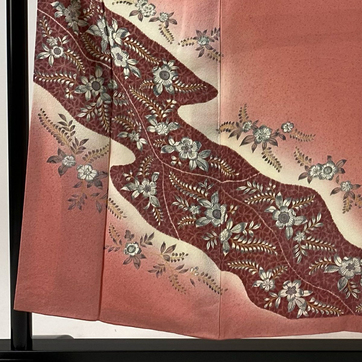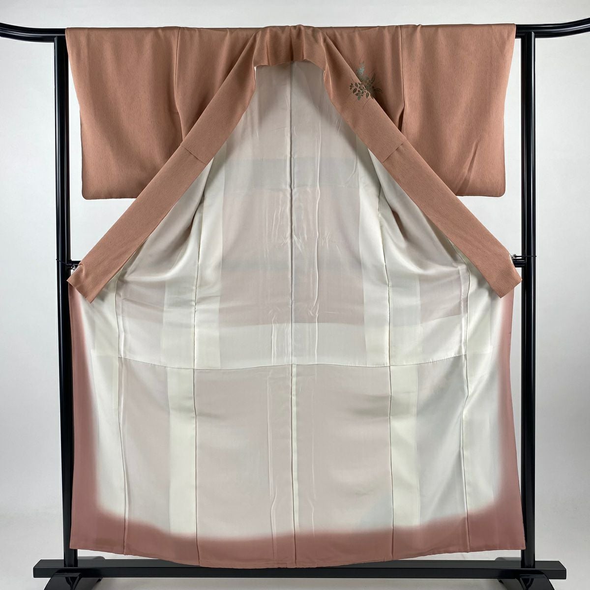 【在庫一掃】 付下げ 身丈156.5cm 裄丈64.5cm M 袷 草花 枝梅 染め分け ぼかし ピンク 正絹 秀品