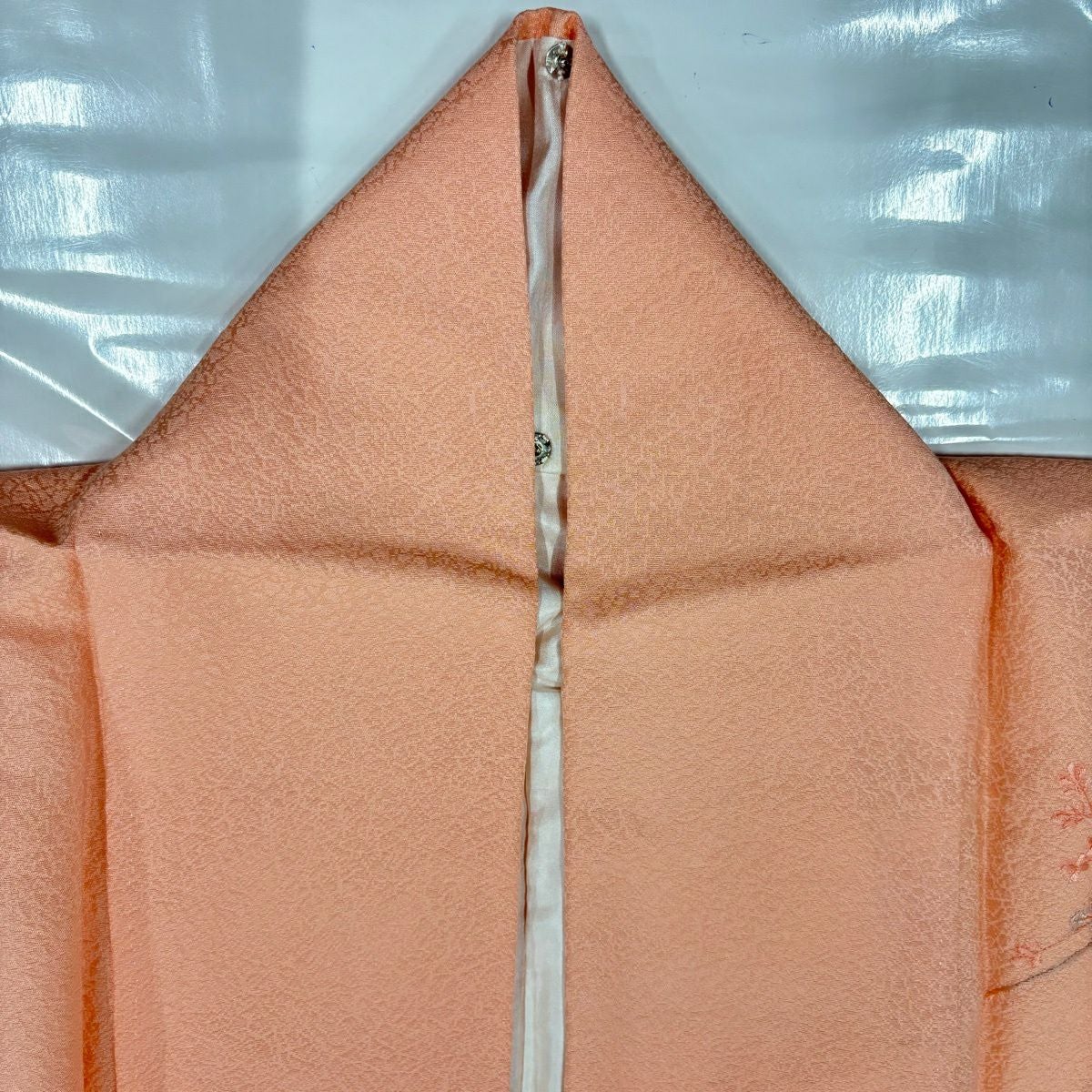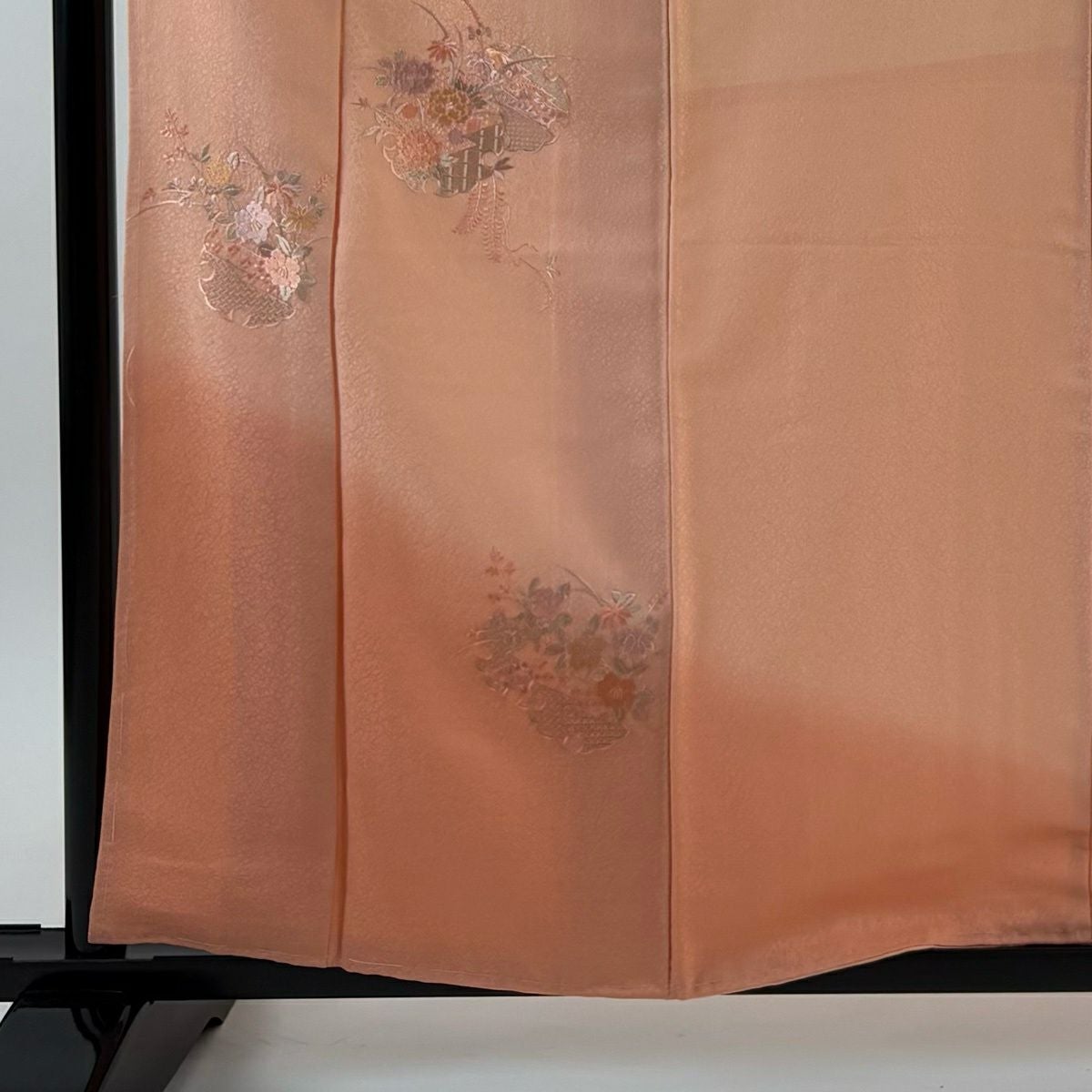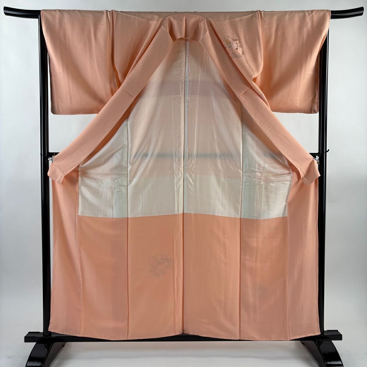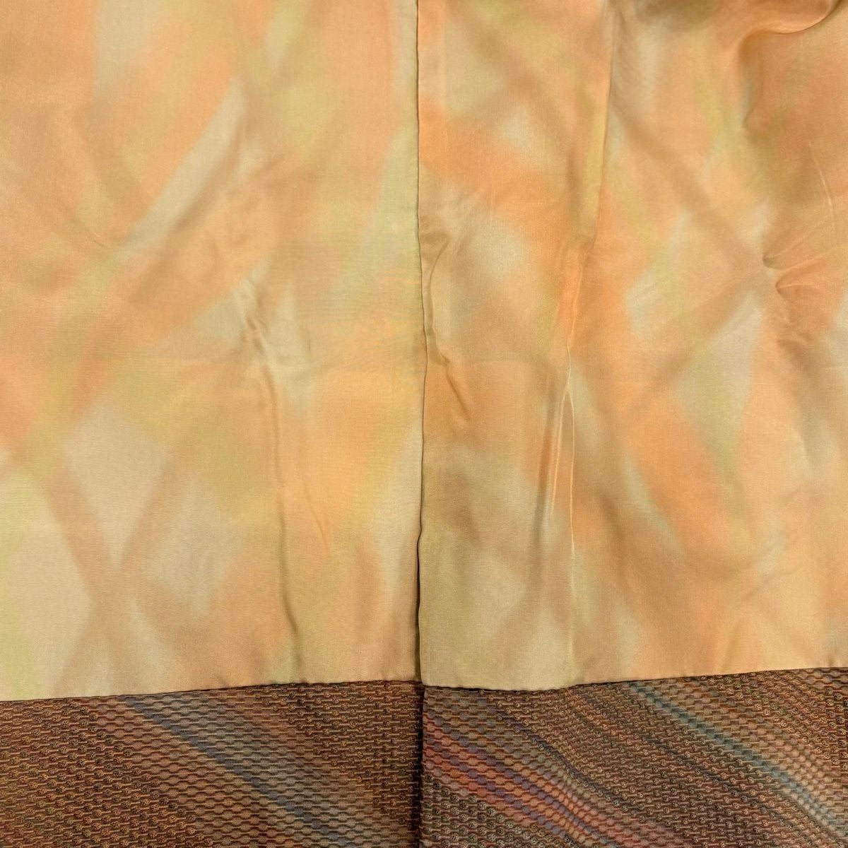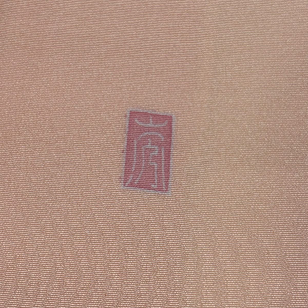 【在庫一掃】 付下げ 身丈157.5cm 裄丈63.5cm S 袷 衝立 松竹梅 金糸 刺繍 薄オレンジ 正絹 秀品