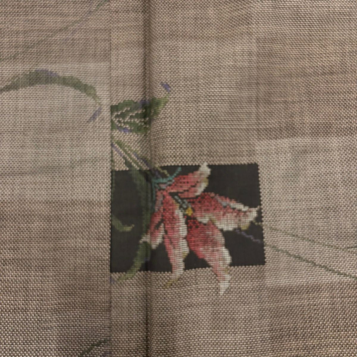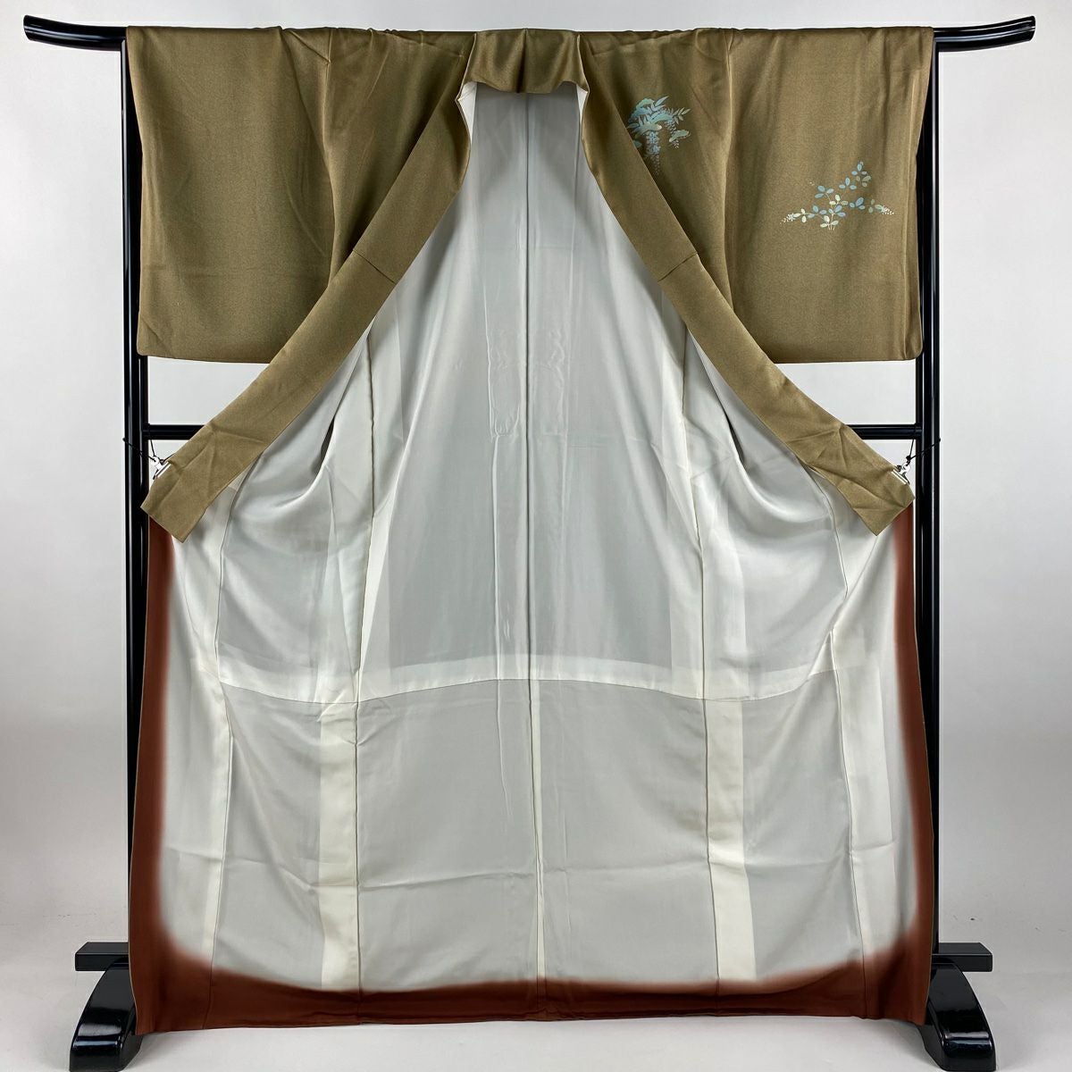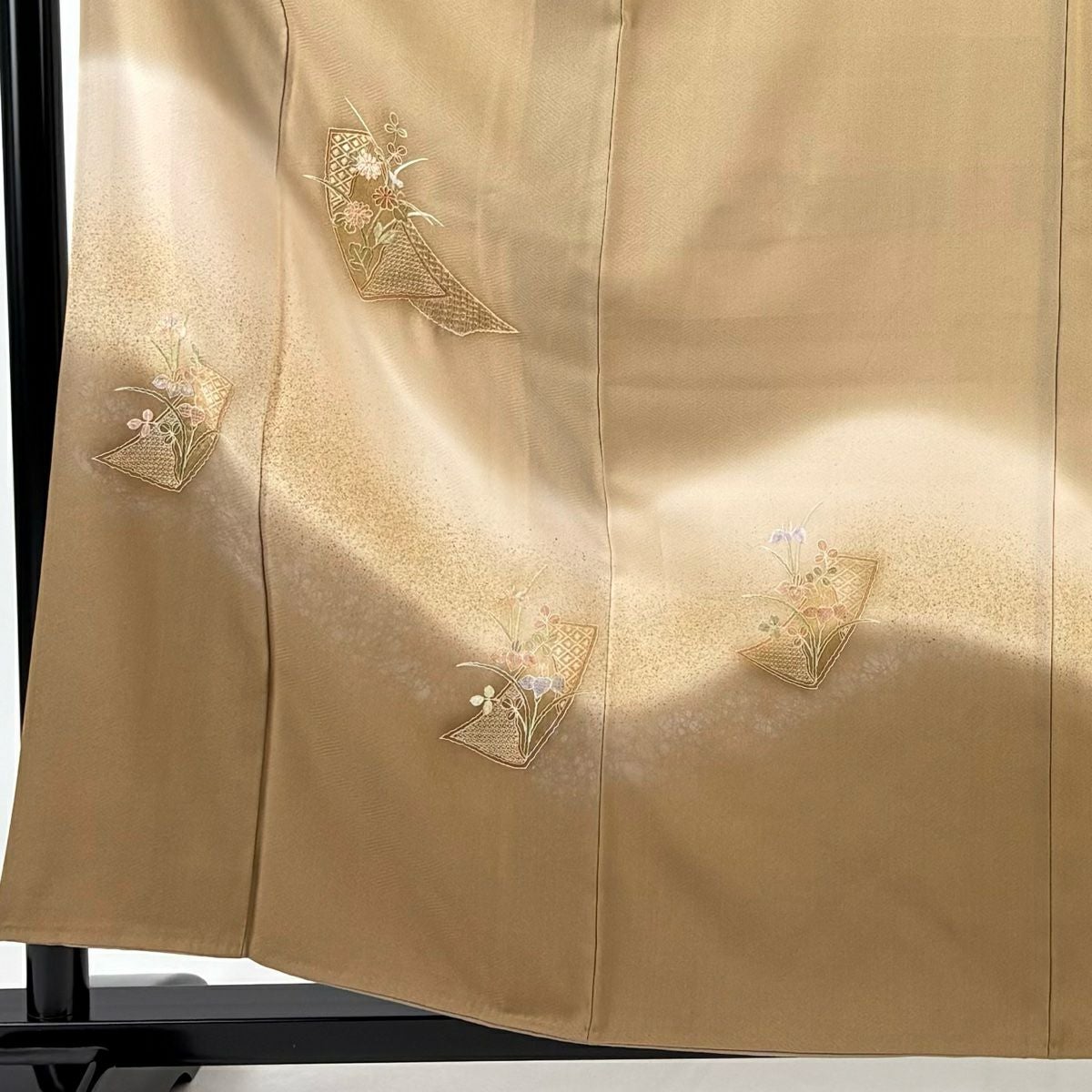 【在庫一掃】 付下げ 身丈159.5cm 裄丈66cm M 袷 短冊 草花 刺繍 金彩 薄茶色 正絹 秀品 一つ紋