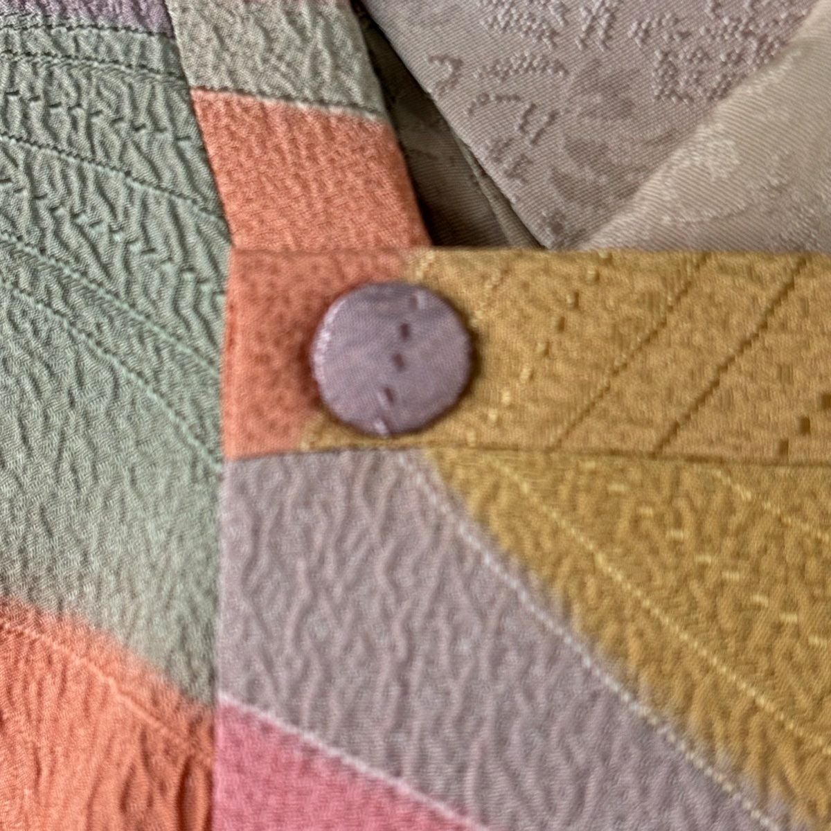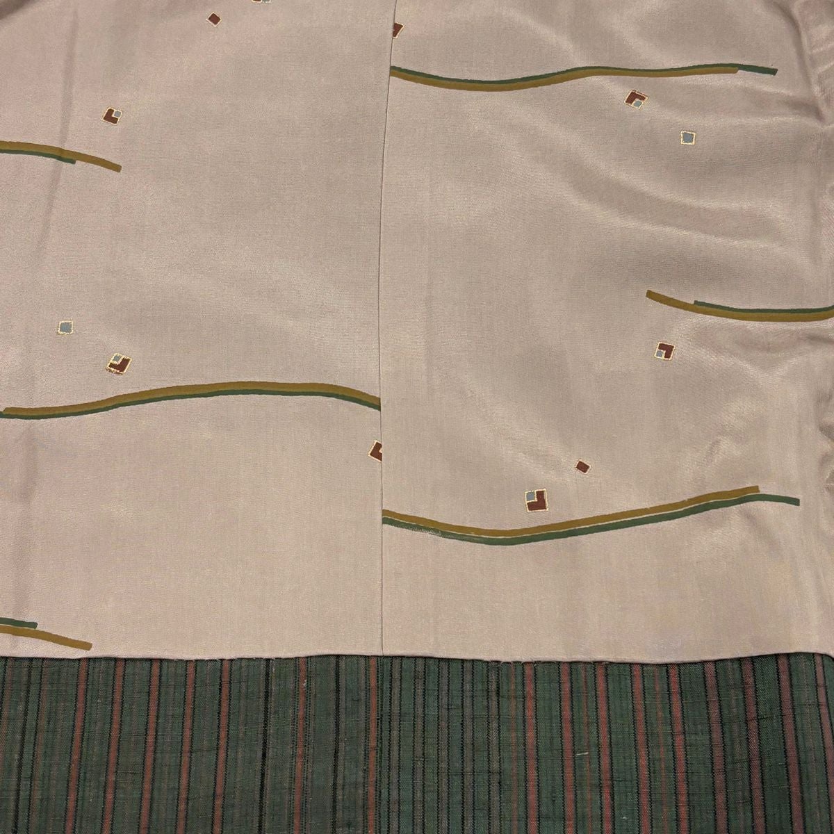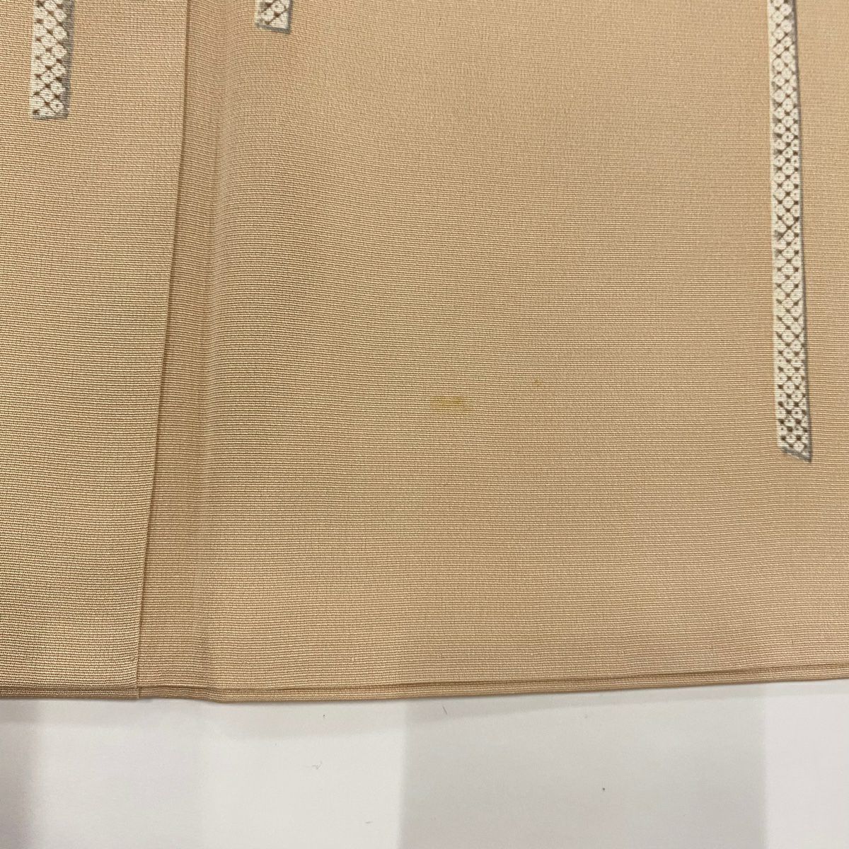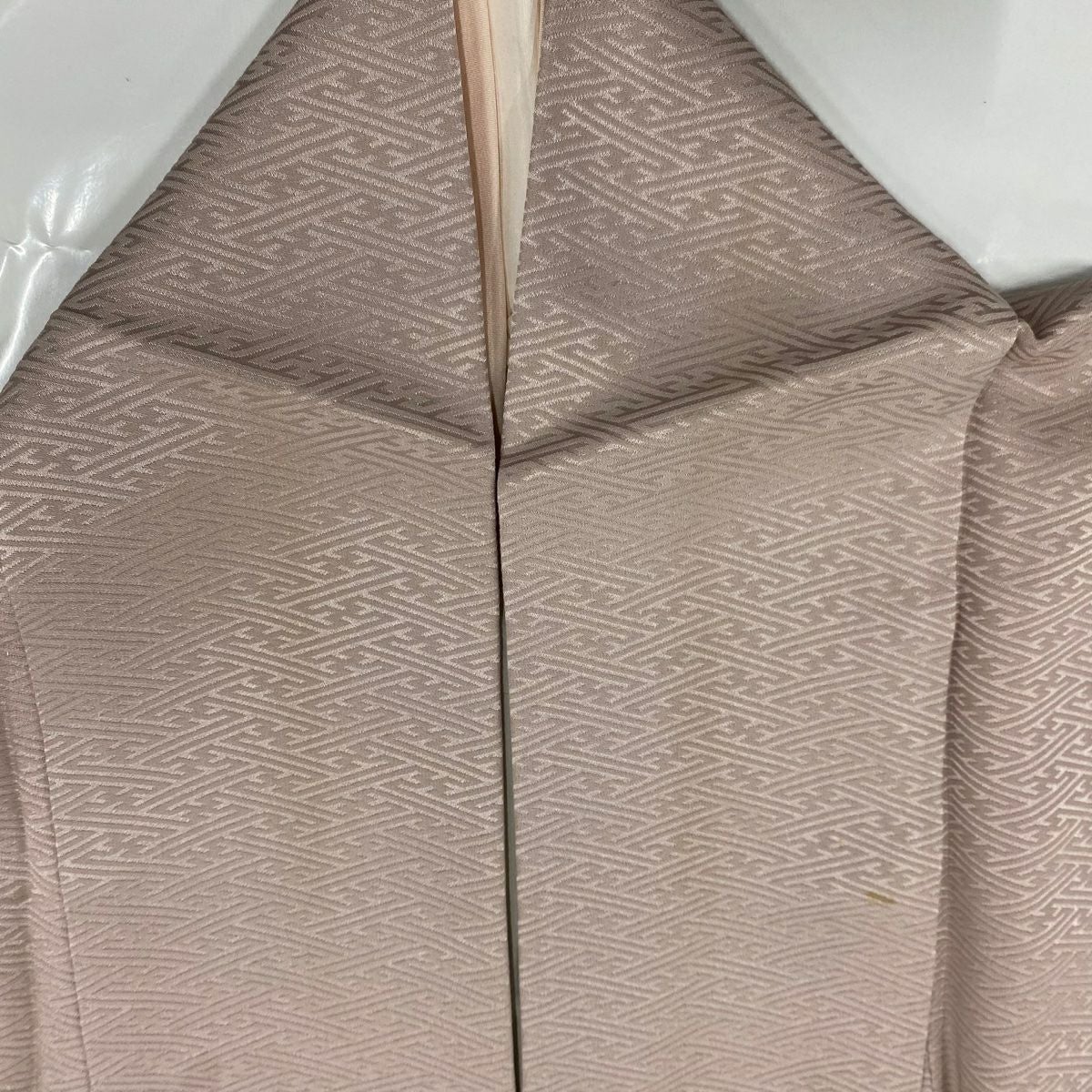 【在庫一掃】 付下げ 身丈154.5cm 裄丈65.5cm M 袷 紬地 幾何学模様 ベージュ 正絹 秀品 一つ紋
