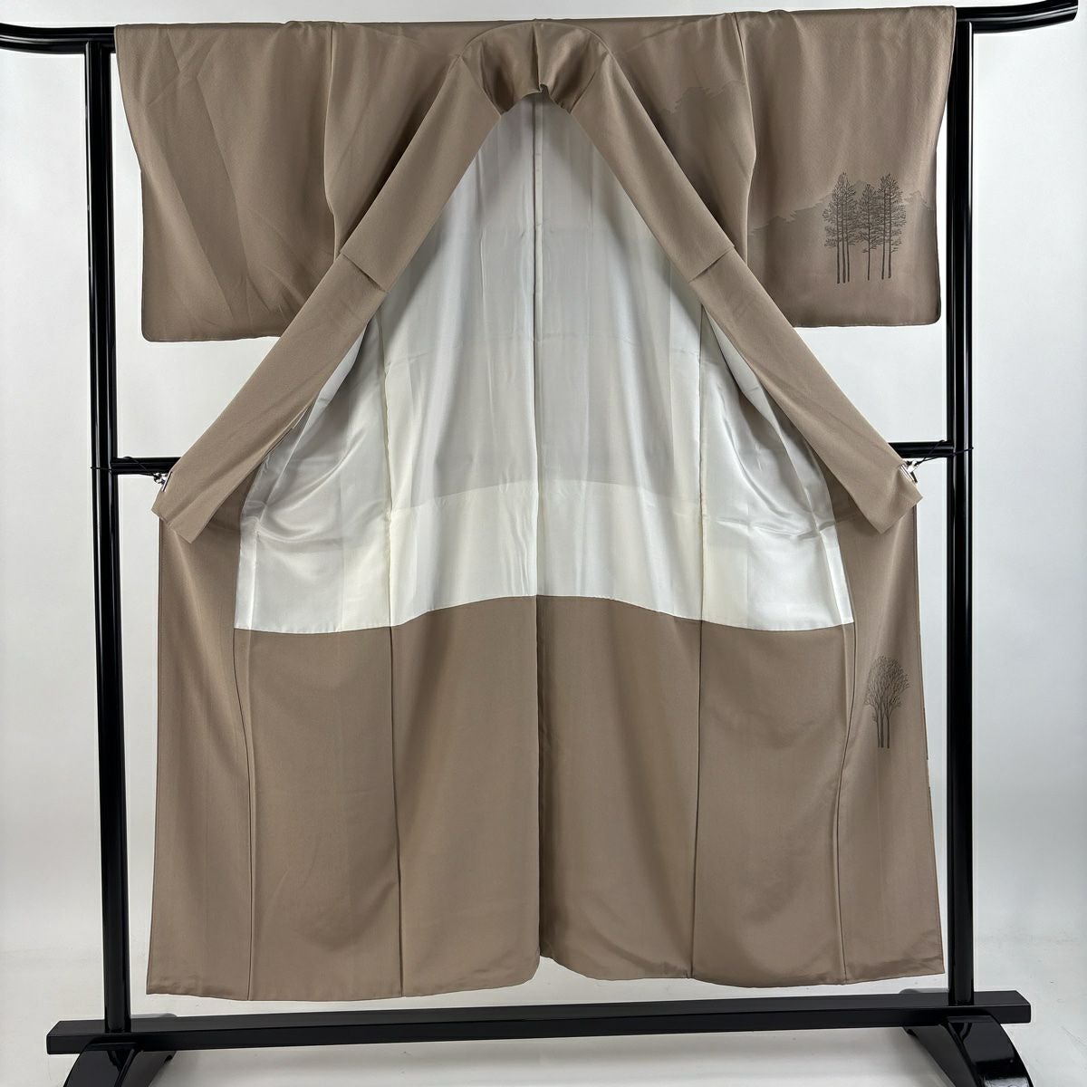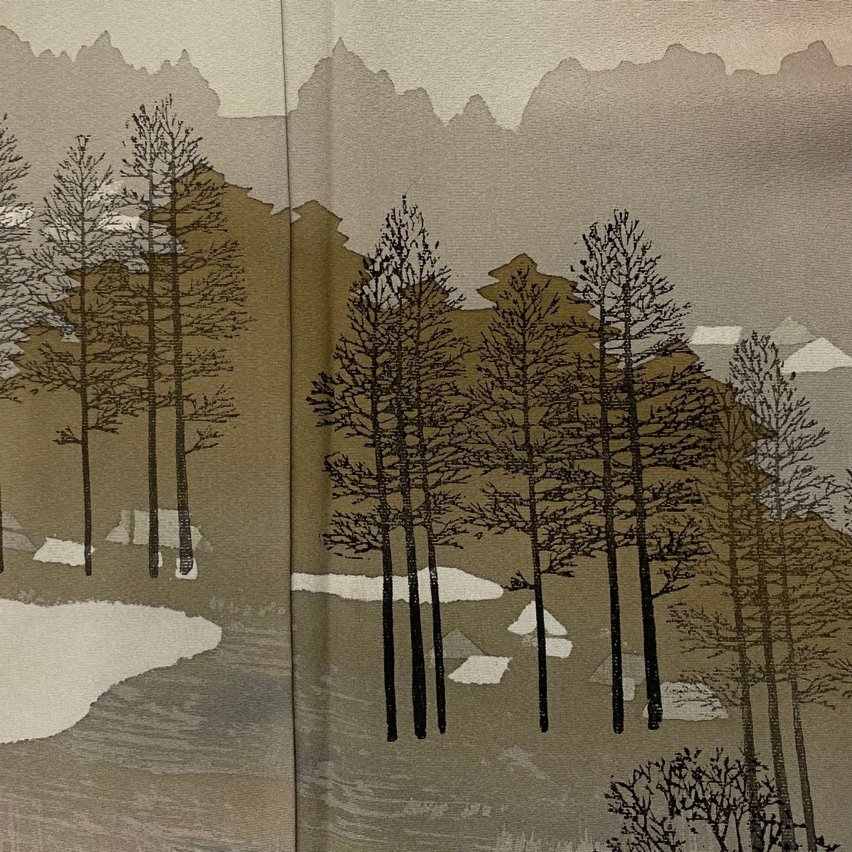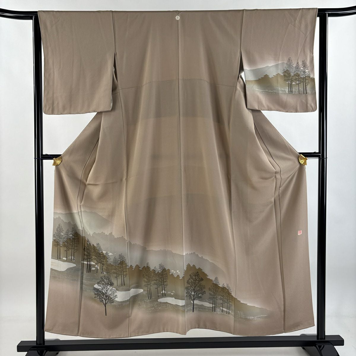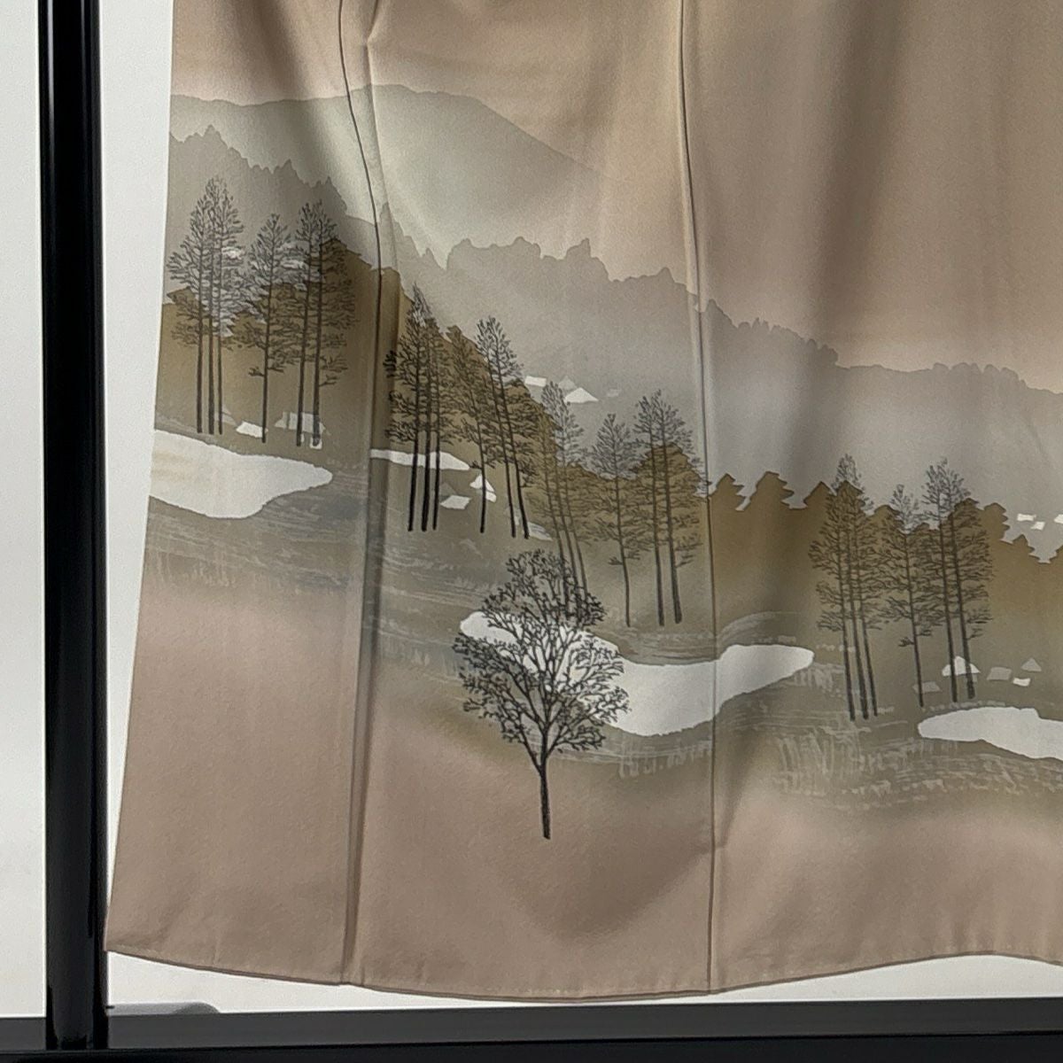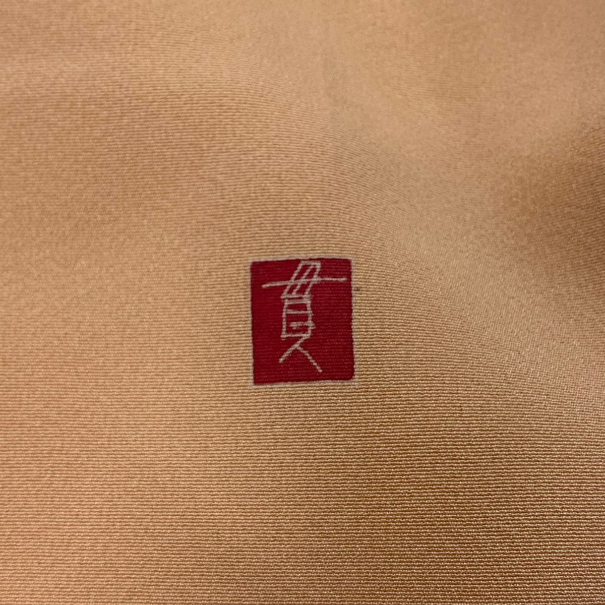 【在庫一掃】 付下げ 身丈153cm 裄丈64cm M 袷 落款あり 樹木 山 ぼかし 薄茶色 正絹 秀品 一つ紋
