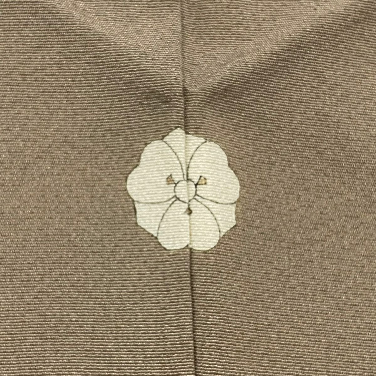 【在庫一掃】 【美品】 小紋 身丈163.5cm 裄丈62.5cm S 袷 紬地 霞 ぼかし 薄茶色 正絹 秀品 一つ紋