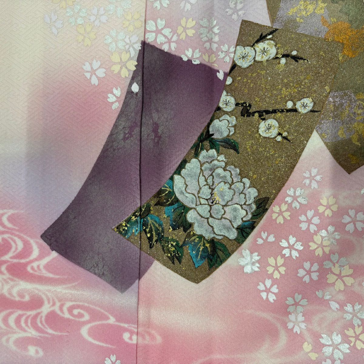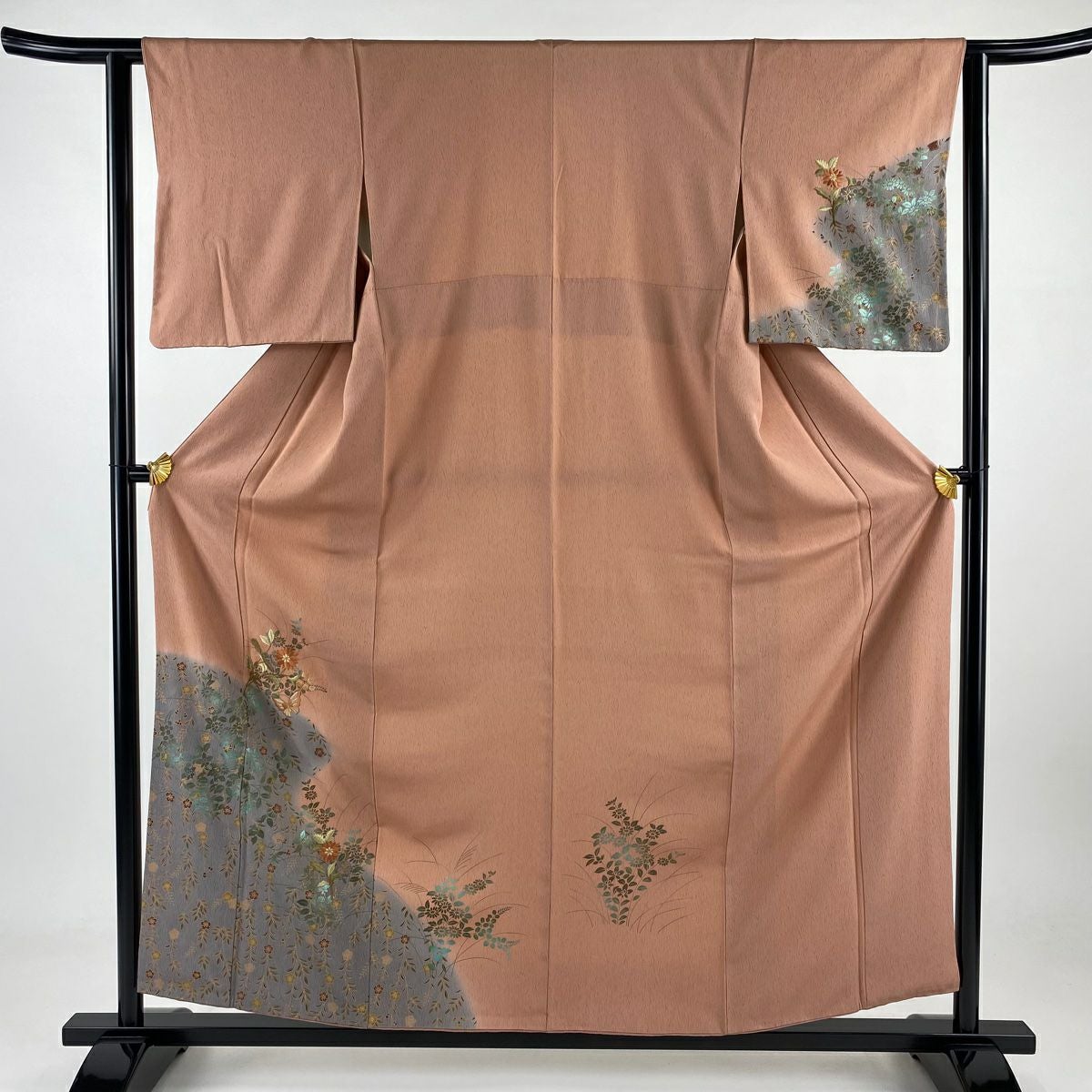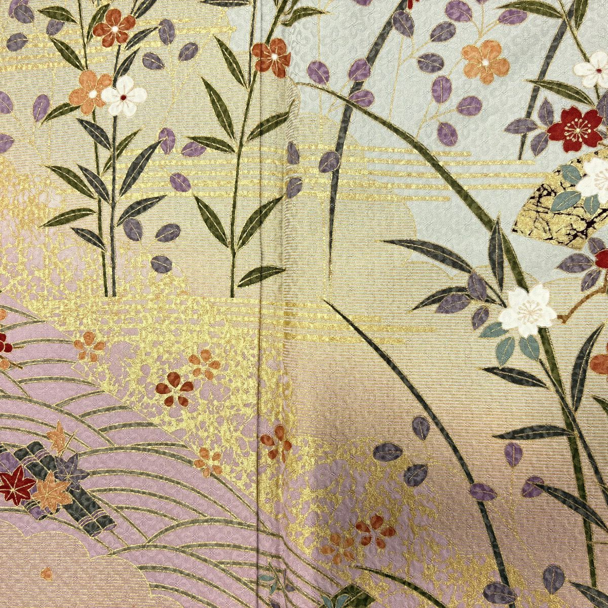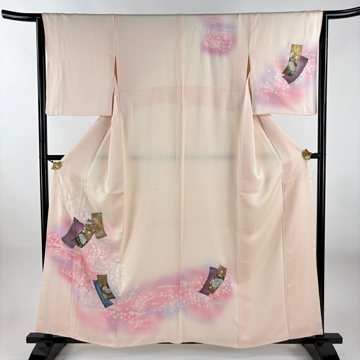 【在庫一掃】 付下げ 身丈159cm 裄丈64.5cm M 袷 短冊 草花 金銀彩 ぼかし 薄ピンク 正絹 秀品