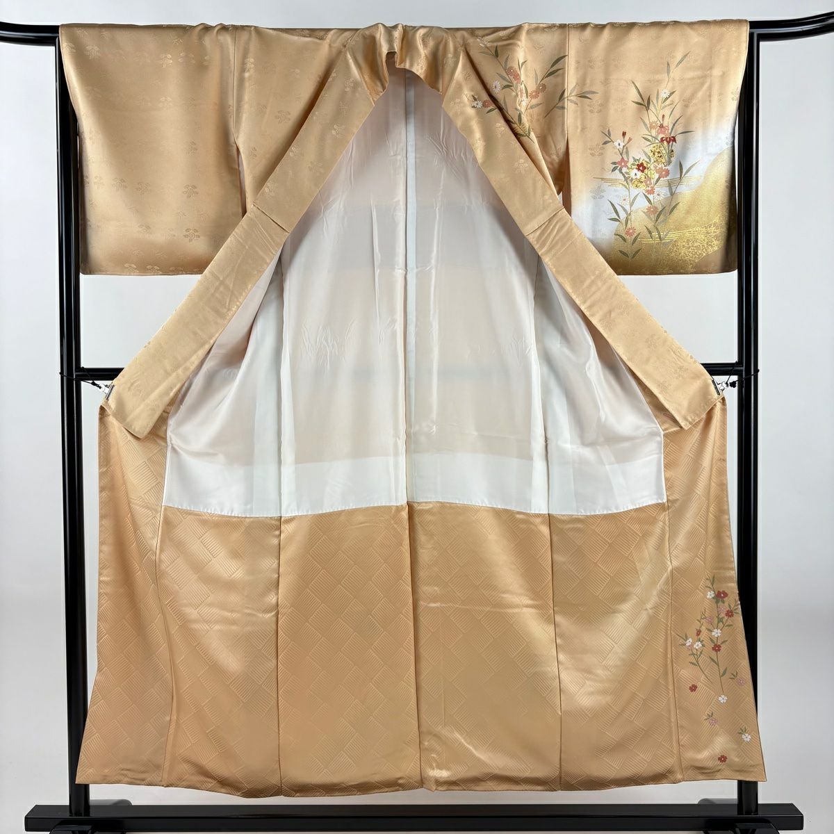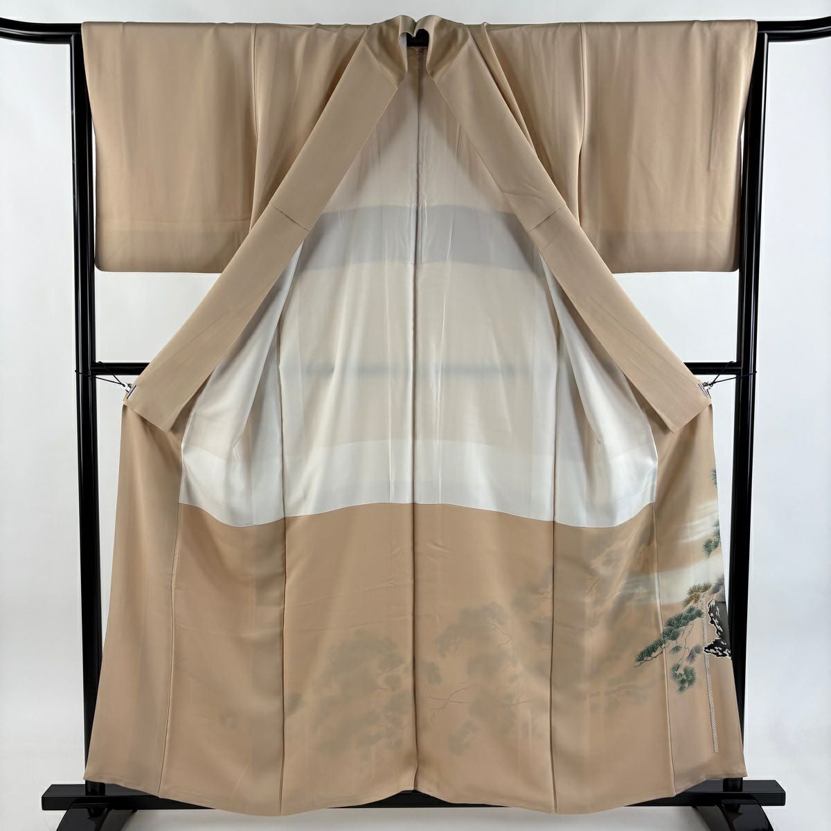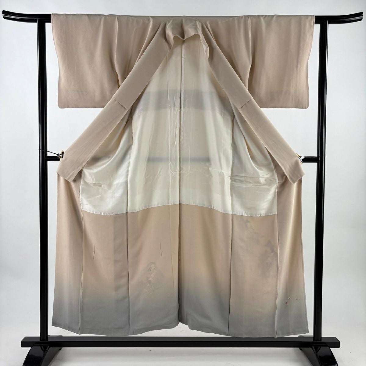 【在庫一掃】 色留袖 身丈158.5cm 裄丈65.5cm M 袷 笠松 橋 ぼかし ベージュ 正絹 秀品 一つ紋