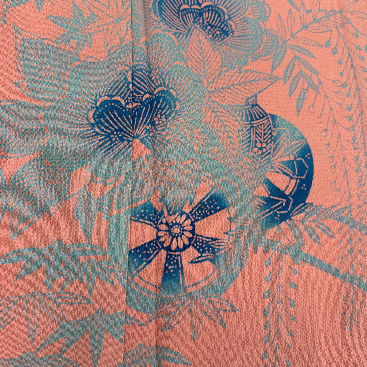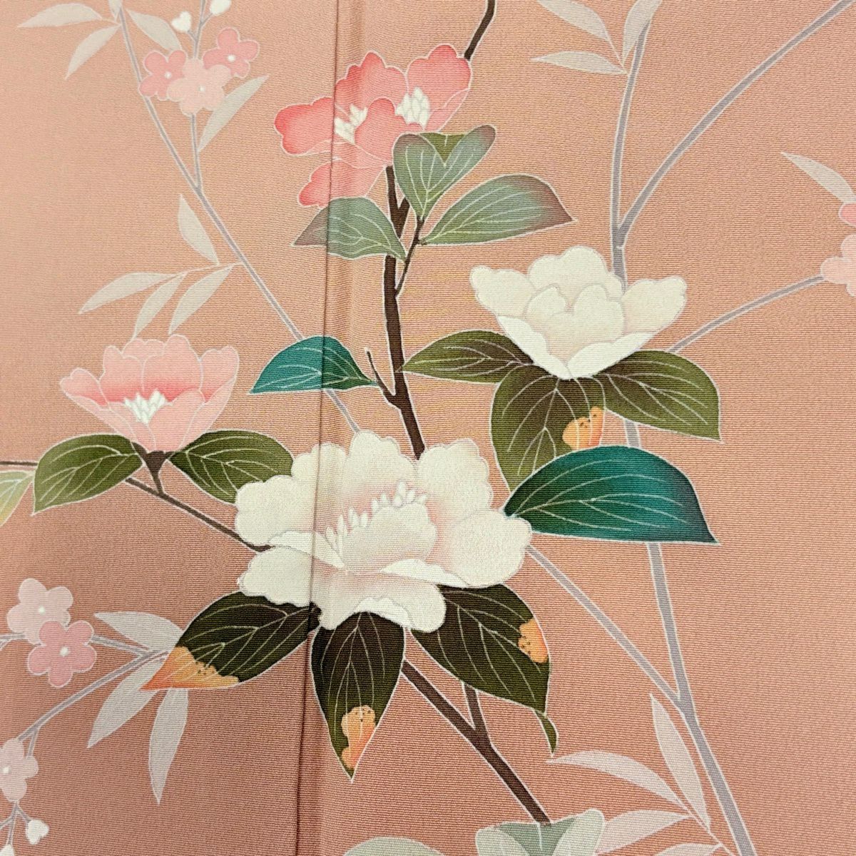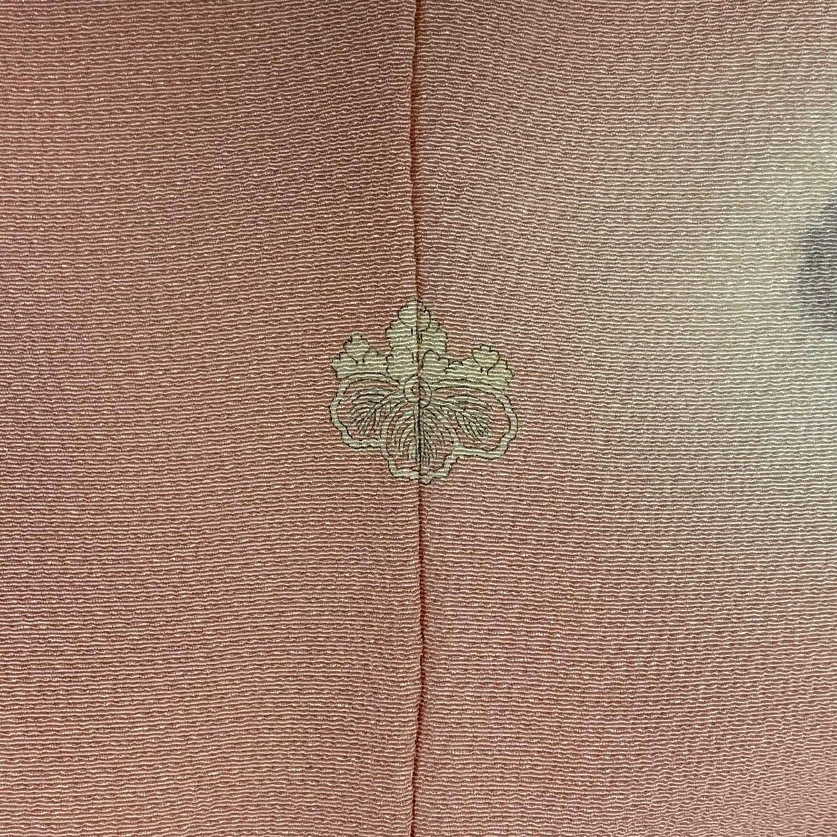 【在庫一掃】 訪問着 身丈159cm 裄丈63.5cm S 袷 鏡裏文 草花 サーモンピンク 正絹 秀品 一つ紋