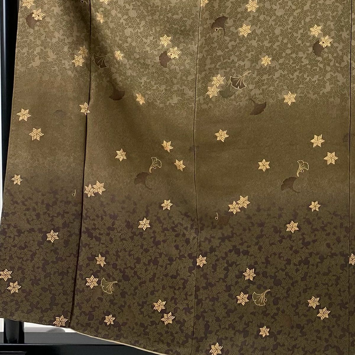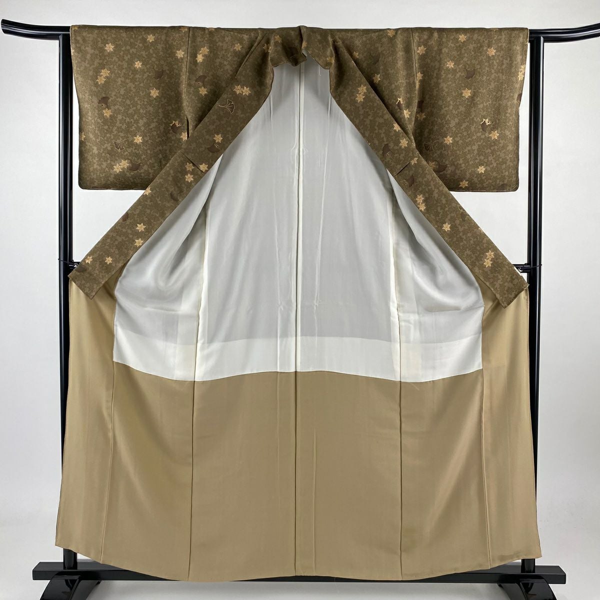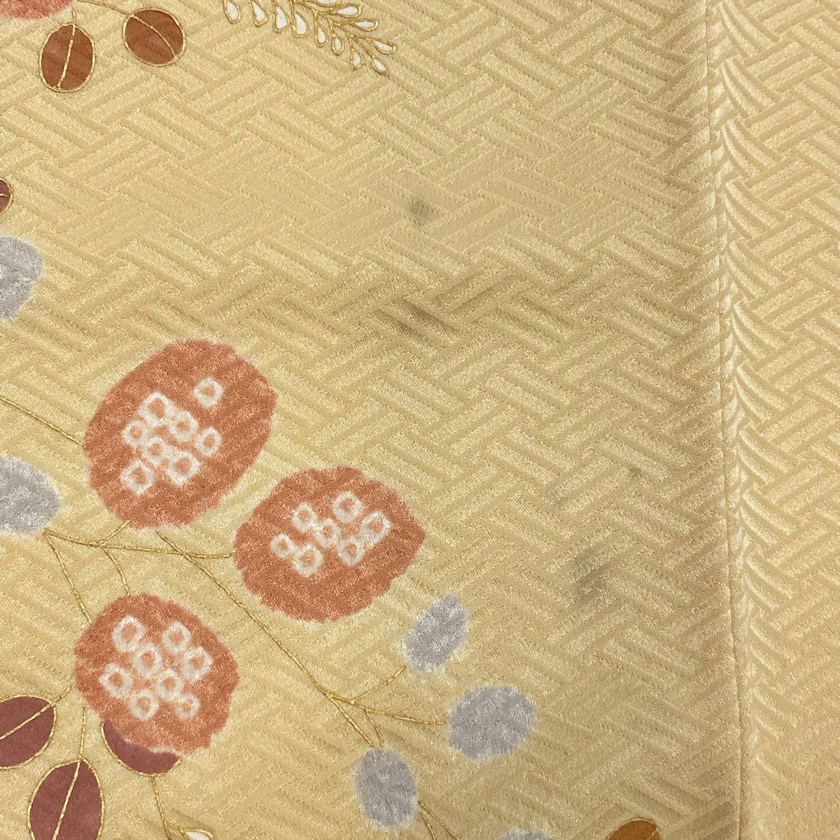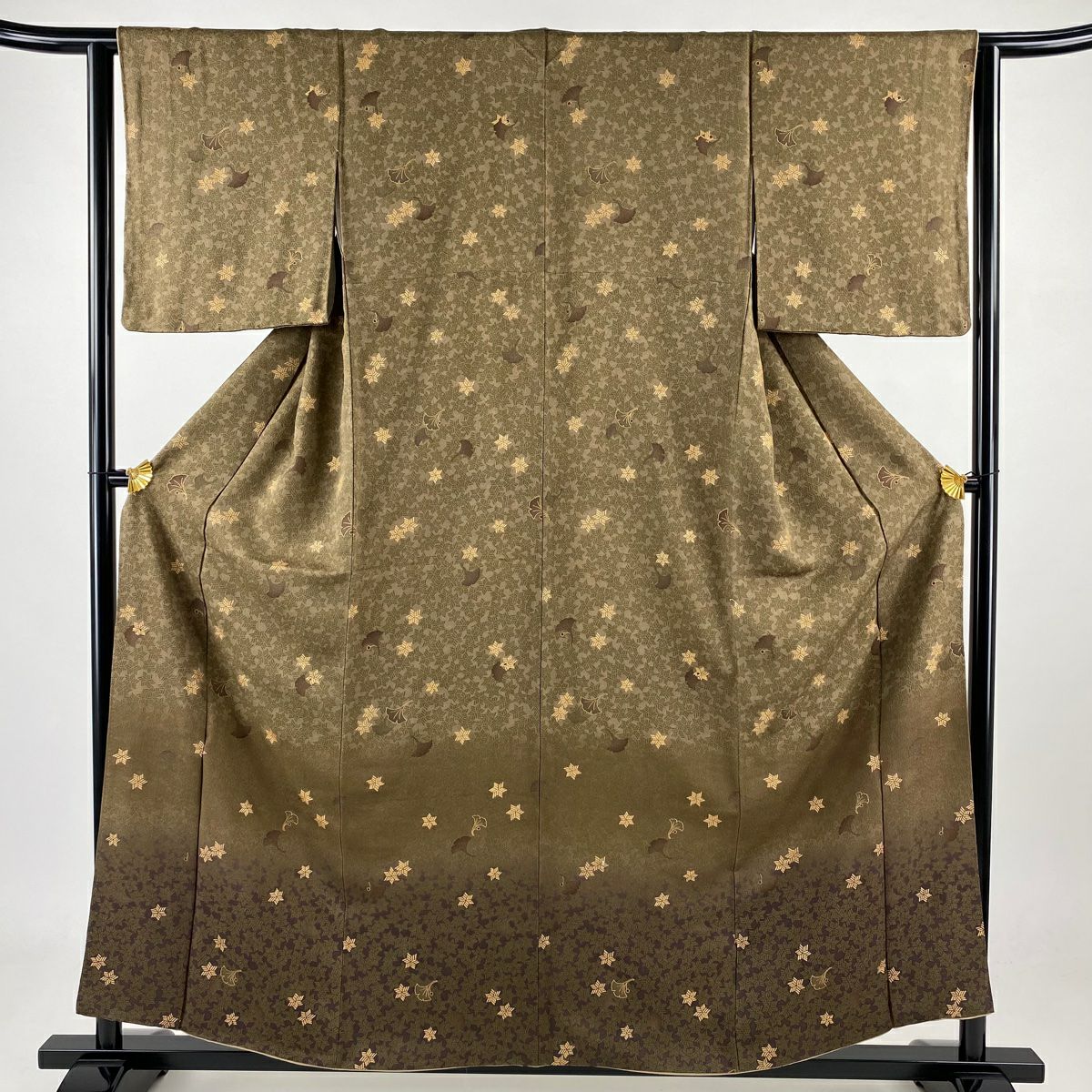 【在庫一掃】 【美品】 付下げ 身丈158cm 裄丈63cm S 袷 銀杏 幾何学 金彩 ぼかし 薄茶色 正絹 秀品