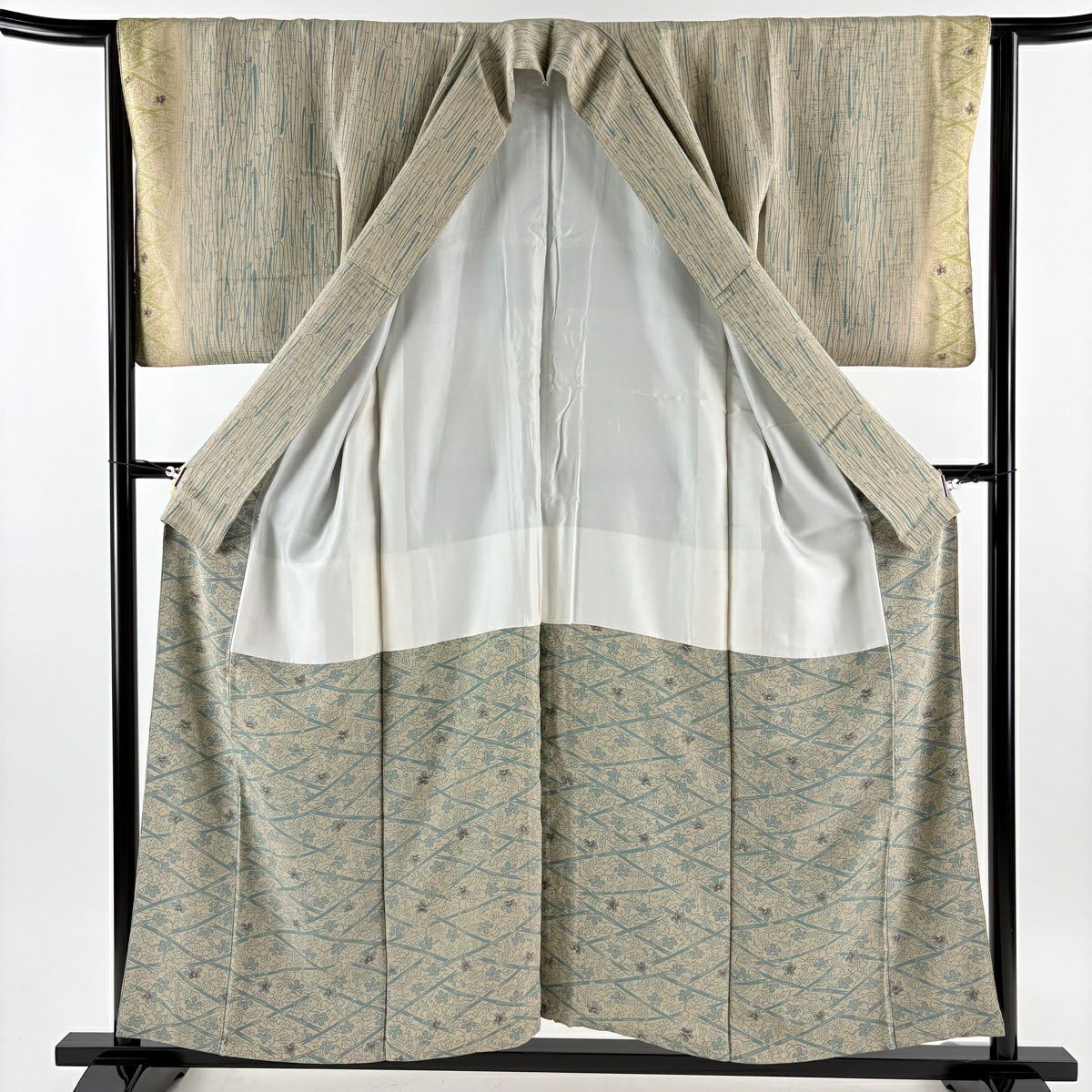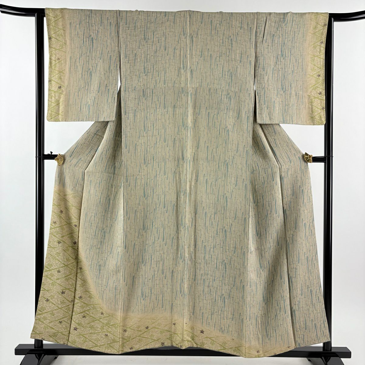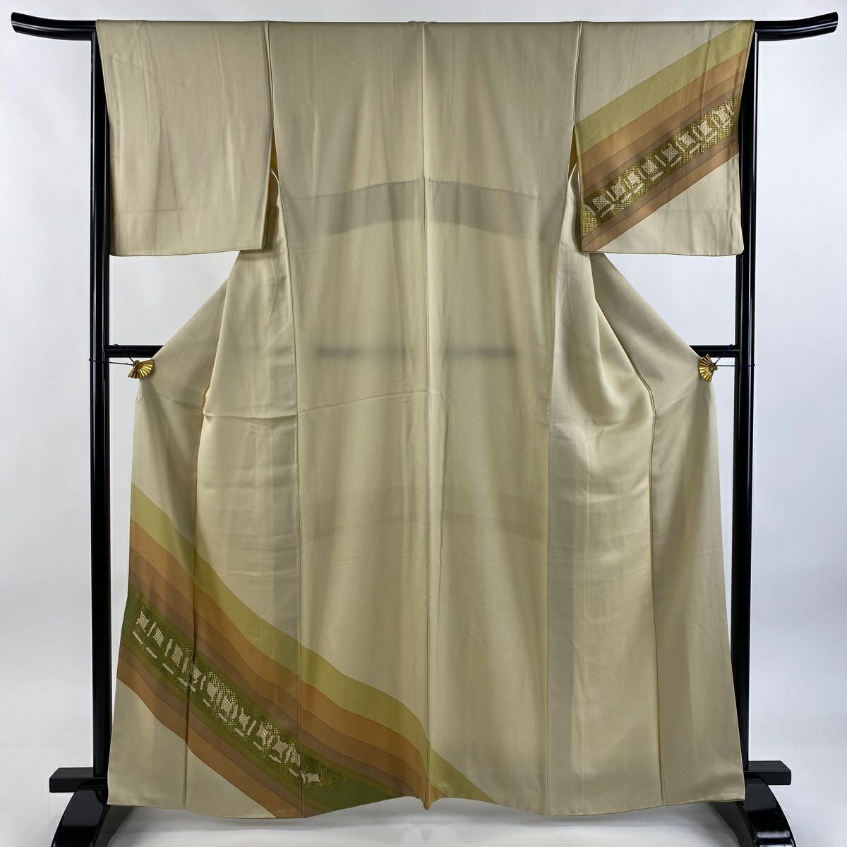 【在庫一掃】 付下げ 身丈162.5cm 裄丈65.5cm M 袷 斜縞 幾何学 金彩 刺繍 ベージュ 正絹 秀品