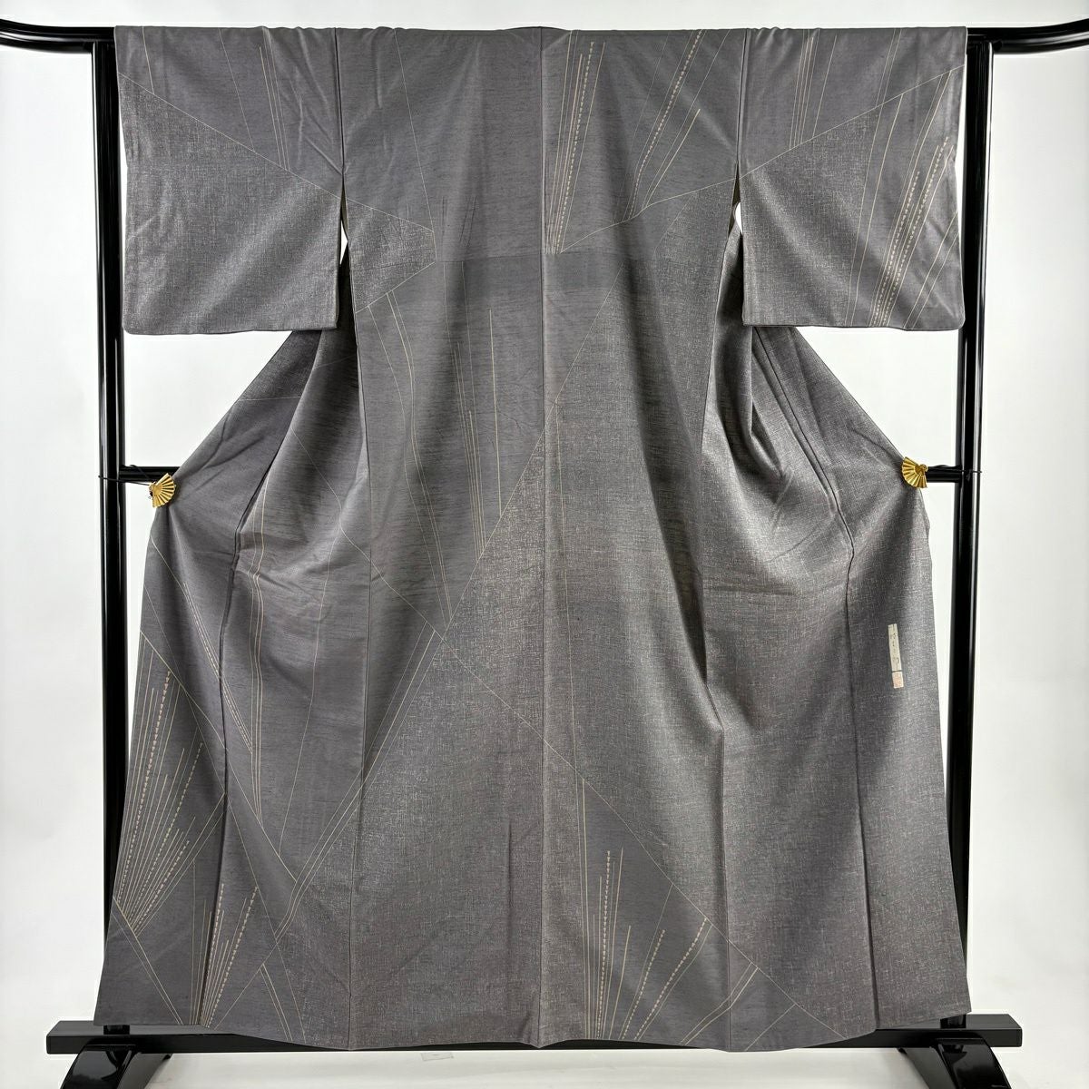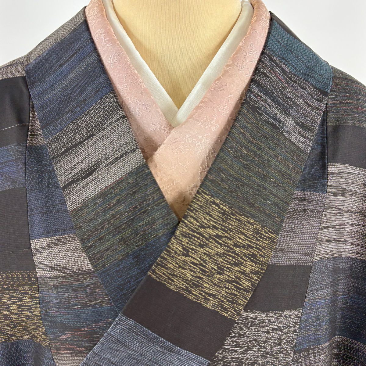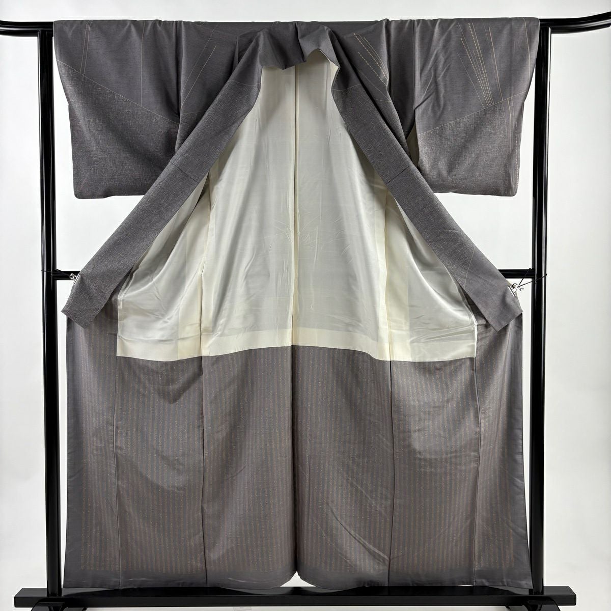 【在庫一掃】 付下げ 身丈162.5cm 裄丈65.5cm M 袷 斜縞 幾何学 金彩 刺繍 ベージュ 正絹 秀品