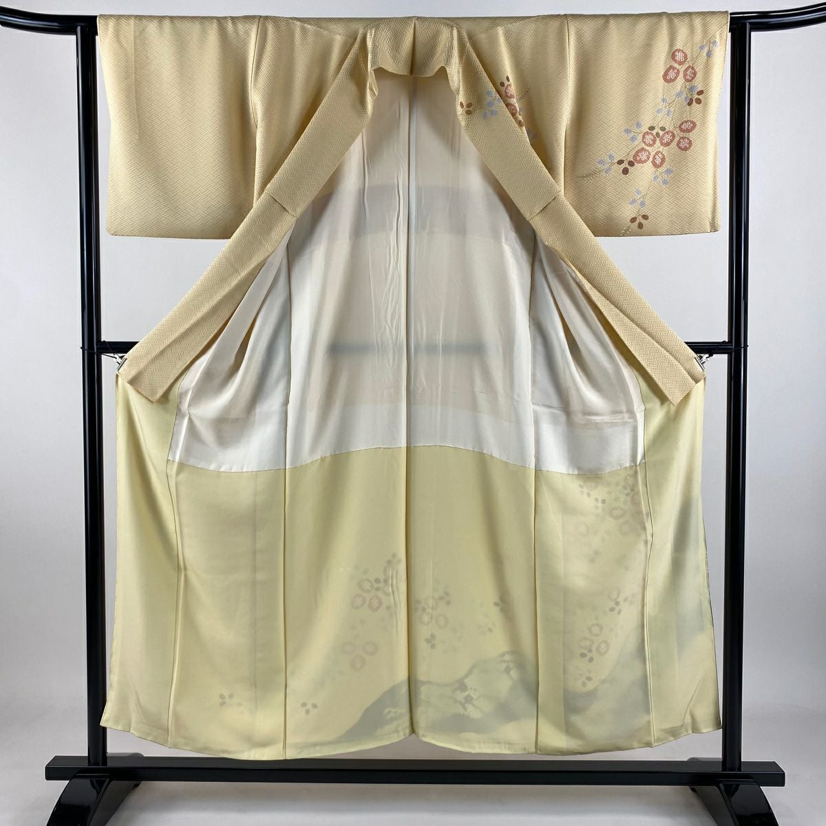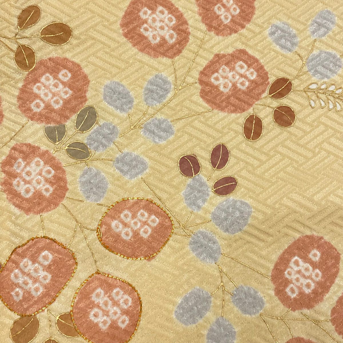 【在庫一掃】 【美品】 付下げ 身丈153cm 裄丈63cm S 袷 紬地 雪輪 草花 刺繍 ベージュ 正絹 秀品
