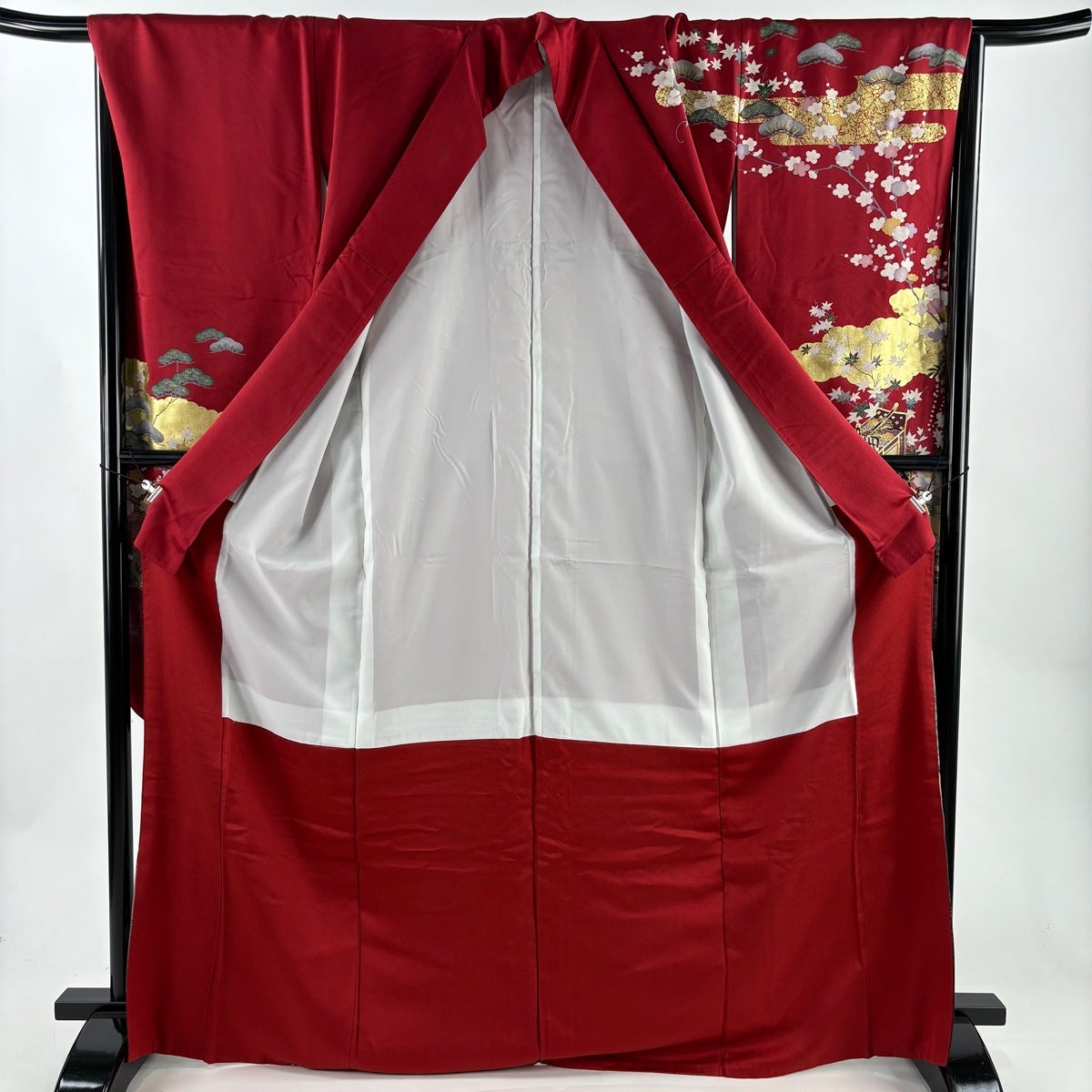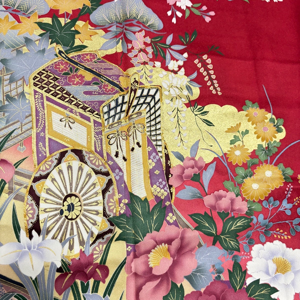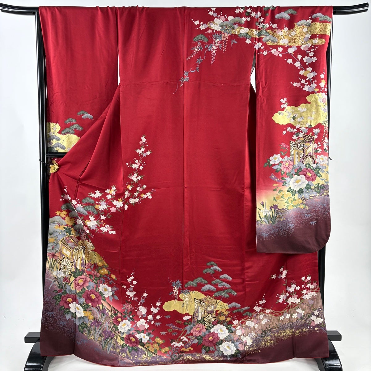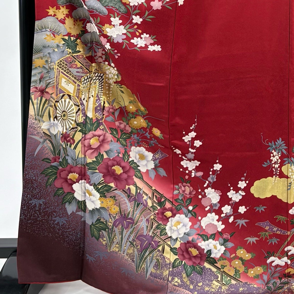 【美品】 振袖 身丈170cm 裄丈68.5cm L 袷 御所車 松竹梅 金糸 金彩 赤 正絹 秀品