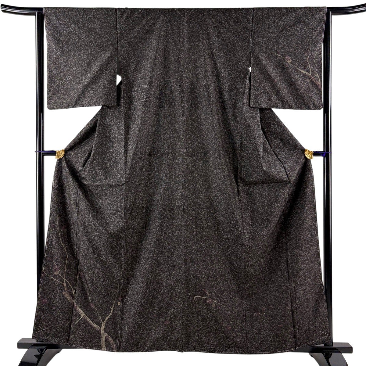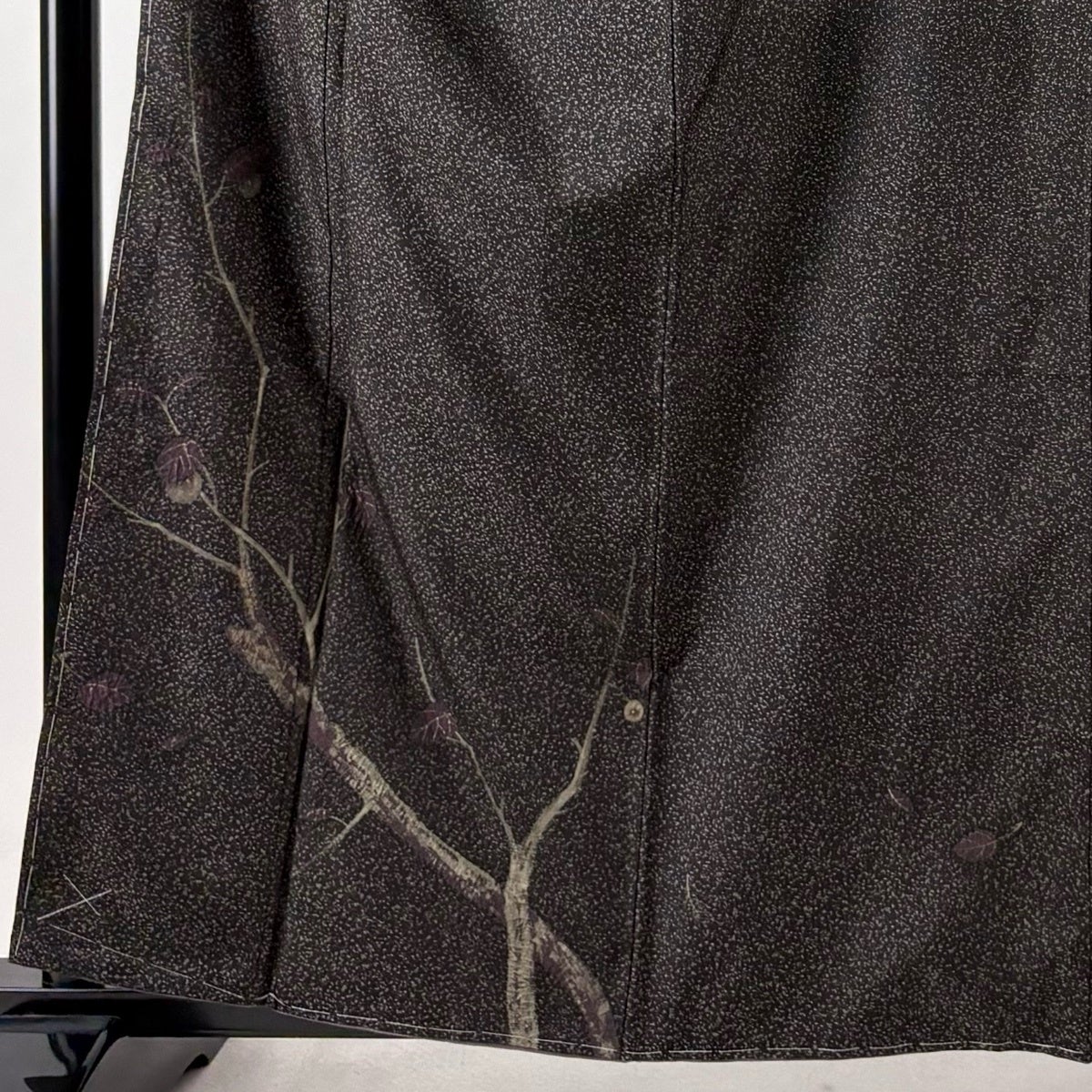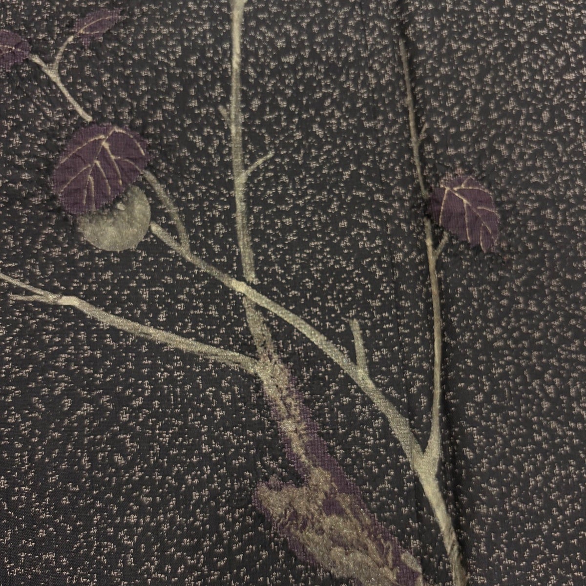 【美品】 付下げ 身丈161.5cm 裄丈63cm S 袷 紬地 枝葉 絞り 金彩 墨色 正絹 秀品