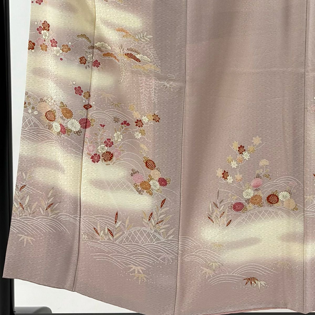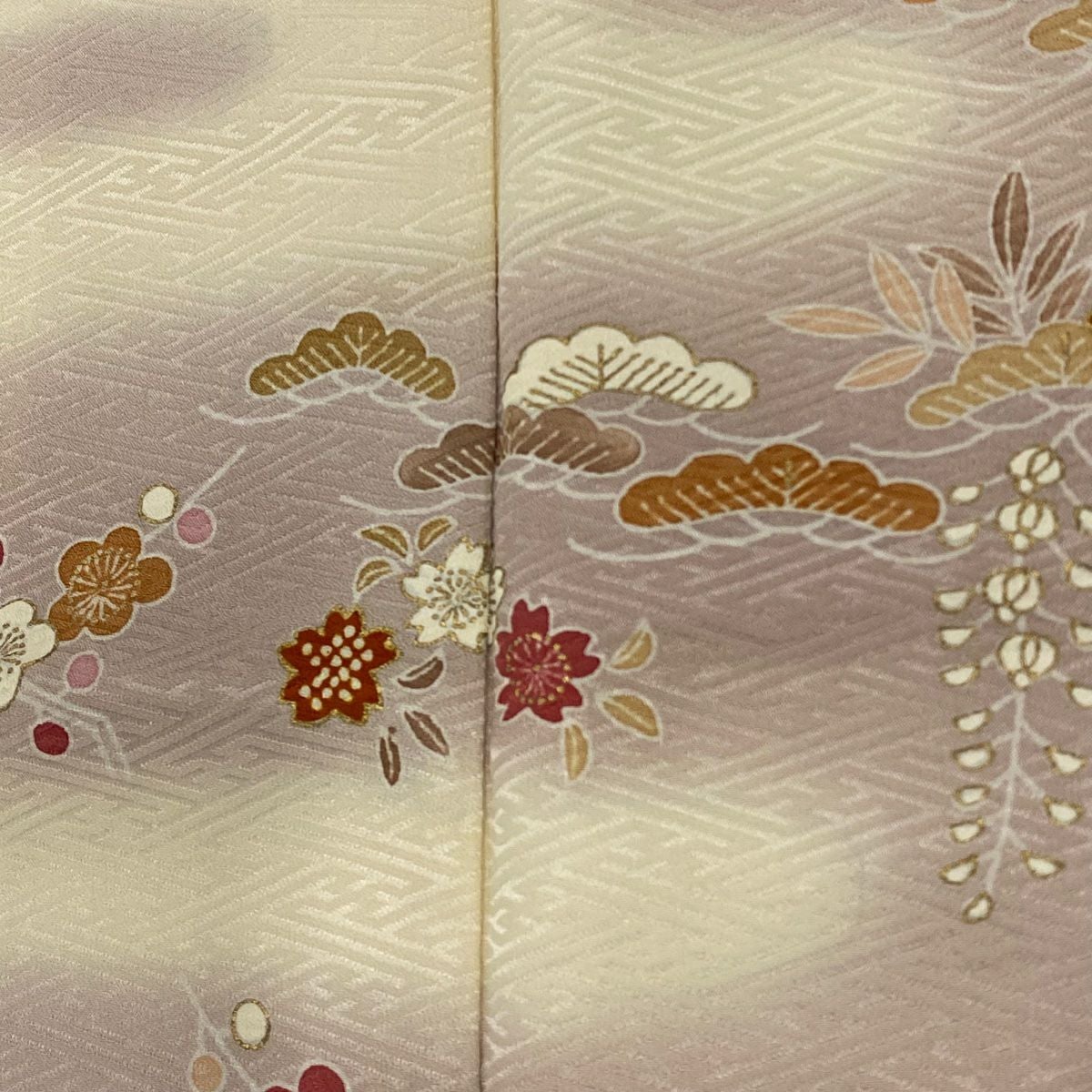 【在庫一掃】 付下げ 身丈152cm 裄丈62.5cm S 袷 松竹梅 菊 金彩 ぼかし 薄紫 正絹 秀品 一つ紋