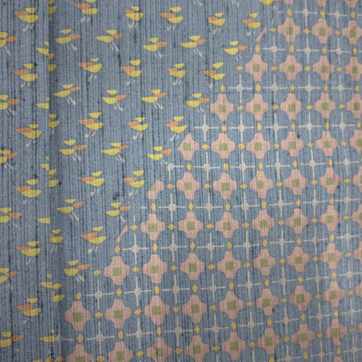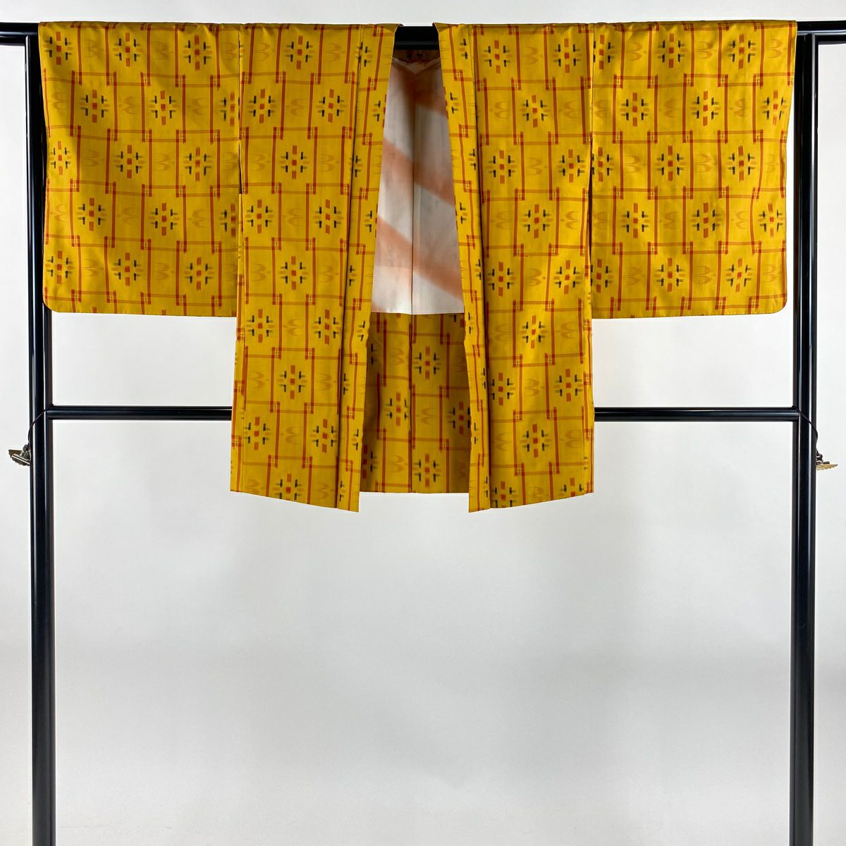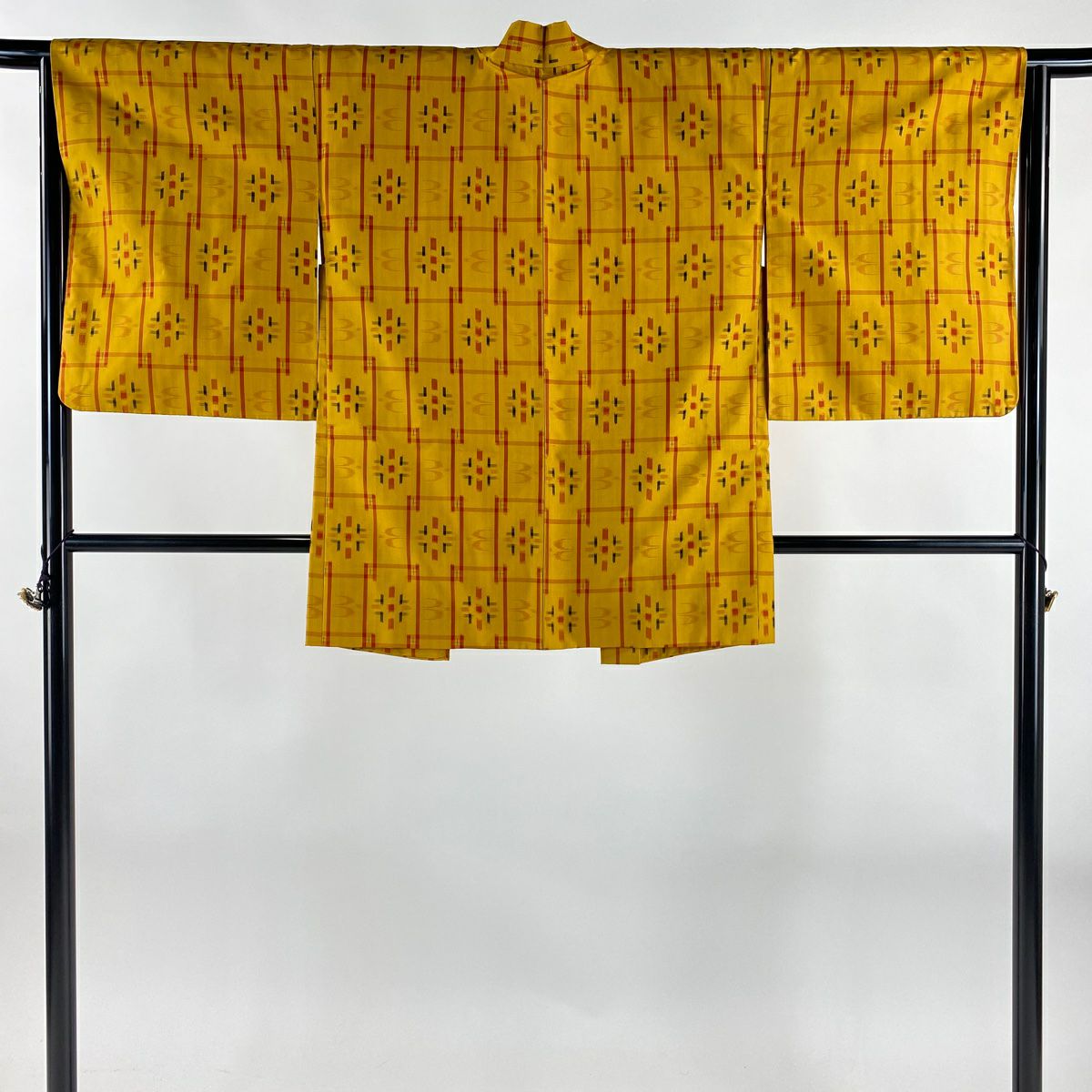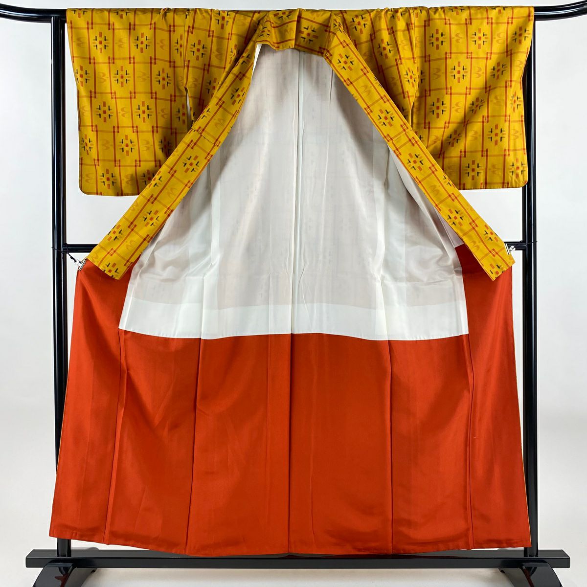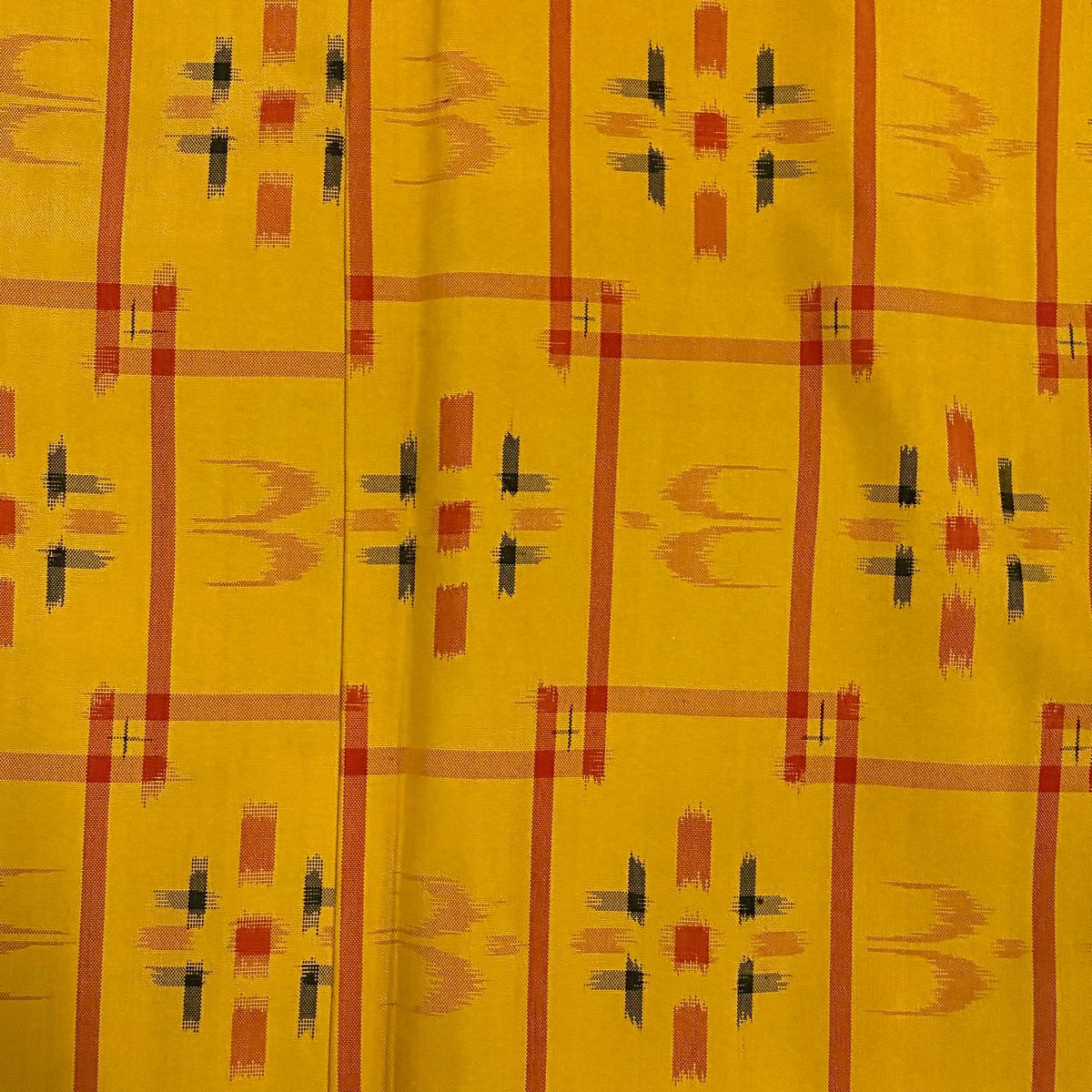 【在庫一掃】 【美品】 紬 身丈158.5cm 裄丈63cm S 袷 アンサンブル 燕 幾何学 山吹色 正絹 秀品
