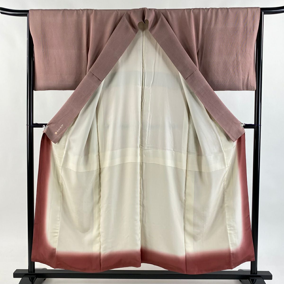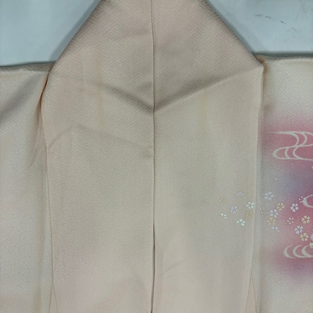 【在庫一掃】 道行 身丈95cm 裄丈68.5cm L 和装コート 角衿 地紋 染め分け 刺繍 ピンク 正絹 秀品