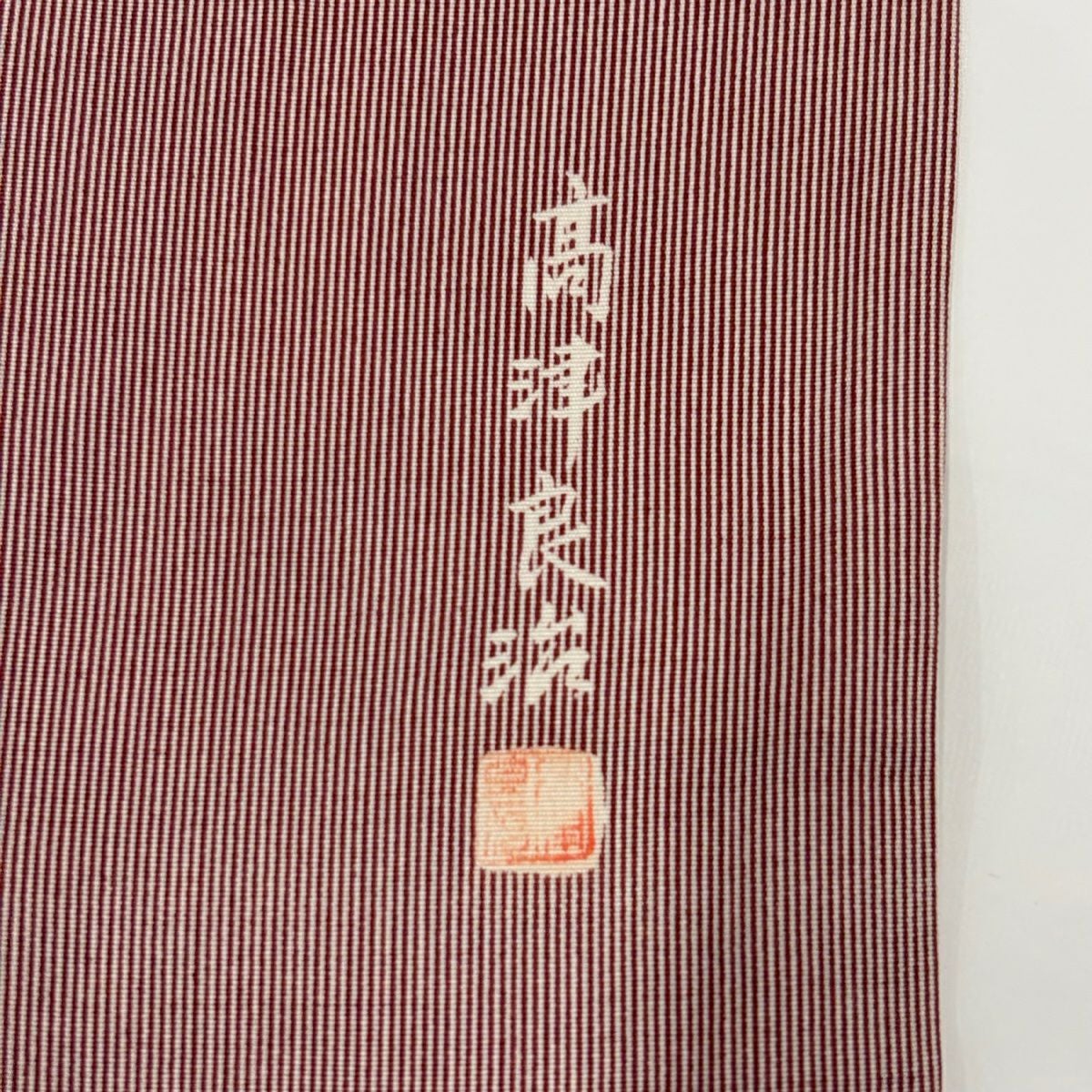 【在庫一掃】 江戸小紋 身丈152cm 裄丈65.5cm M 袷 落款あり 万筋 段縞 小豆色 正絹 秀品 一つ紋