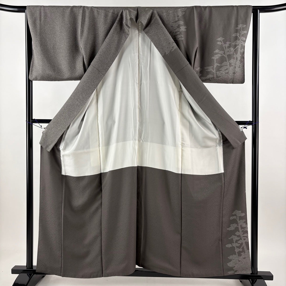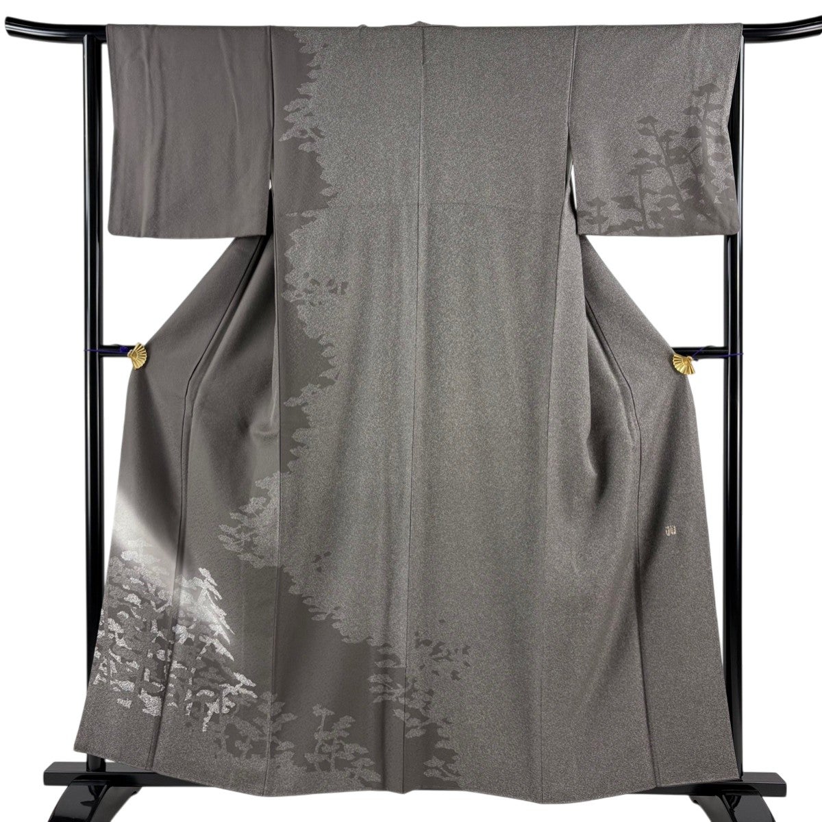 【美品】 訪問着 身丈159cm 裄丈63.5cm S 袷 松 シルエット ぼかし 灰茶 正絹 秀品