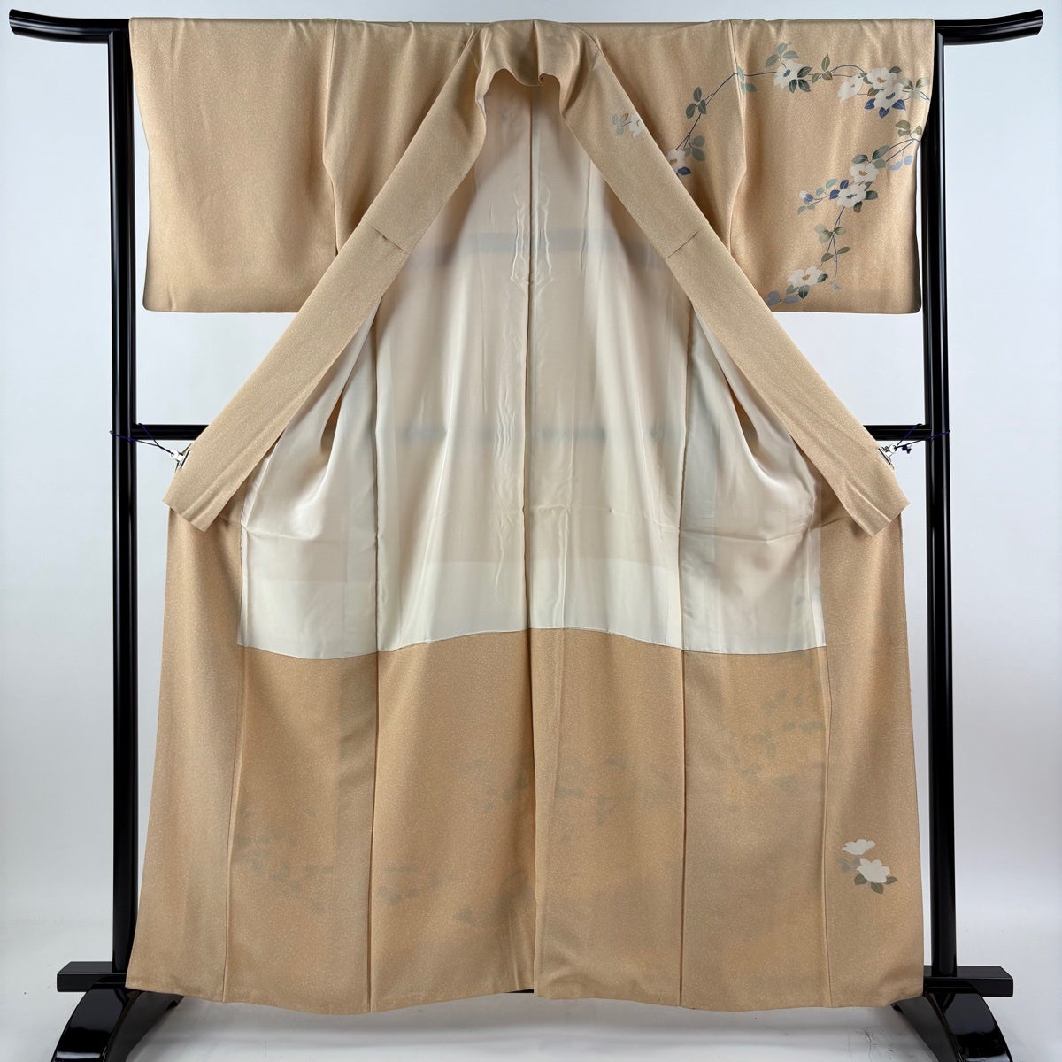 訪問着 身丈158.5cm 裄丈66cm M 袷 笹 地紋 ぼかし ベージュ 正絹 秀品 一つ紋