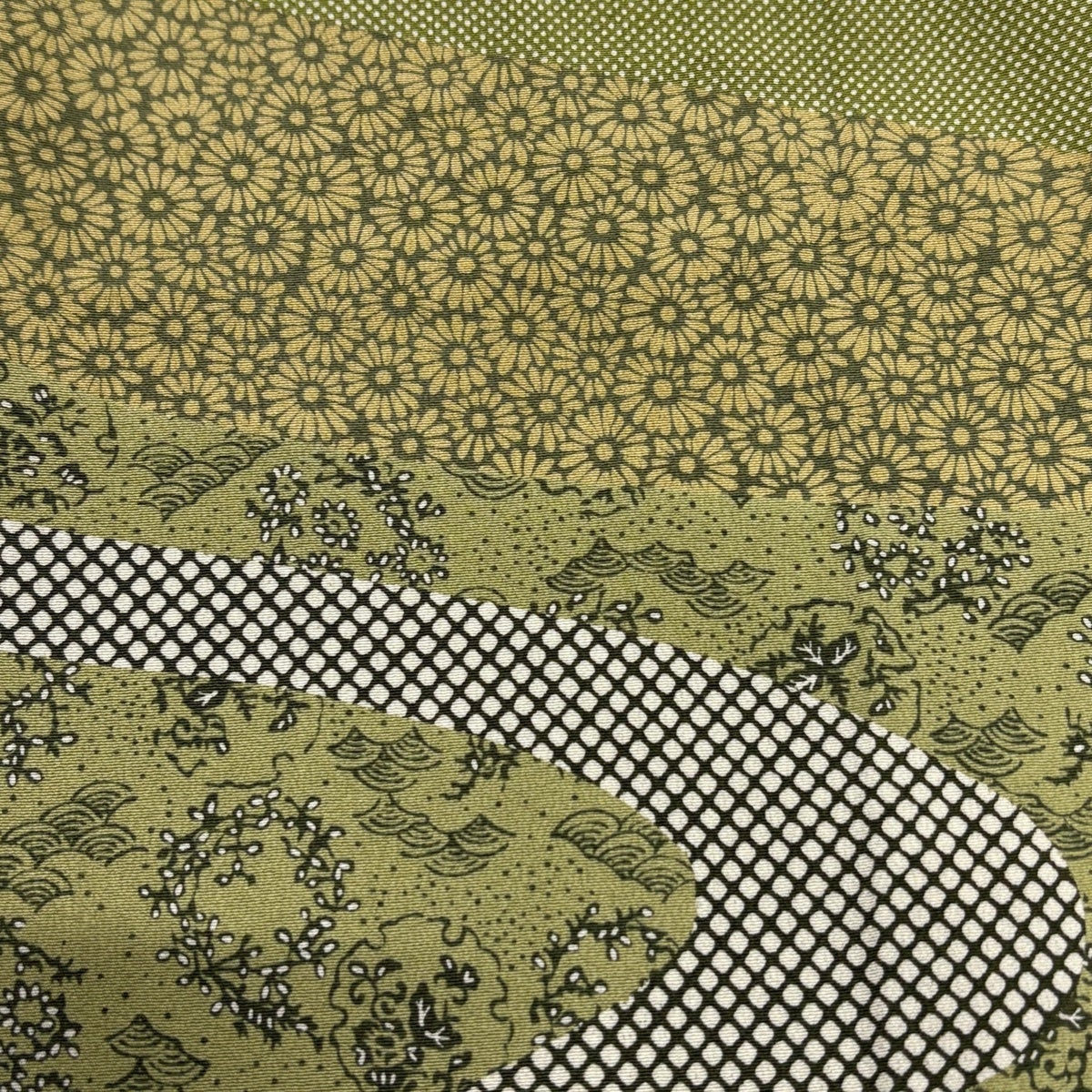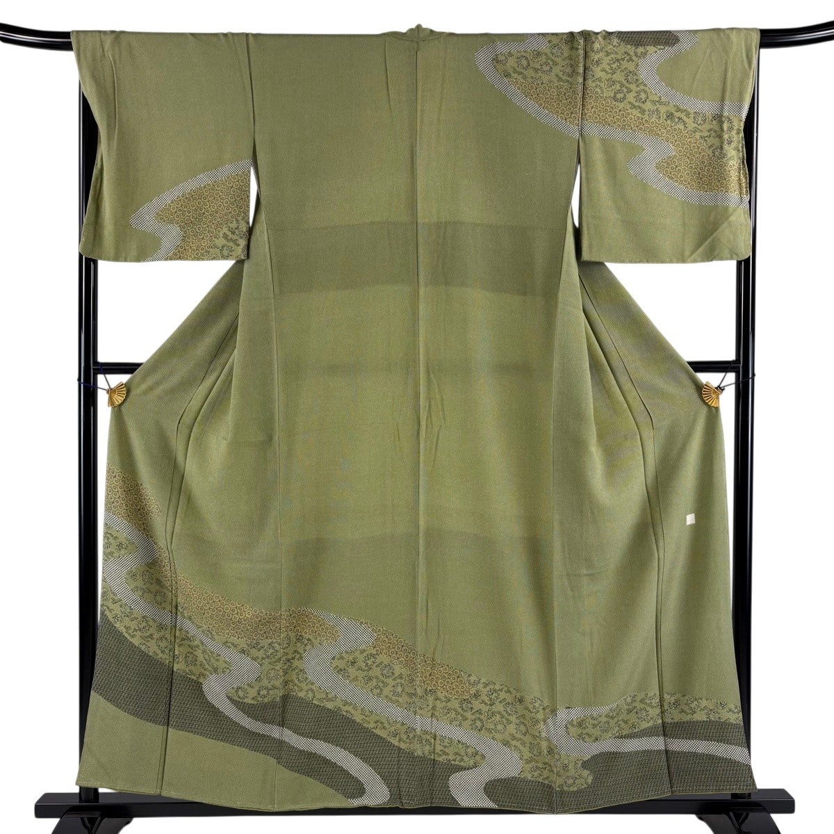 【美品】 訪問着 身丈156.5cm 裄丈68cm L 袷 落款あり 菊 流水 よもぎ色 正絹 秀品