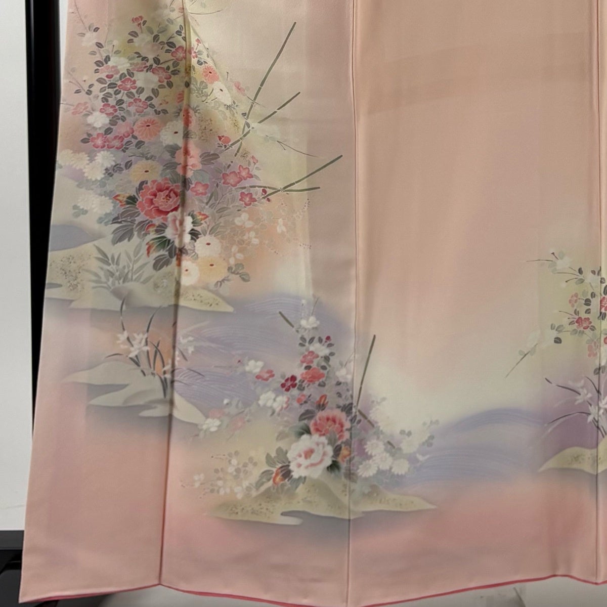 付下げ 身丈163cm 裄丈64.5cm M 袷 草花 流水 金銀彩 ぼかし 薄ピンク 正絹 秀品