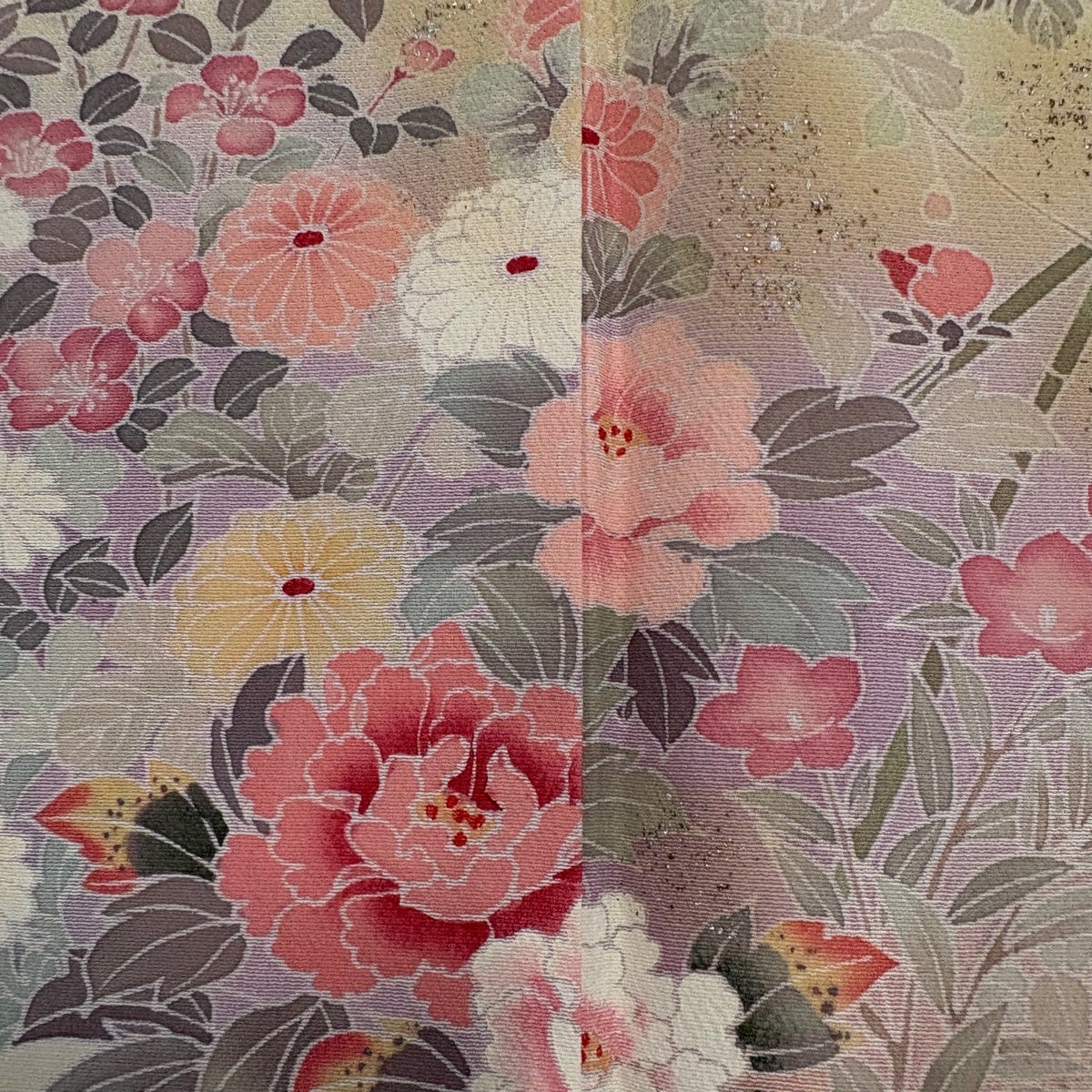 訪問着 身丈160cm 裄丈63.5cm S 袷 松竹梅 菊 金彩 ピンクベージュ 正絹 秀品