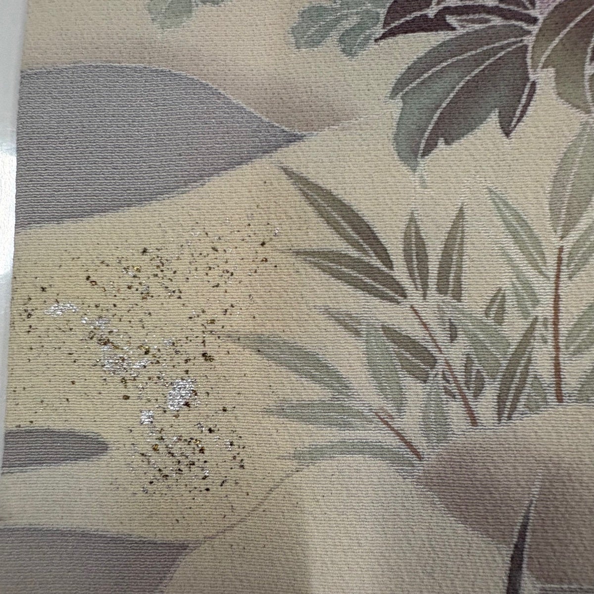 【美品】 付下げ 身丈159.5cm 裄丈66.5cm M 袷 草花 地紋 金糸 刺繍 灰紫 正絹 秀品