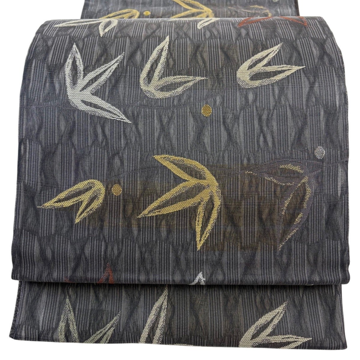 袋帯 秀品 色紙 草花 金糸 箔 灰色 六通 正絹