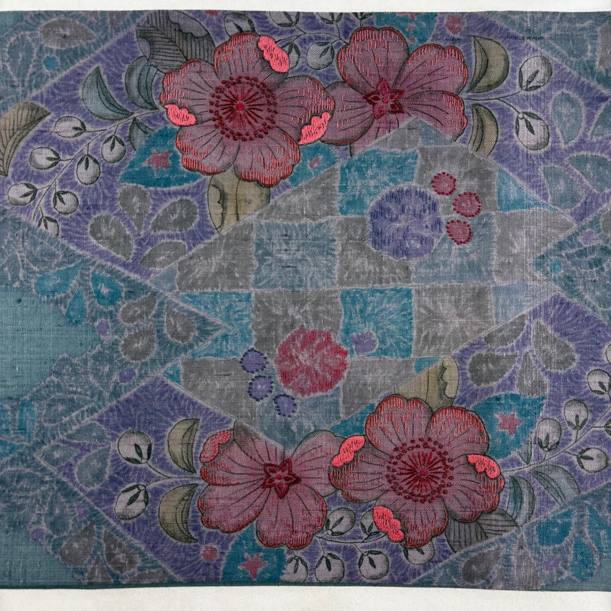 袋帯 秀品 幾何学模様 金銀糸 箔 紫 六通 正絹