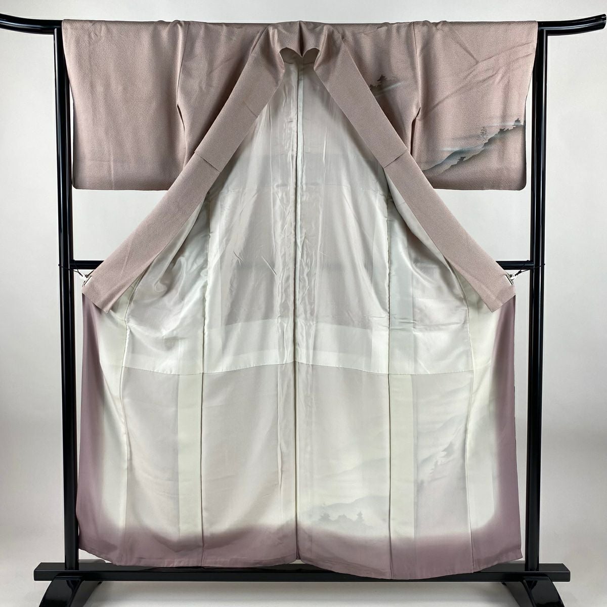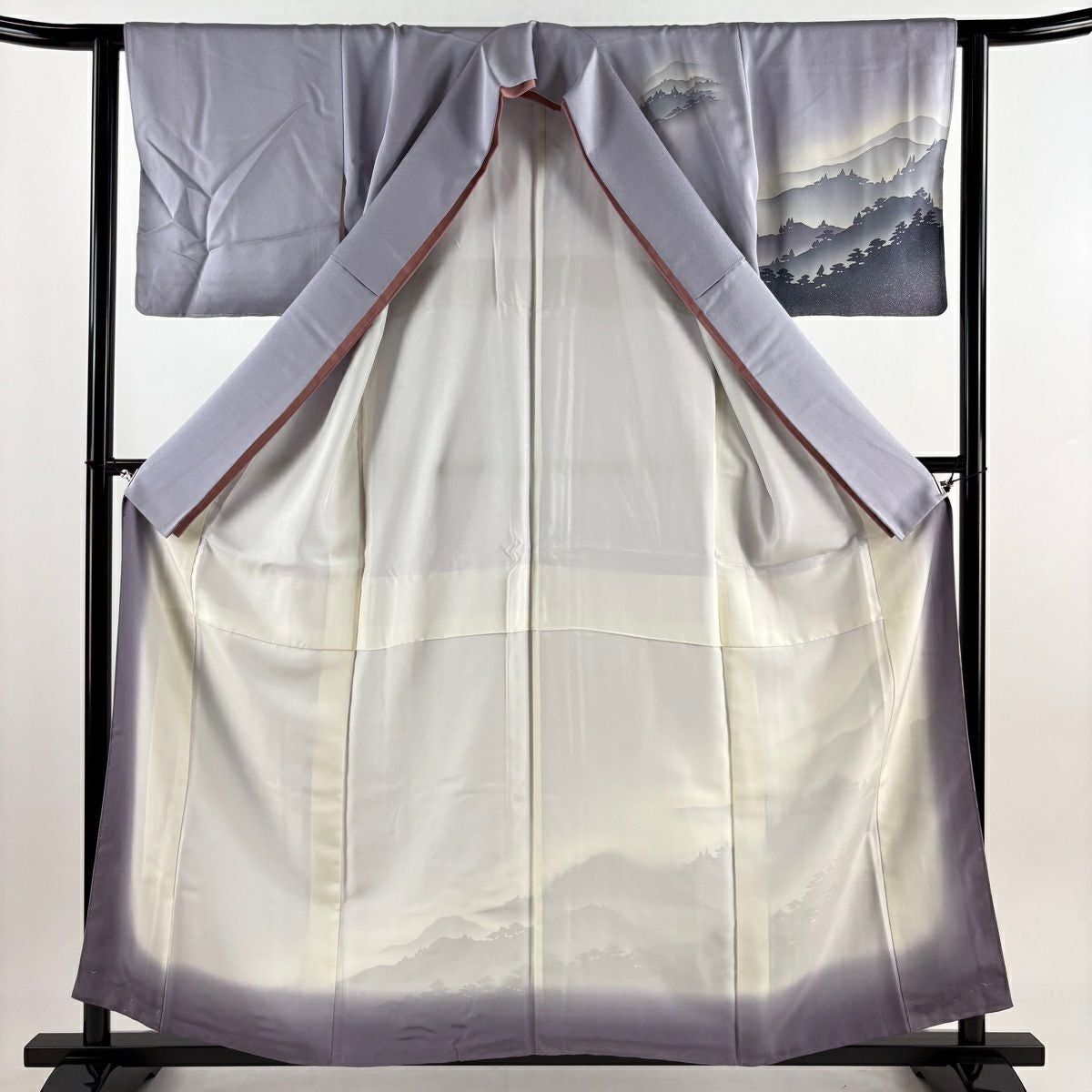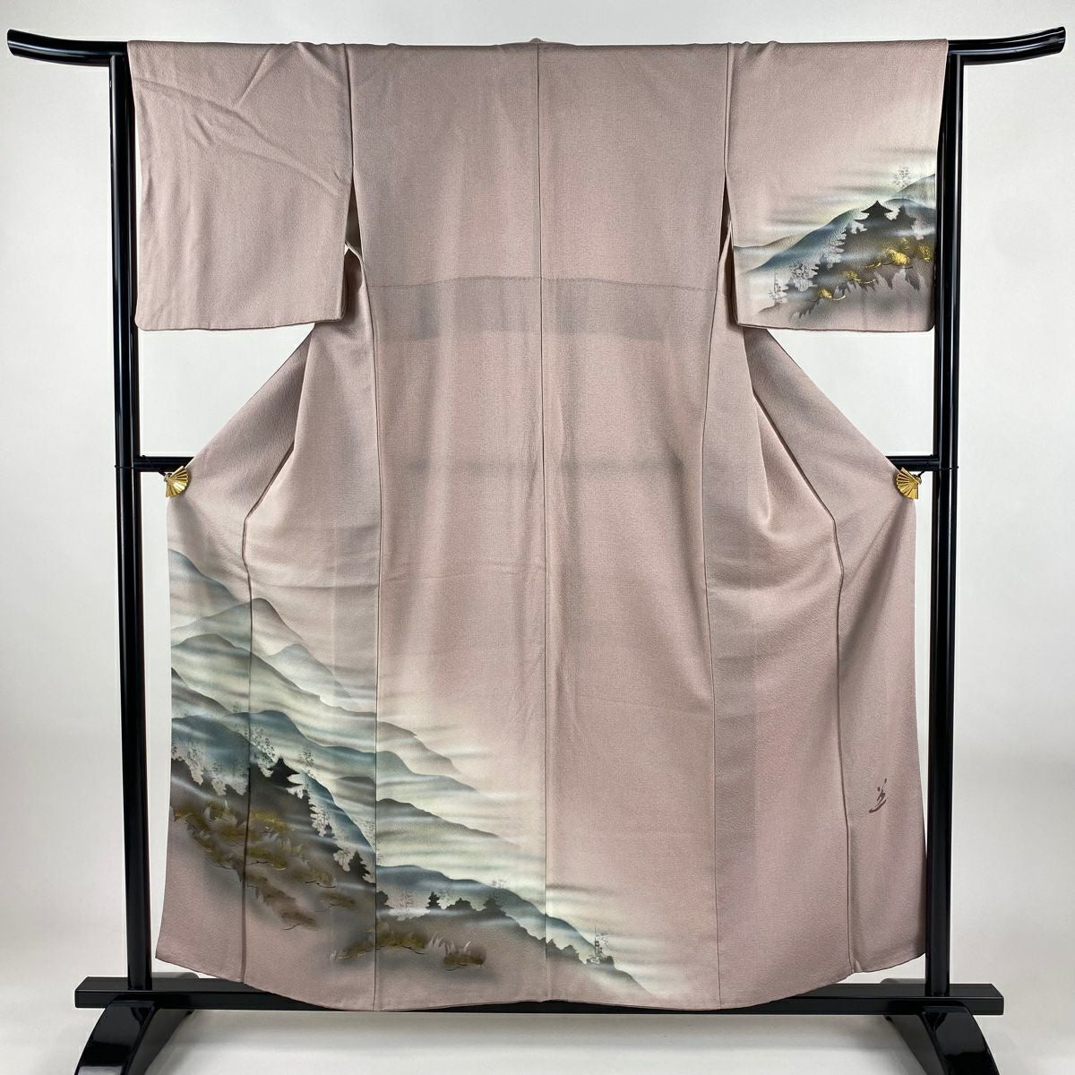 【在庫一掃】 付下げ 身丈156cm 裄丈64.5cm M 袷 山並み シルエット 金銀彩 ぼかし 薄ピンク 正絹 秀品