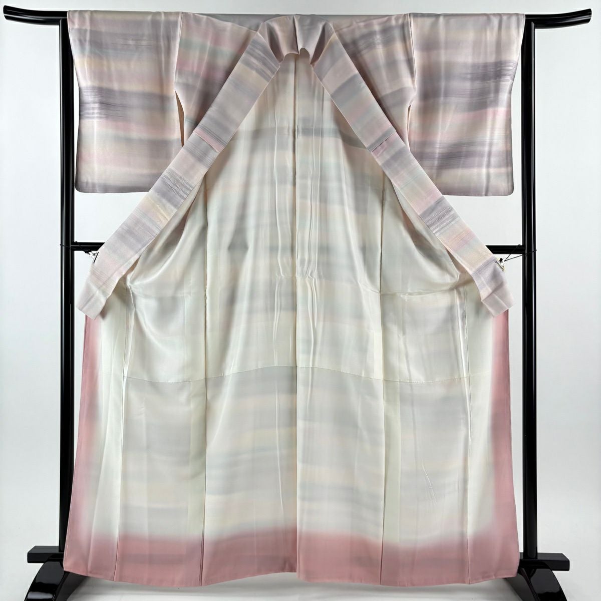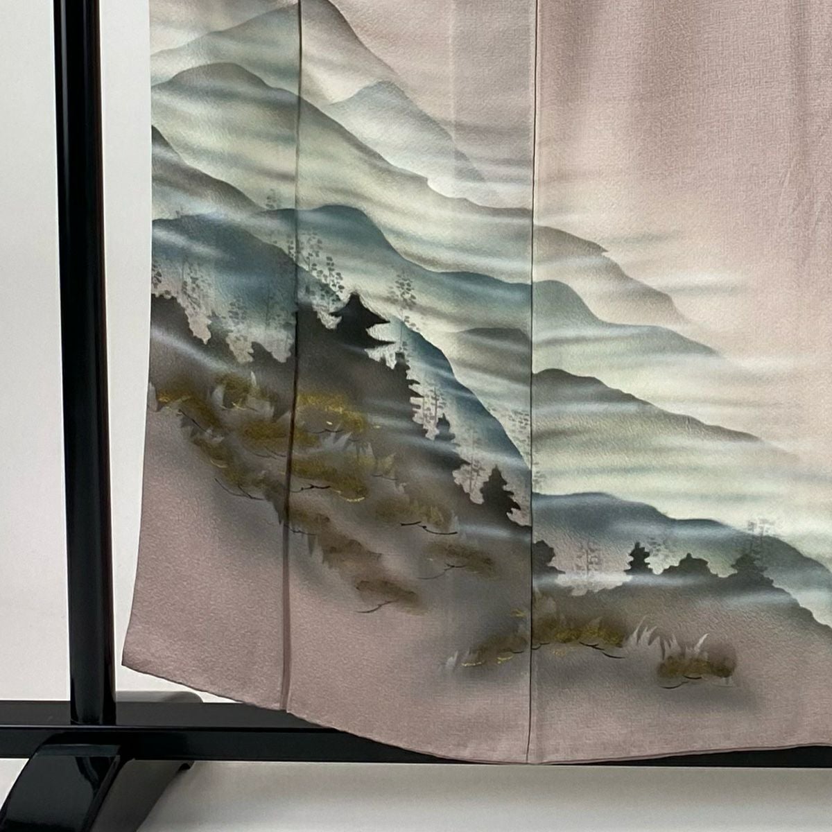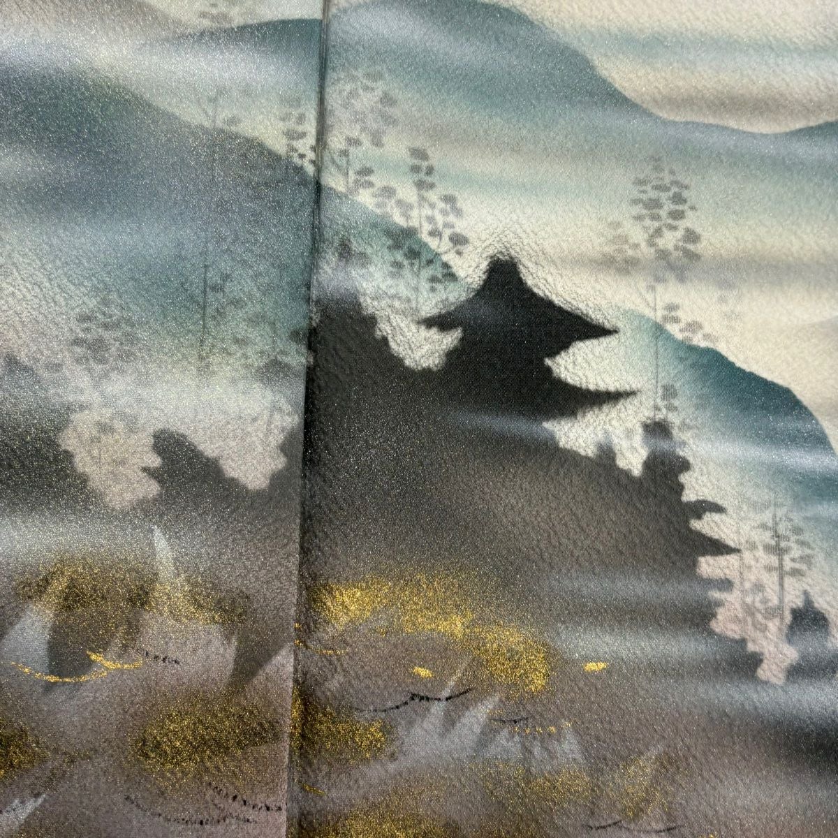 【在庫一掃】 付下げ 身丈156cm 裄丈64.5cm M 袷 山並み シルエット 金銀彩 ぼかし 薄ピンク 正絹 秀品