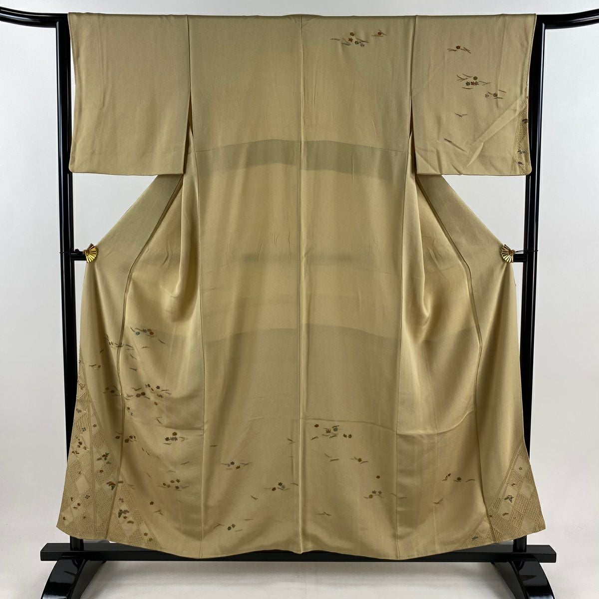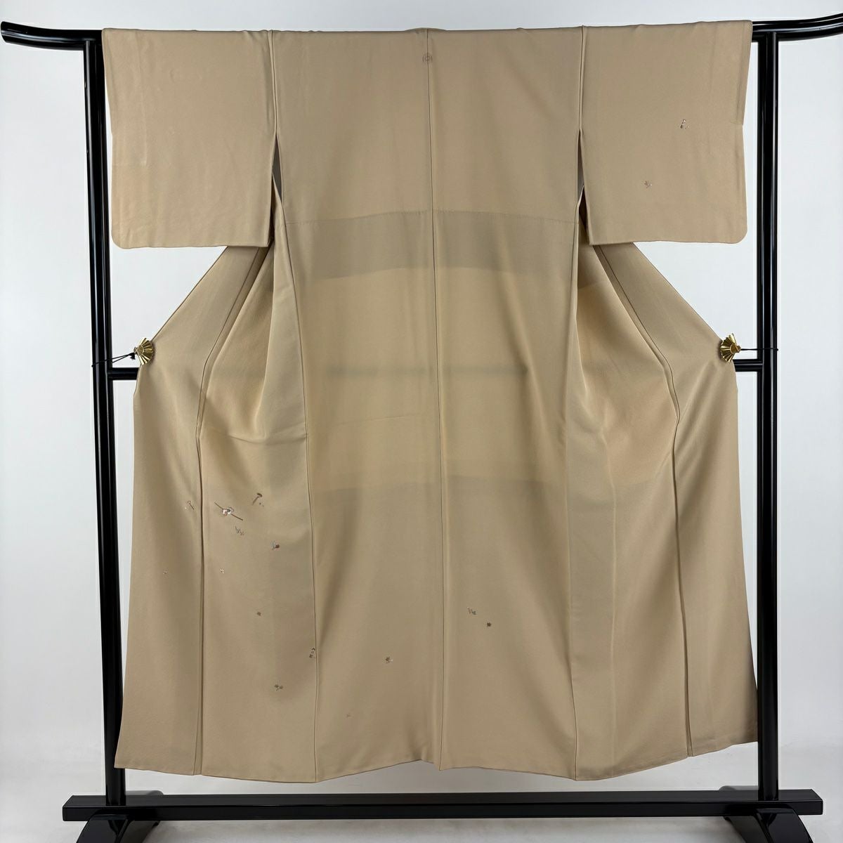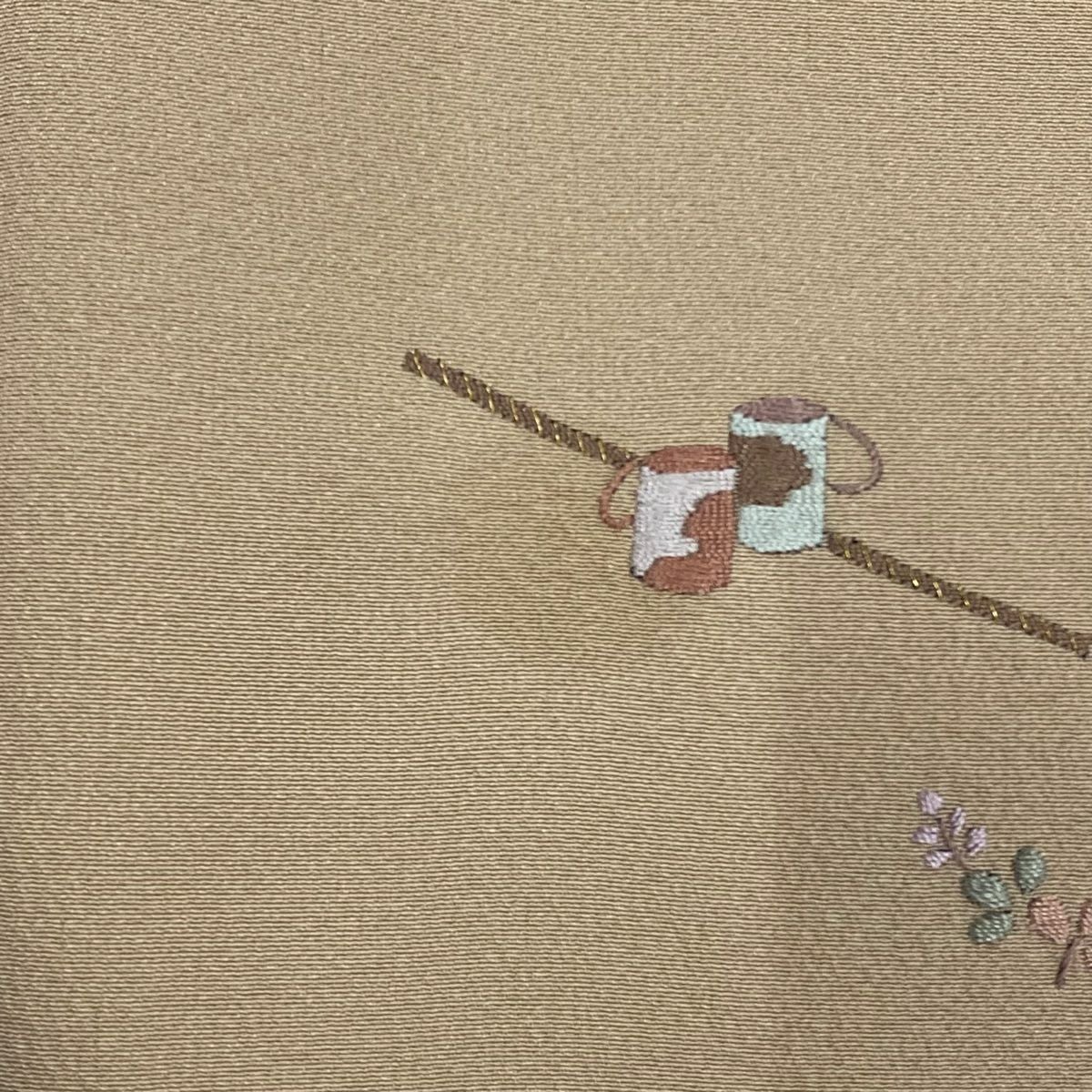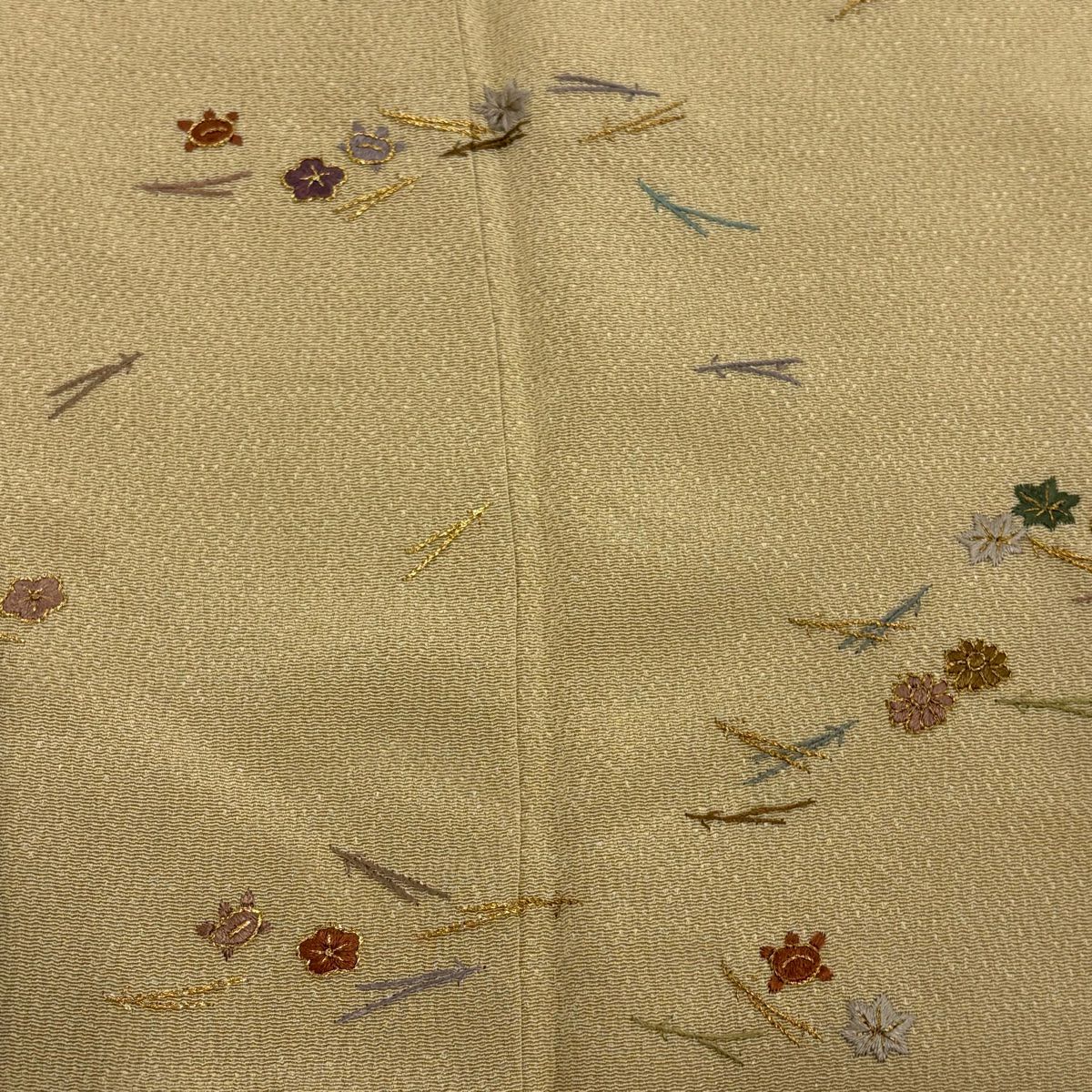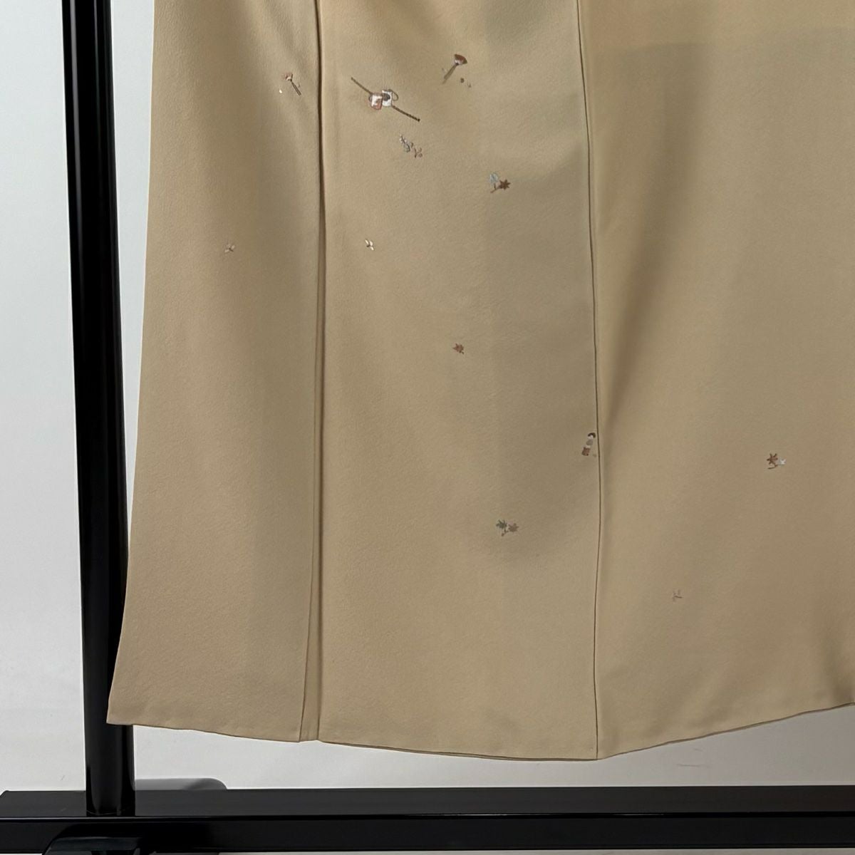 【在庫一掃】 付下げ 身丈150cm 裄丈62.5cm S 袷 かんざし 葉 刺繍 金糸 ベージュ 正絹 秀品 一つ紋